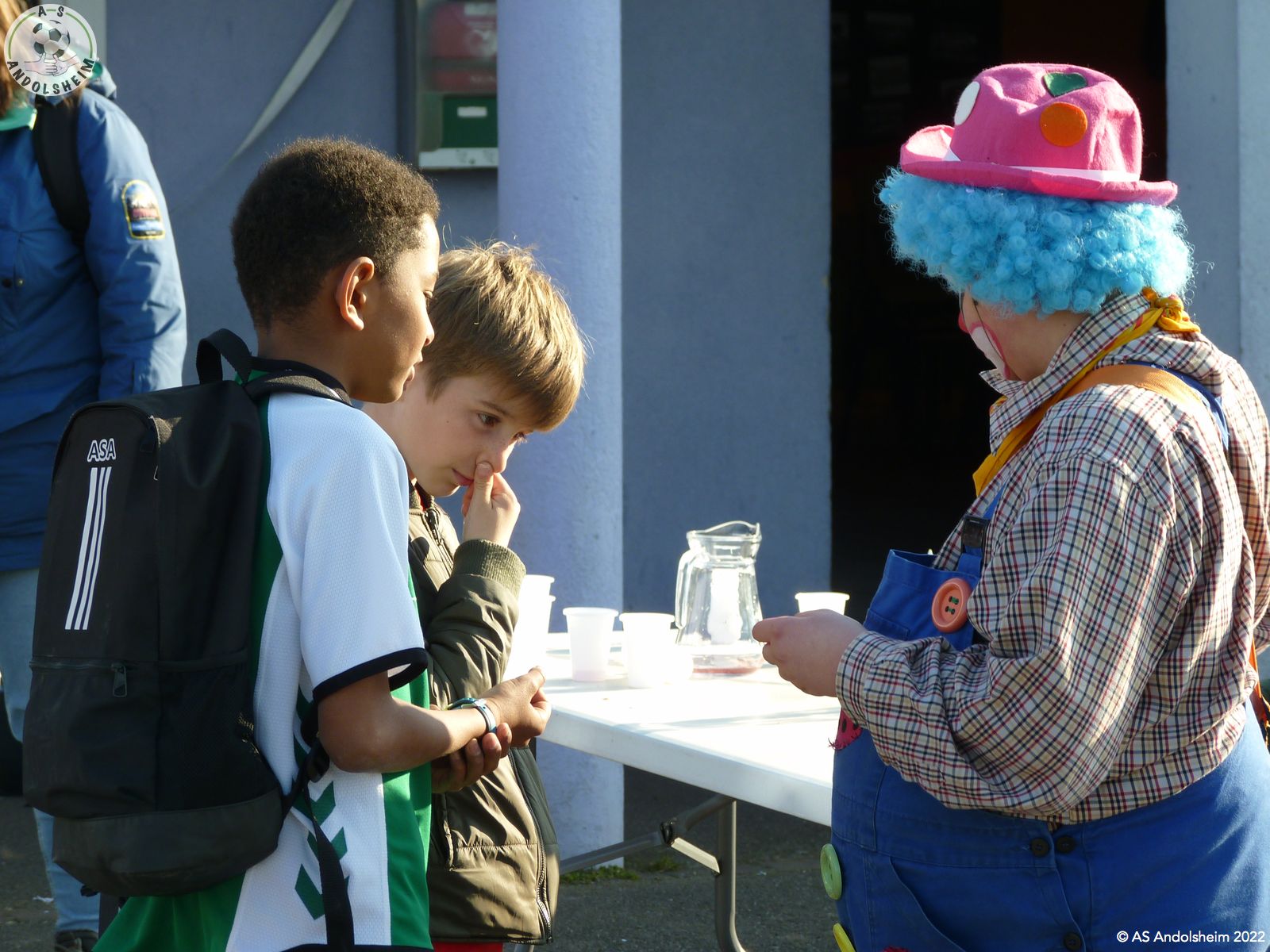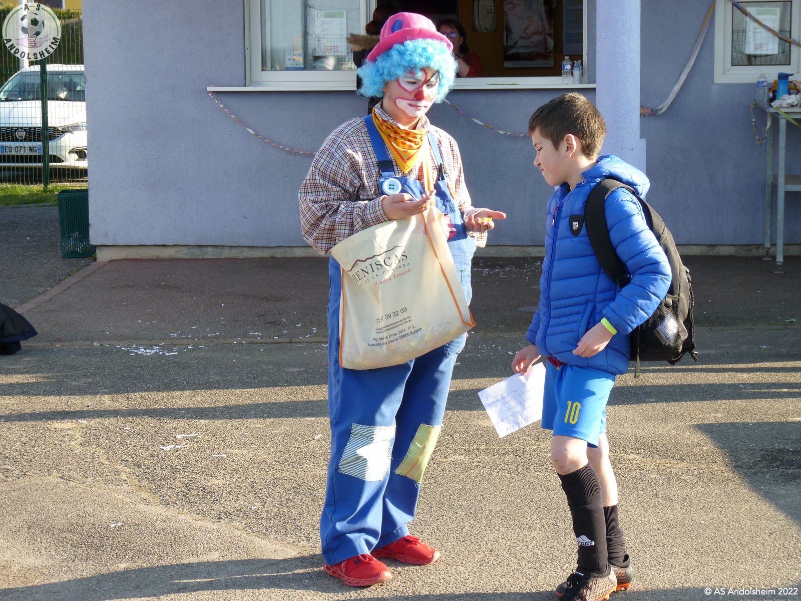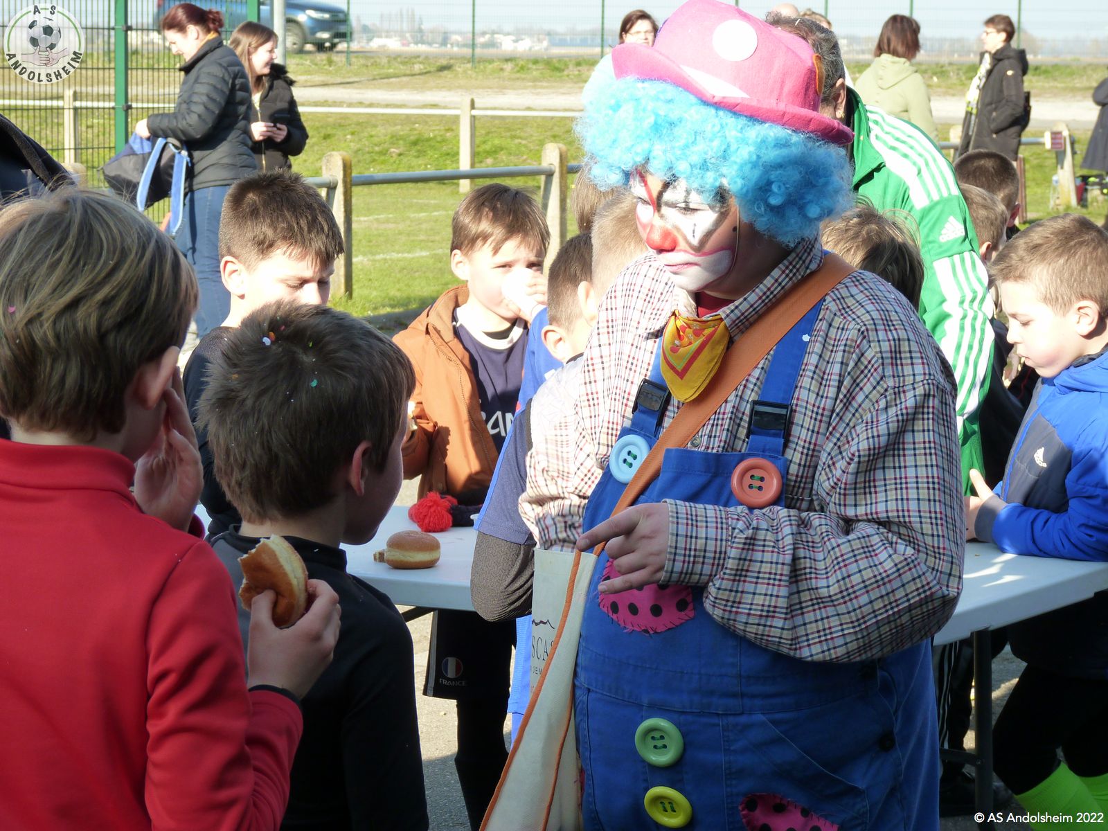 Paulo le clown a distribué des bonbons et des sucettes aux joueurs, parents et enfants présents dans le complexe pour participer à ce plateau carnavalesque.