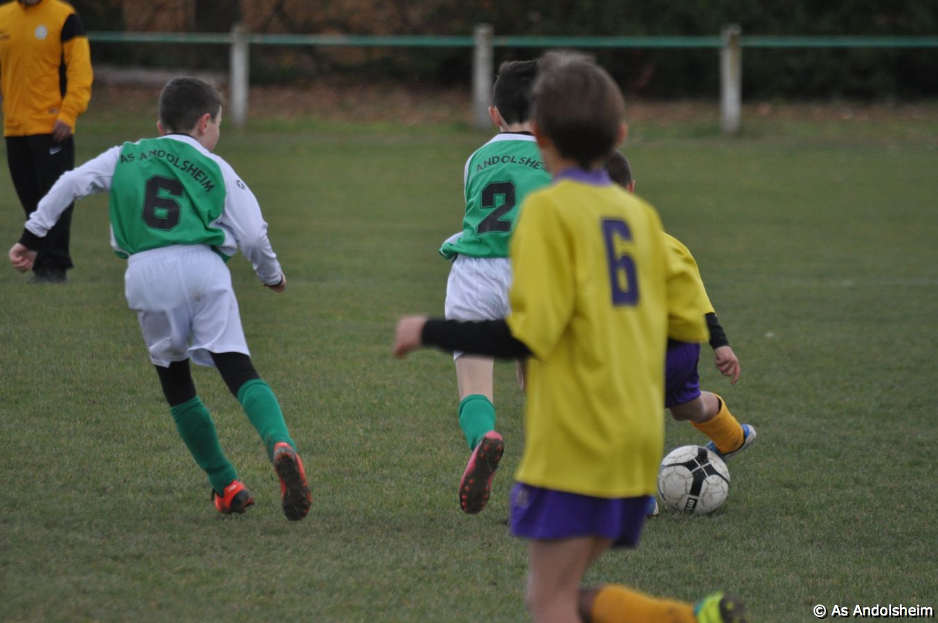 Le score au coup de sifflet final est de 1-6 pour Andolsheim. Les buteurs du jour: Valentin, Quentin, Axel.
