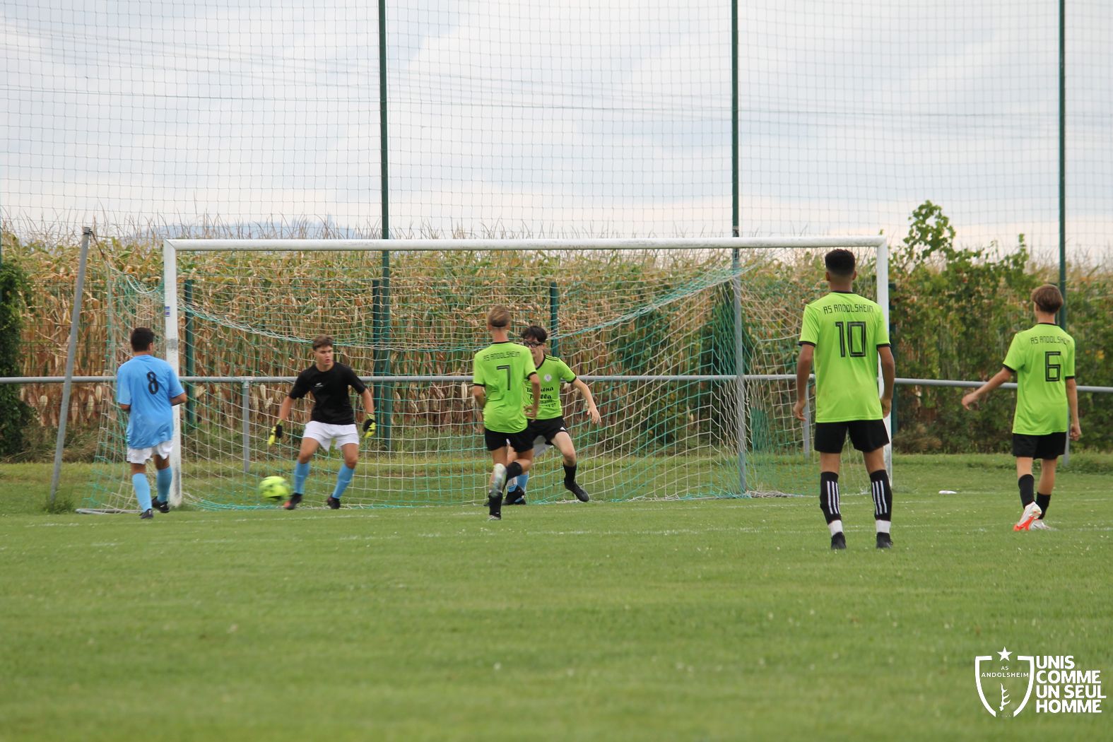 Ça porte ses fruits, car sur un beau centre venu de la gauche de la part de Matteo F., Kaïs R. réalise une reprise exceptionnelle qui se loge dans la lucarne à la 32e minute.
