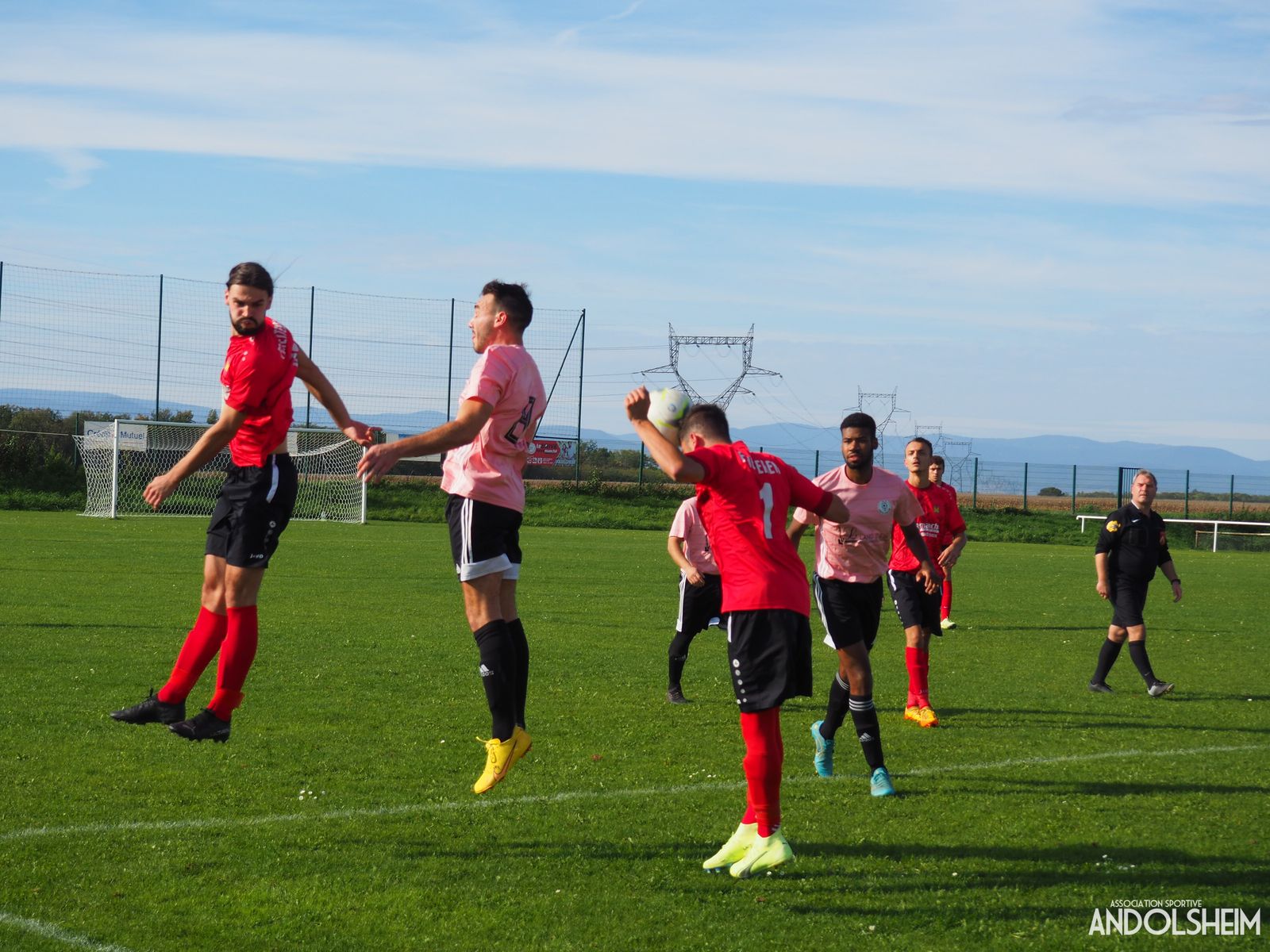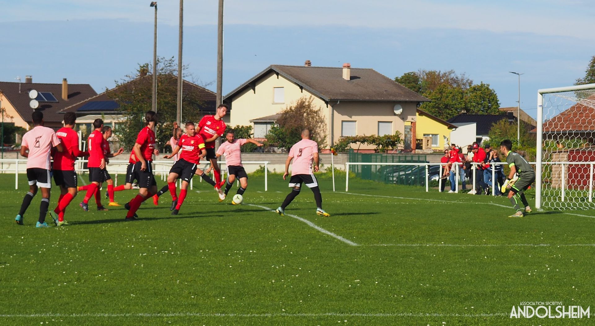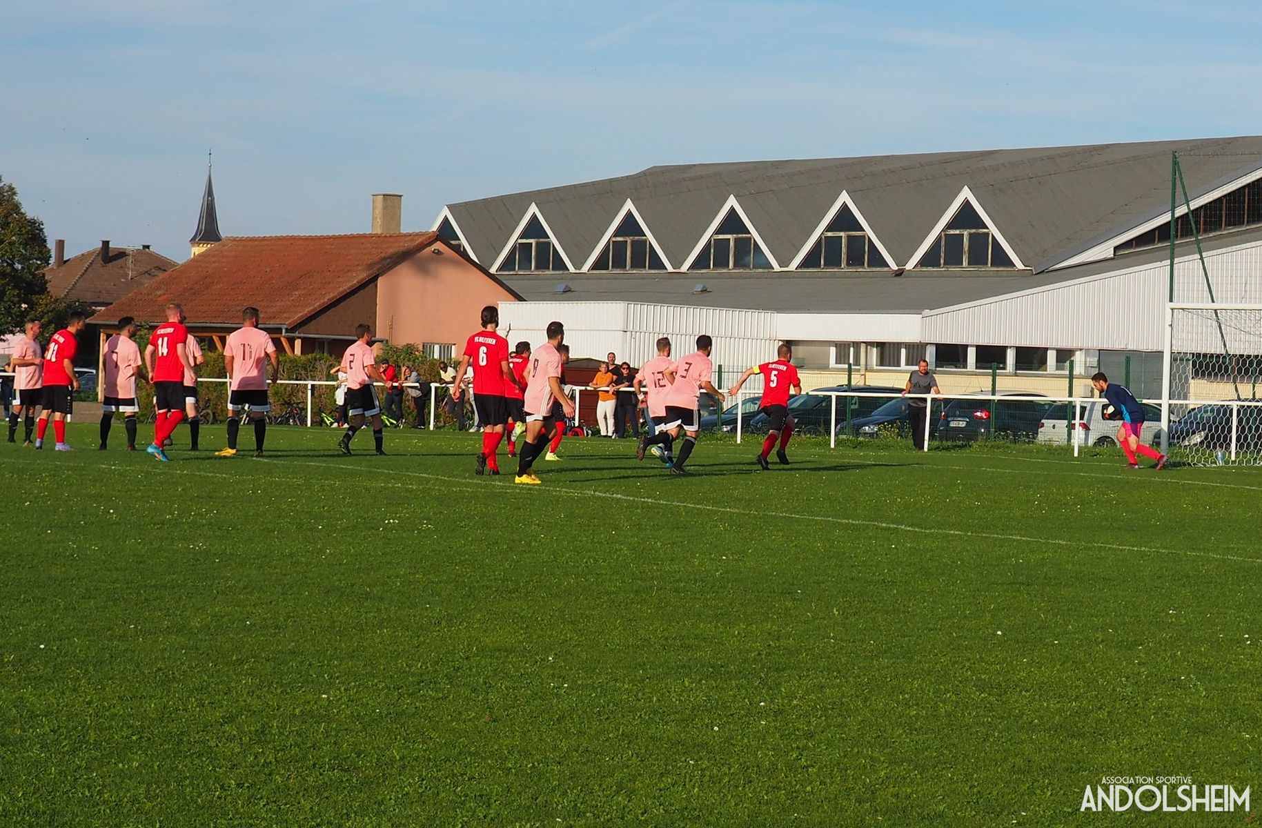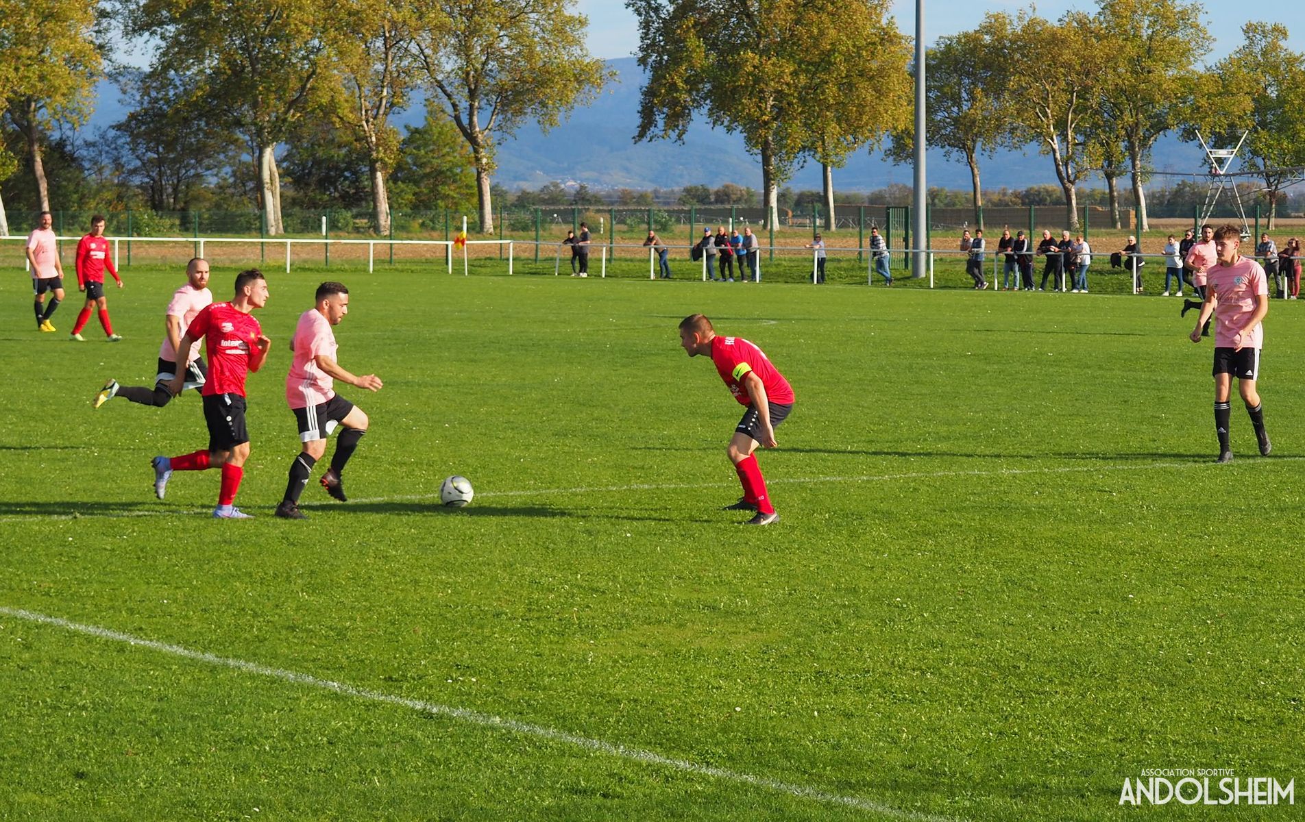 En ce dimanche quasiment estival, l’équipe fanion de l’ASA descend à Heiteren pour disputer le 4eme tour de la coupe d’Alsace, sous les yeux de son Président Bonzon. Serge Schuller, lui, est fidèle à la touche, et avec nos remerciements. Début de match équilibré, frayeurs de part et d’autre, public nombreux malgré de grosses affiches en Coupe de France qui se jouent simultanément. Notons que ANDOLSHEIM joue en maillot rose : c’est pour la promotion de l’opération «