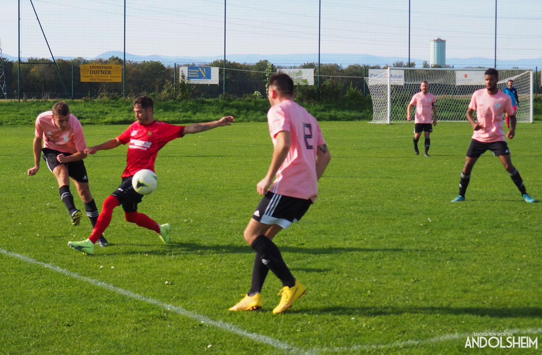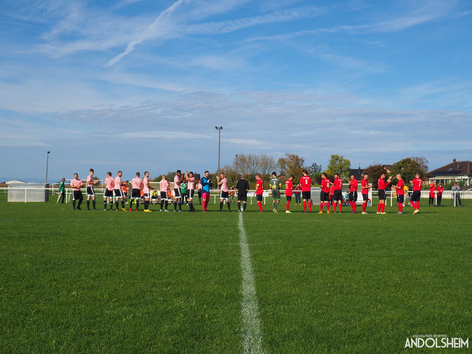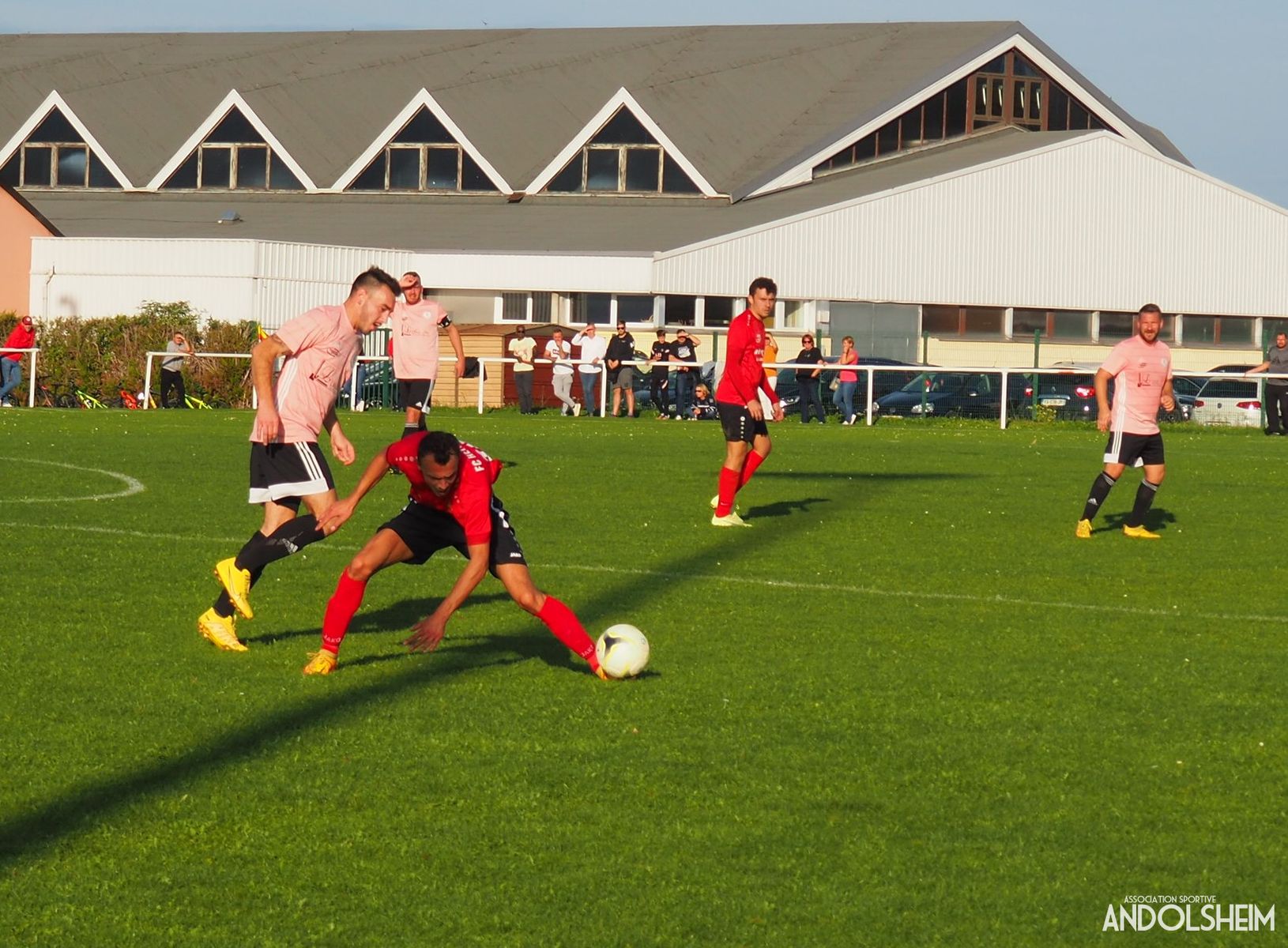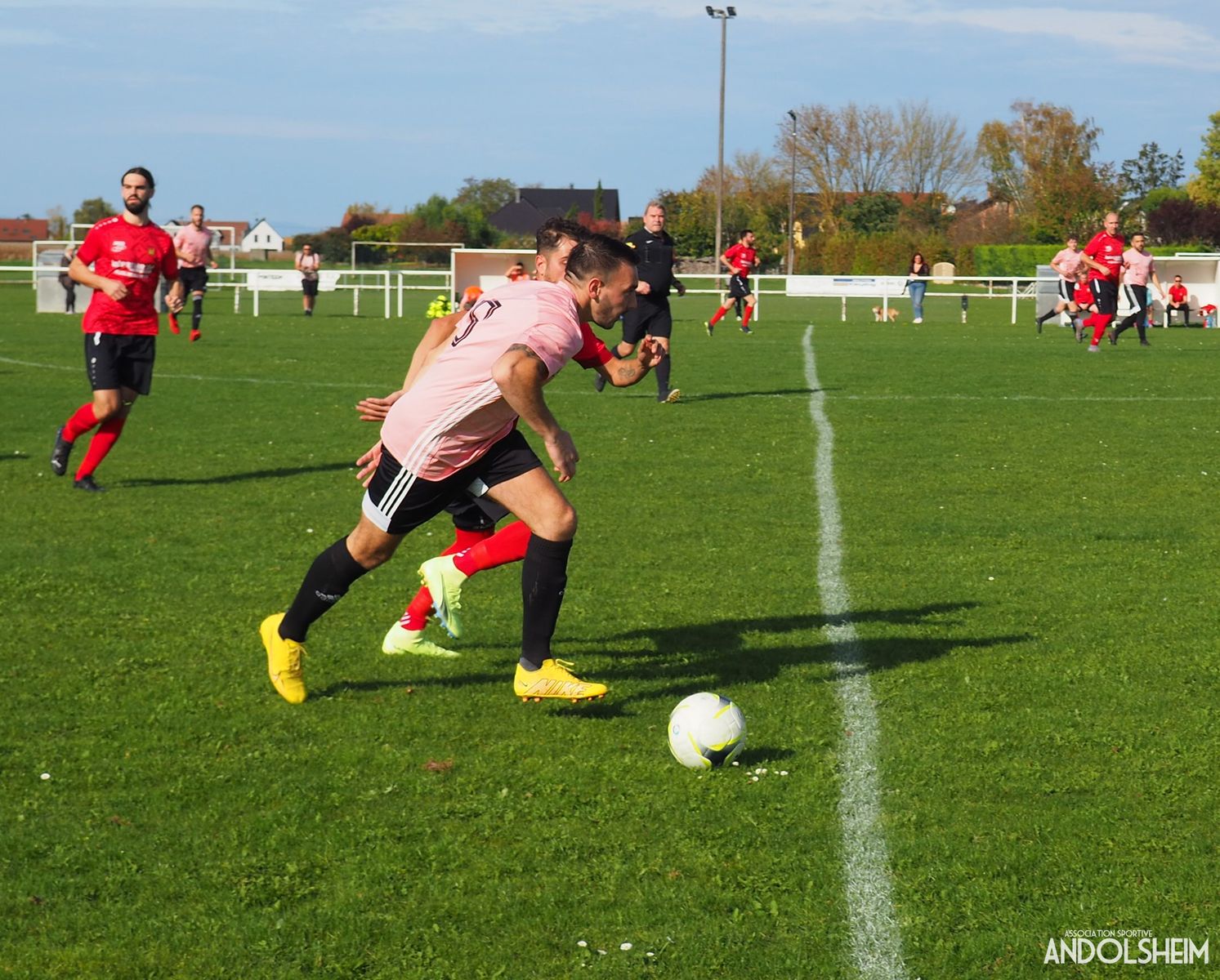 En ce dimanche quasiment estival, l’équipe fanion de l’ASA descend à Heiteren pour disputer le 4eme tour de la coupe d’Alsace, sous les yeux de son Président Bonzon. Serge Schuller, lui, est fidèle à la touche, et avec nos remerciements. Début de match équilibré, frayeurs de part et d’autre, public nombreux malgré de grosses affiches en Coupe de France qui se jouent simultanément. Notons que ANDOLSHEIM joue en maillot rose : c’est pour la promotion de l’opération «
