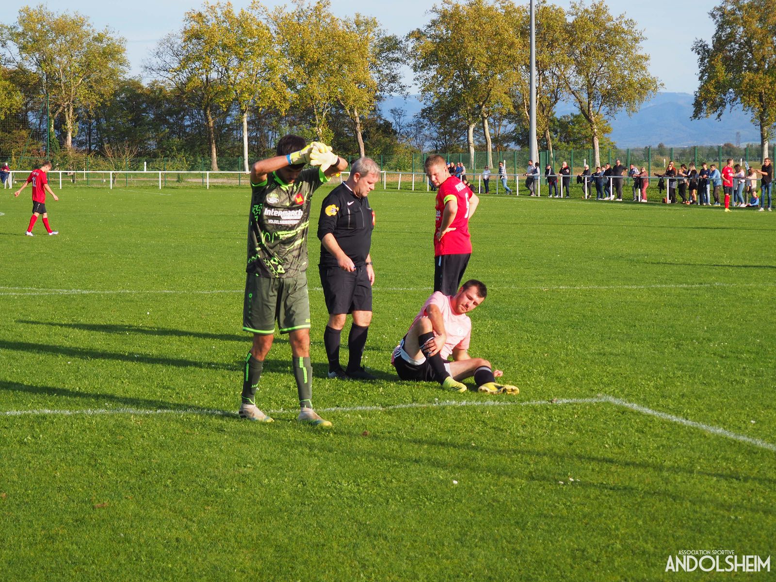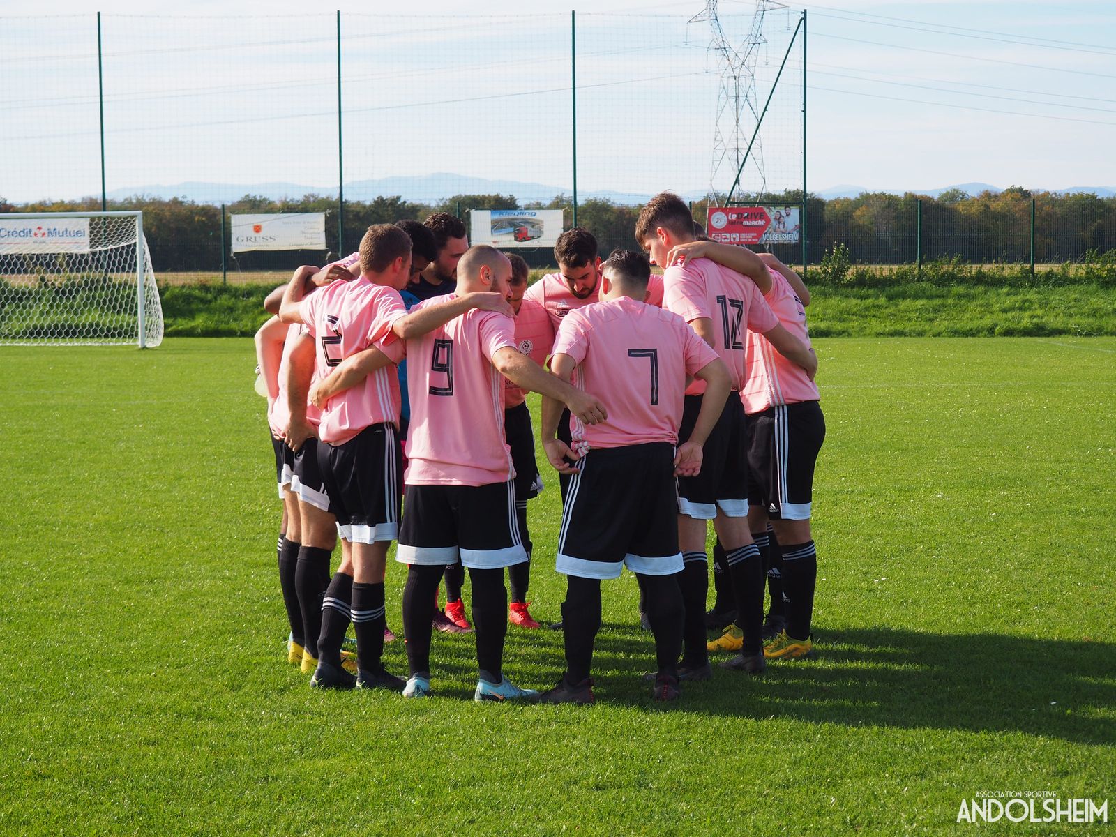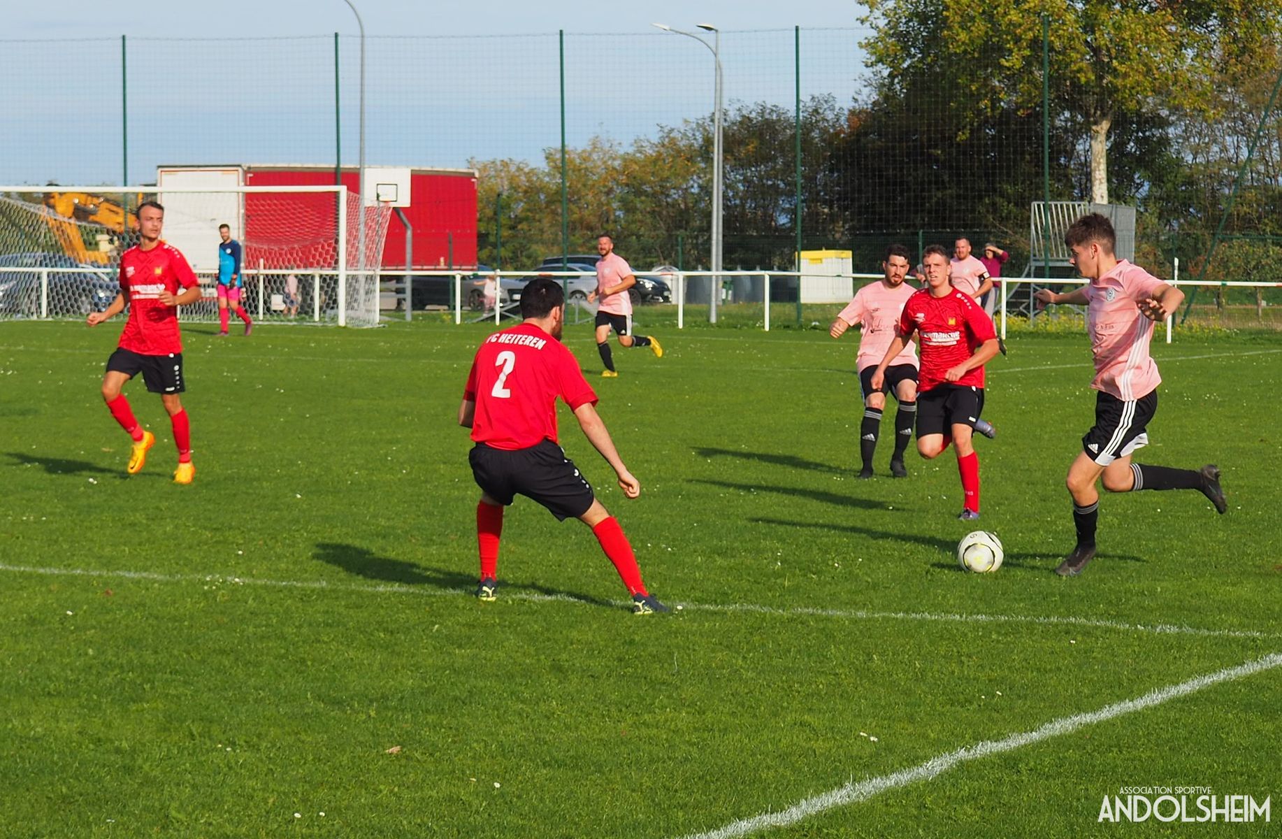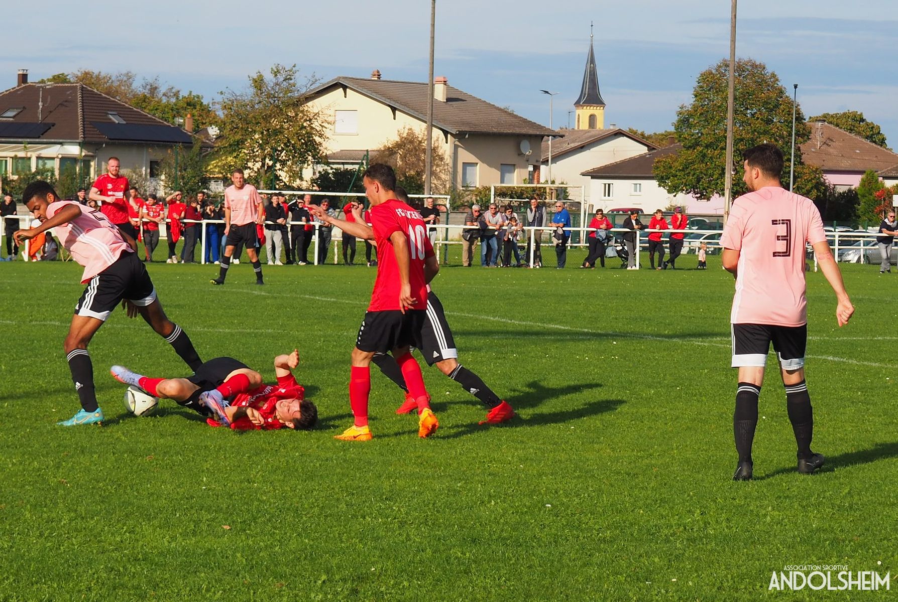 En ce dimanche quasiment estival, l’équipe fanion de l’ASA descend à Heiteren pour disputer le 4eme tour de la coupe d’Alsace, sous les yeux de son Président Bonzon. Serge Schuller, lui, est fidèle à la touche, et avec nos remerciements. Début de match équilibré, frayeurs de part et d’autre, public nombreux malgré de grosses affiches en Coupe de France qui se jouent simultanément. Notons que ANDOLSHEIM joue en maillot rose : c’est pour la promotion de l’opération «