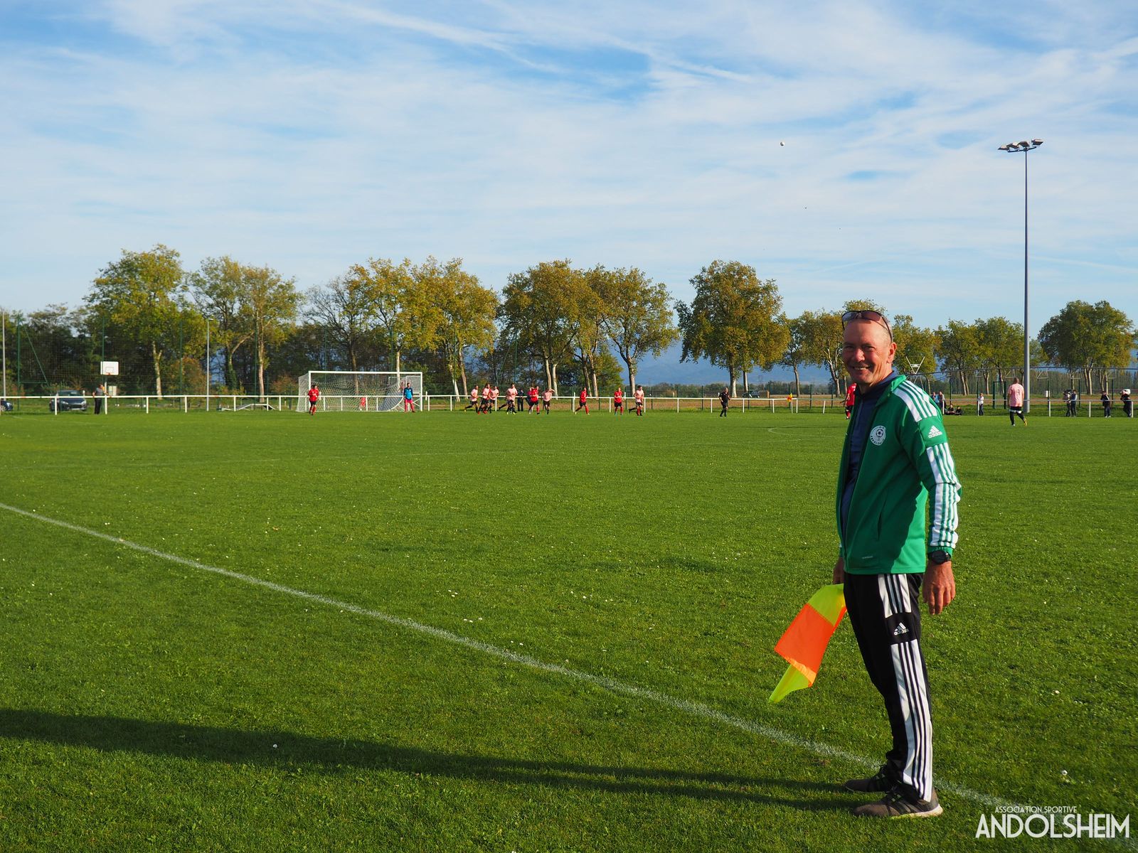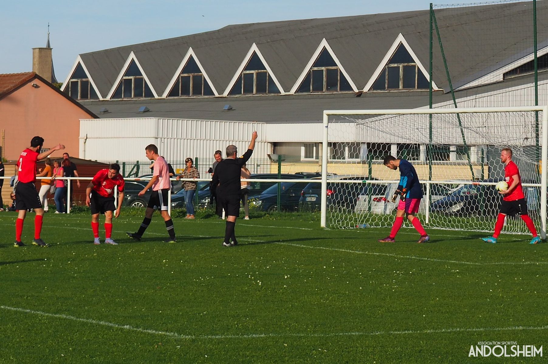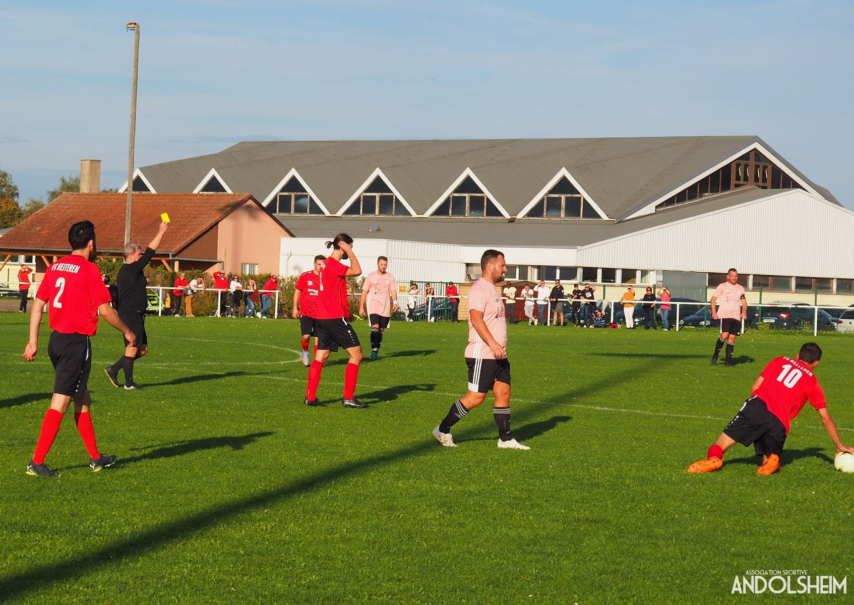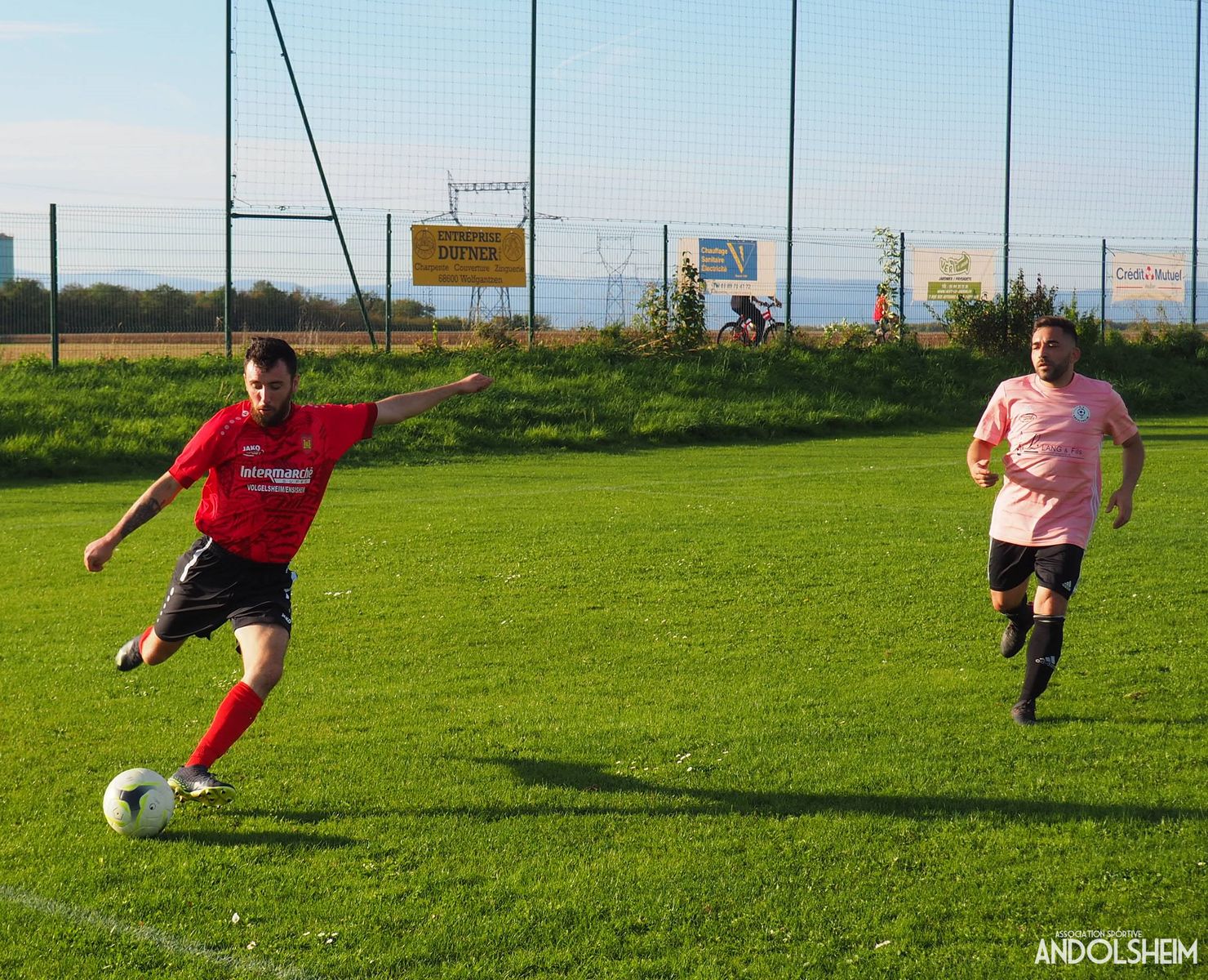 En ce dimanche quasiment estival, l’équipe fanion de l’ASA descend à Heiteren pour disputer le 4eme tour de la coupe d’Alsace, sous les yeux de son Président Bonzon. Serge Schuller, lui, est fidèle à la touche, et avec nos remerciements. Début de match équilibré, frayeurs de part et d’autre, public nombreux malgré de grosses affiches en Coupe de France qui se jouent simultanément. Notons que ANDOLSHEIM joue en maillot rose : c’est pour la promotion de l’opération «