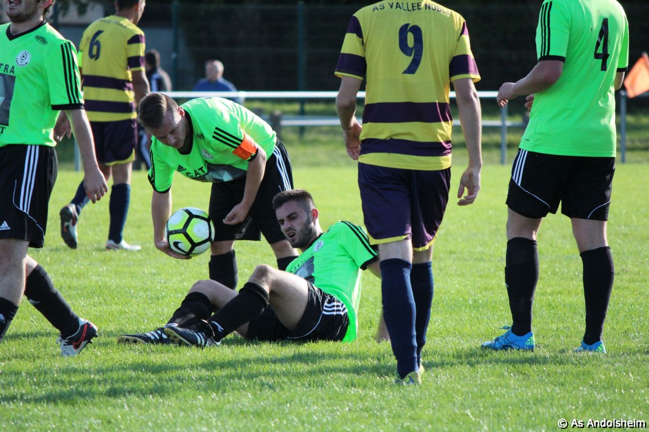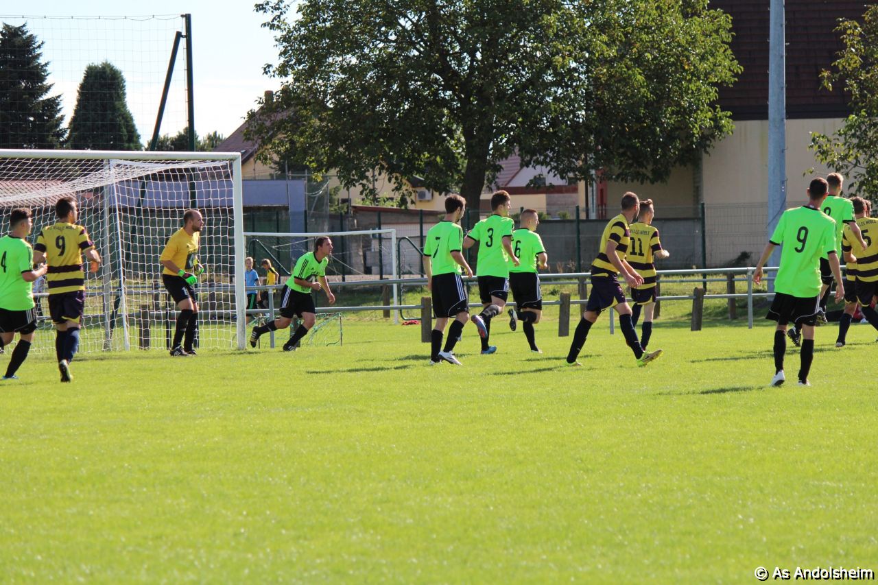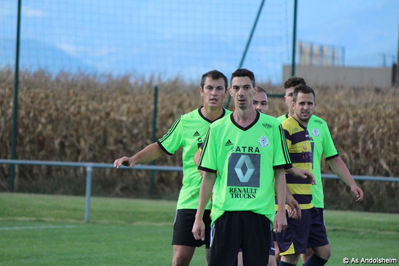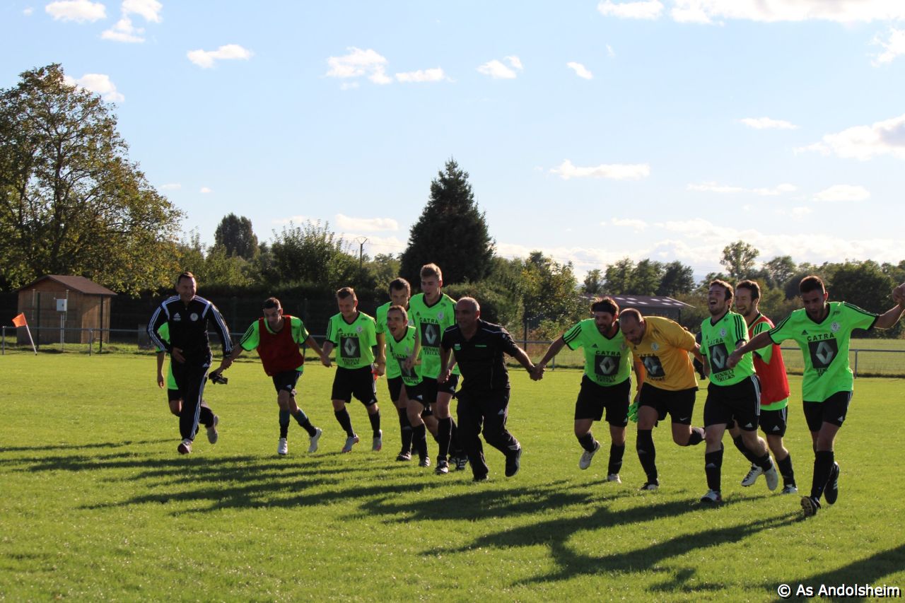 Les verts vont égaliser vers la 30ème minute par seb qui bien lancé par William en profondeur trompe le gardien ...1-1 à la pause. En 2ème période, les verts reviennent métamorphosés. Après avoir nettement dominé les 20 première minutes, les verts bénéficient d'un Penalty transformé par Danilo mais le plus beau reste à venir suite à une récupération de Xavier qui trouve Florian dans un petit espace qui ajuste un super centre pour Seb qui signe un doublé ... 3-1 score final ! 4 matchs, 4 victoire en championnat et les verts confortent leur belle 1ère place".