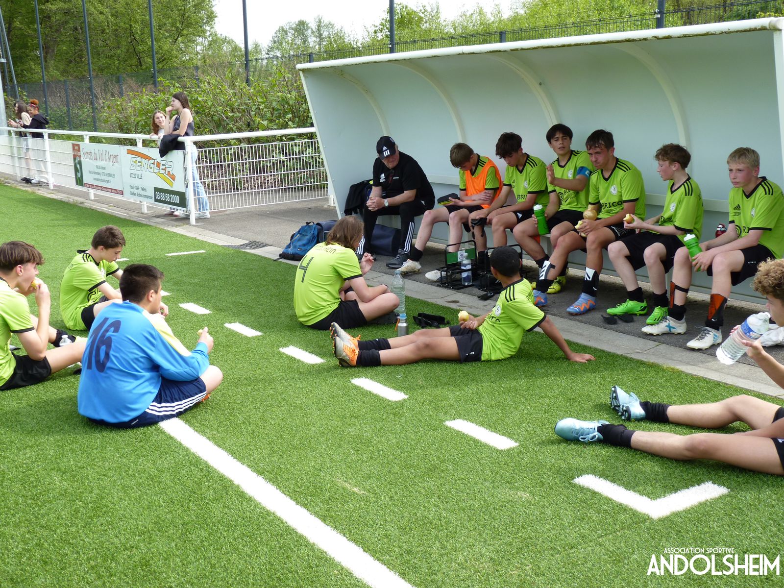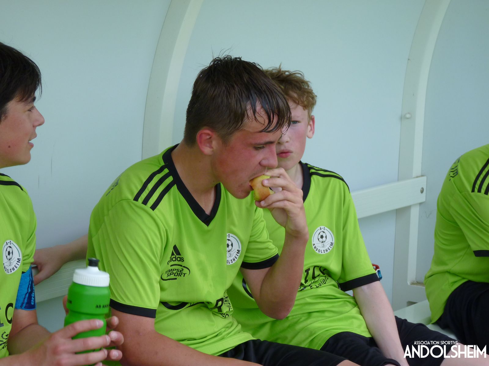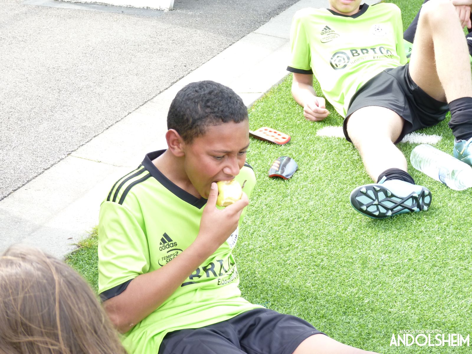 À la pause, les joueurs ont pu apprécier les pommes offertes par notre partenaire La Pommeraie à Sigolsheim.
