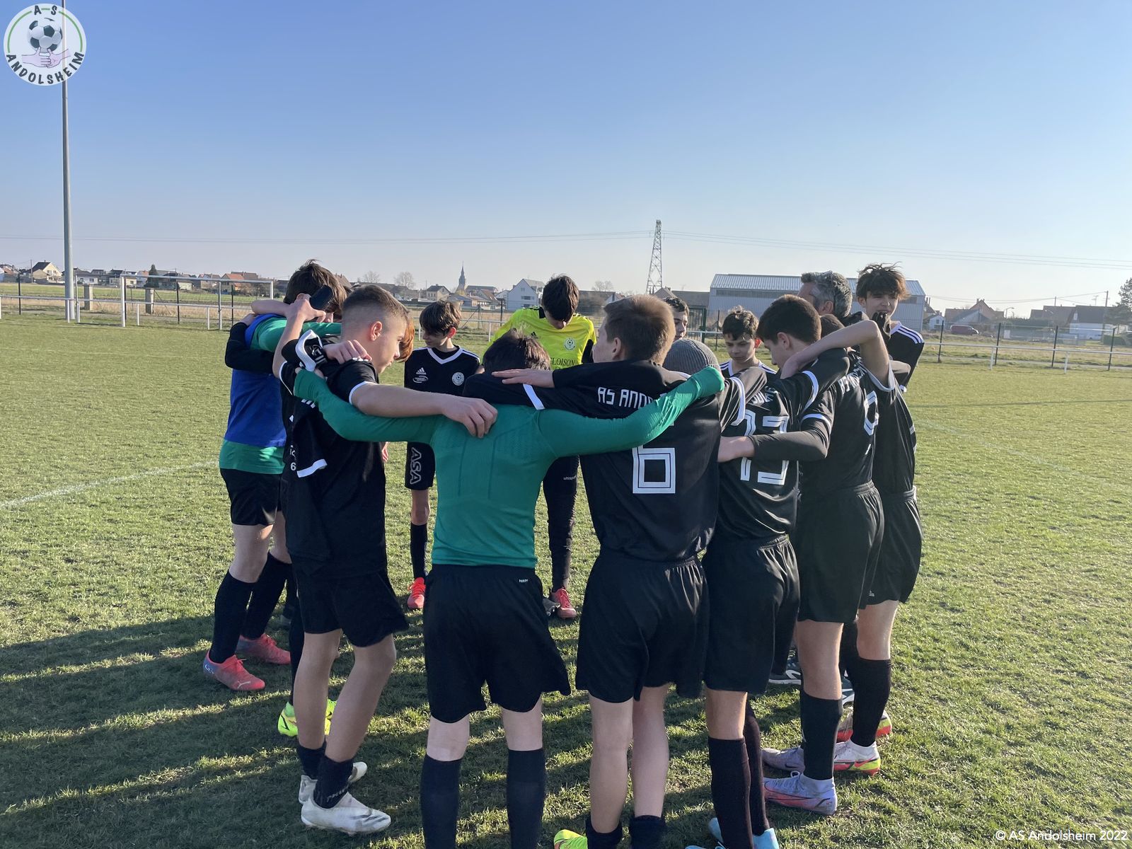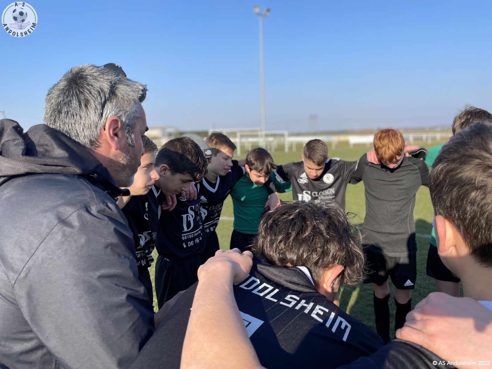 Avec un superbe soleil mais un léger vent froid du nord nous empêchant de se croire au printemps, nos jeunes ont démarré pied au plancher et dès la 6ème minute suite à une superbe remise d’Antonin, Kaïs a ouvert le score d’une belle frappe du gauche. Jouant sans complexes, le seul danger pour l’ASA a été ce terrain sec et bosselé ne permettant pas un grand spectacle pour les 2 équipes mais surtout pour celle qui voulait imposer un jeu au sol. La mi-temps arriva sur ce petit score mais par la suite en réussissant à enfin poser le ballon, on a marqué à plusieurs reprises par Vicente sur penalty (fêtant son anniversaire), Nathan G suite à un contre merveilleusement bien négocié entre lui et Nathan D et par Fino suite à une superbe passe de Vicente qui était sorti de sa défense. Sur les 10 dernières minutes on a encore crucifié (sans jeu de mots) Sainte Croix en Plaine à trois reprises par Mathéo M suite à un tir de Tiziano repoussé par le gardien, puis un rush solitaire d’Antonin pour fêter son anniversaire lui aussi et enfin un plat du pied de Fino suite un centre de Nathan D.