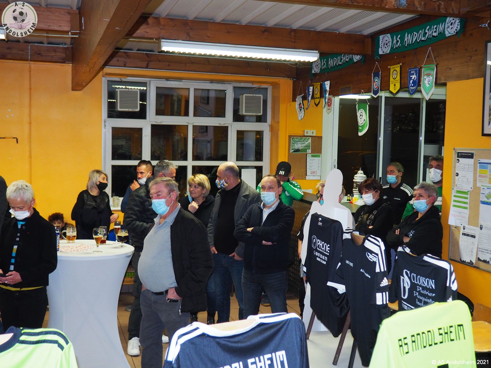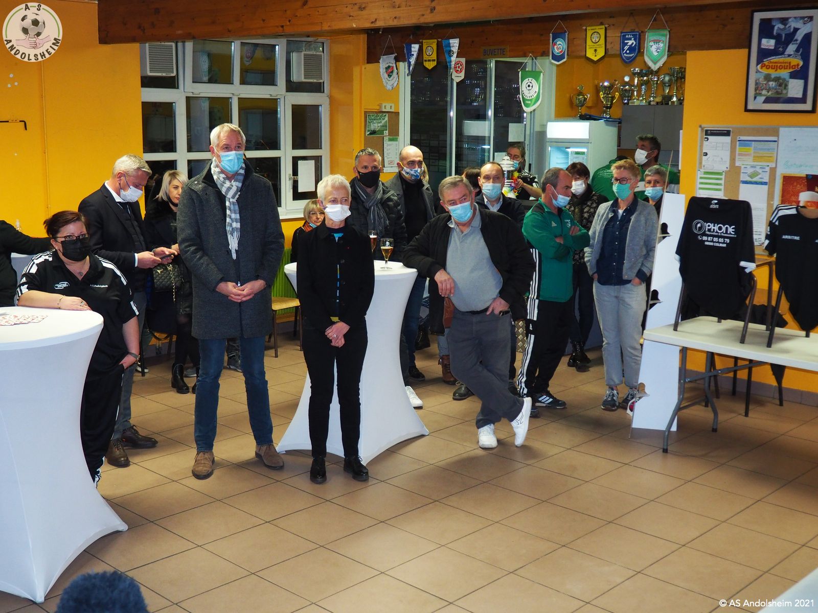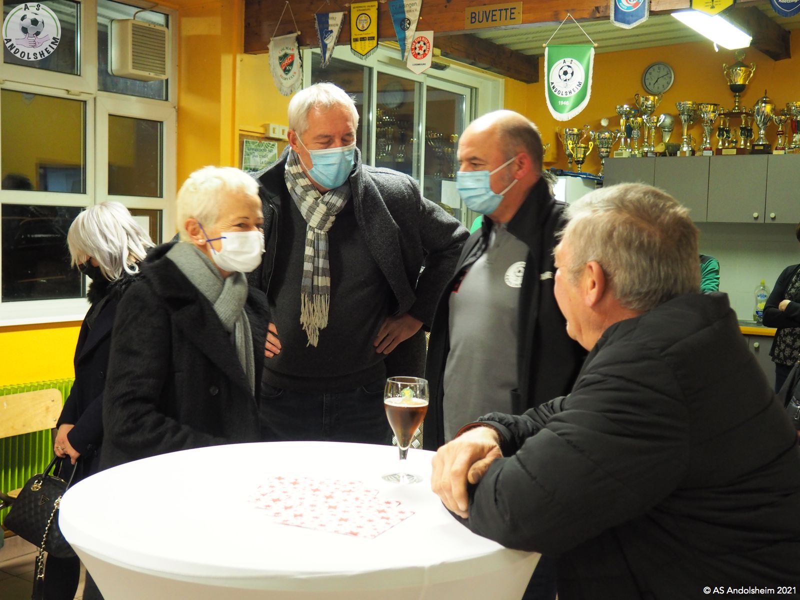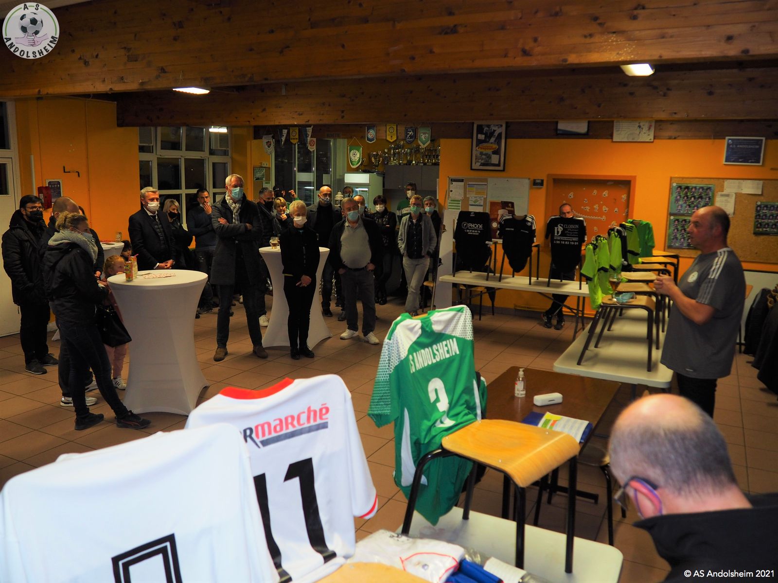 En ce Jeudi 9 décembre, l’ASA organisait sa grande soirée SPONSORS et PARTENAIRES. La première intervention est bien évidemment celle de notre Président Bonzon qui remercia les officiels présents, notamment M. le maire Christian REBERT et la ministre déléguée à l’Insertion Brigitte KLINKERT. Très chaleureux remerciements au premier magistrat de la ville et à notre chère ministre pour leur présence ce soir et leur soutien sans faille tout au long de l’année. Remerciements ensuite à tous nos partenaires pour leur soutien financier redoublé d’années en années. Monsieur le Maire s’exprime pour remercier également nos soutiens et pour évoquer également la collaboration permanente entre la ville d’Andolsheim et l’ASA. Notre maire rappelle que le chantier prochain du nouveau complexe d’accueil et de vestiaires s’inscrit dans ce partenariat de longue durée. Enfin notre ministre Brigitte Klinkert évoque avec notre président des possibilités de projet d’insertion par le sport, projets dans lesquels l’ASA a évidemment toute sa place. A ce sujet notre ministre alsacienne de l’insertion rencontre Roxana Maracineanu cette semaine, notre ministre alsacienne des sports, pour aborder ce sujet. Jean Baptiste Caillebotte , notre trésorier, prend ensuite la parole pour remercier encore une fois nos partenaires, puis, Gérard Abraham, qui est en charge du partenariat, présente également des remerciements chaleureux sous des applaudissements nourris. Remercions tous les bénévoles du club qui avaient préparé une petite restauration très bienvenue. Et, cerise sur le gâteau, ou plutôt sur la bretzel, notre président annonce qu’il y aura une surprise pour la soirée des bénévoles de l’ASA, le 25 février prochain. Citons pour finir, car ils le méritent, et par ordre alphabétique des communes, tous nos partenaires !