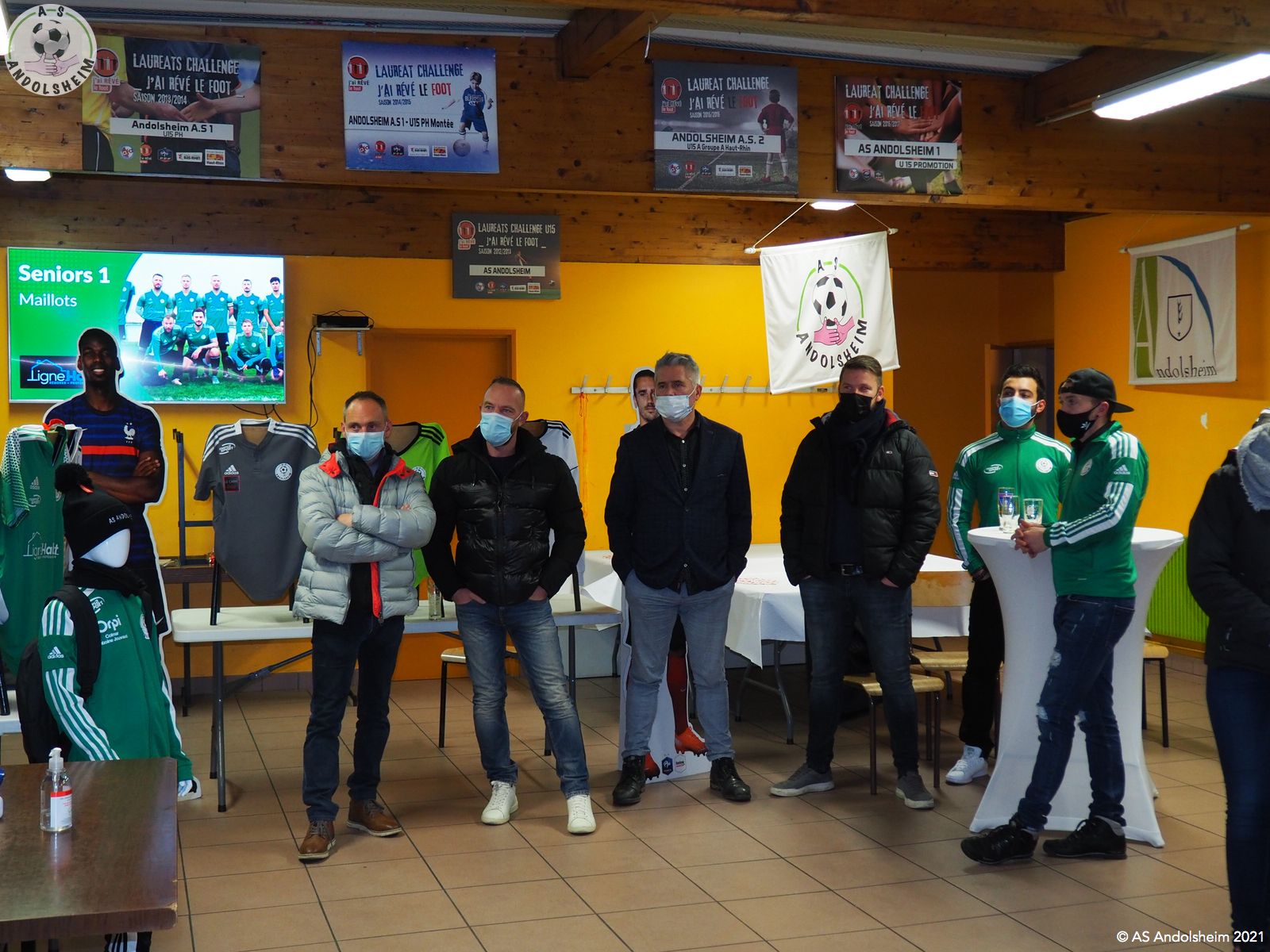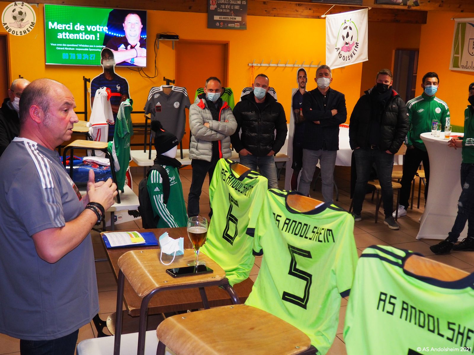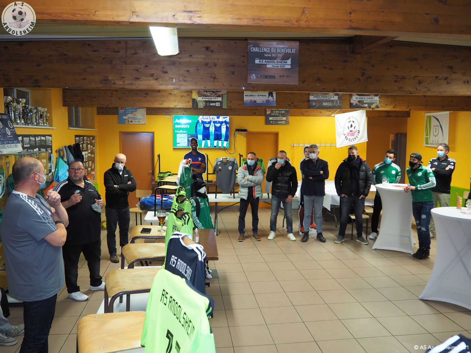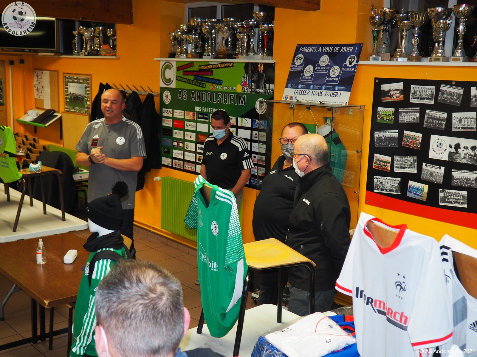En ce Jeudi 9 décembre, l’ASA organisait sa grande soirée SPONSORS et PARTENAIRES. La première intervention est bien évidemment celle de notre Président Bonzon qui remercia les officiels présents, notamment M. le maire Christian REBERT et la ministre déléguée à l’Insertion Brigitte KLINKERT. Très chaleureux remerciements au premier magistrat de la ville et à notre chère ministre pour leur présence ce soir et leur soutien sans faille tout au long de l’année. Remerciements ensuite à tous nos partenaires pour leur soutien financier redoublé d’années en années. Monsieur le Maire s’exprime pour remercier également nos soutiens et pour évoquer également la collaboration permanente entre la ville d’Andolsheim et l’ASA. Notre maire rappelle que le chantier prochain du nouveau complexe d’accueil et de vestiaires s’inscrit dans ce partenariat de longue durée. Enfin notre ministre Brigitte Klinkert évoque avec notre président des possibilités de projet d’insertion par le sport, projets dans lesquels l’ASA a évidemment toute sa place. A ce sujet notre ministre alsacienne de l’insertion rencontre Roxana Maracineanu cette semaine, notre ministre alsacienne des sports, pour aborder ce sujet. Jean Baptiste Caillebotte , notre trésorier, prend ensuite la parole pour remercier encore une fois nos partenaires, puis, Gérard Abraham, qui est en charge du partenariat, présente également des remerciements chaleureux sous des applaudissements nourris. Remercions tous les bénévoles du club qui avaient préparé une petite restauration très bienvenue. Et, cerise sur le gâteau, ou plutôt sur la bretzel, notre président annonce qu’il y aura une surprise pour la soirée des bénévoles de l’ASA, le 25 février prochain. Citons pour finir, car ils le méritent, et par ordre alphabétique des communes, tous nos partenaires !