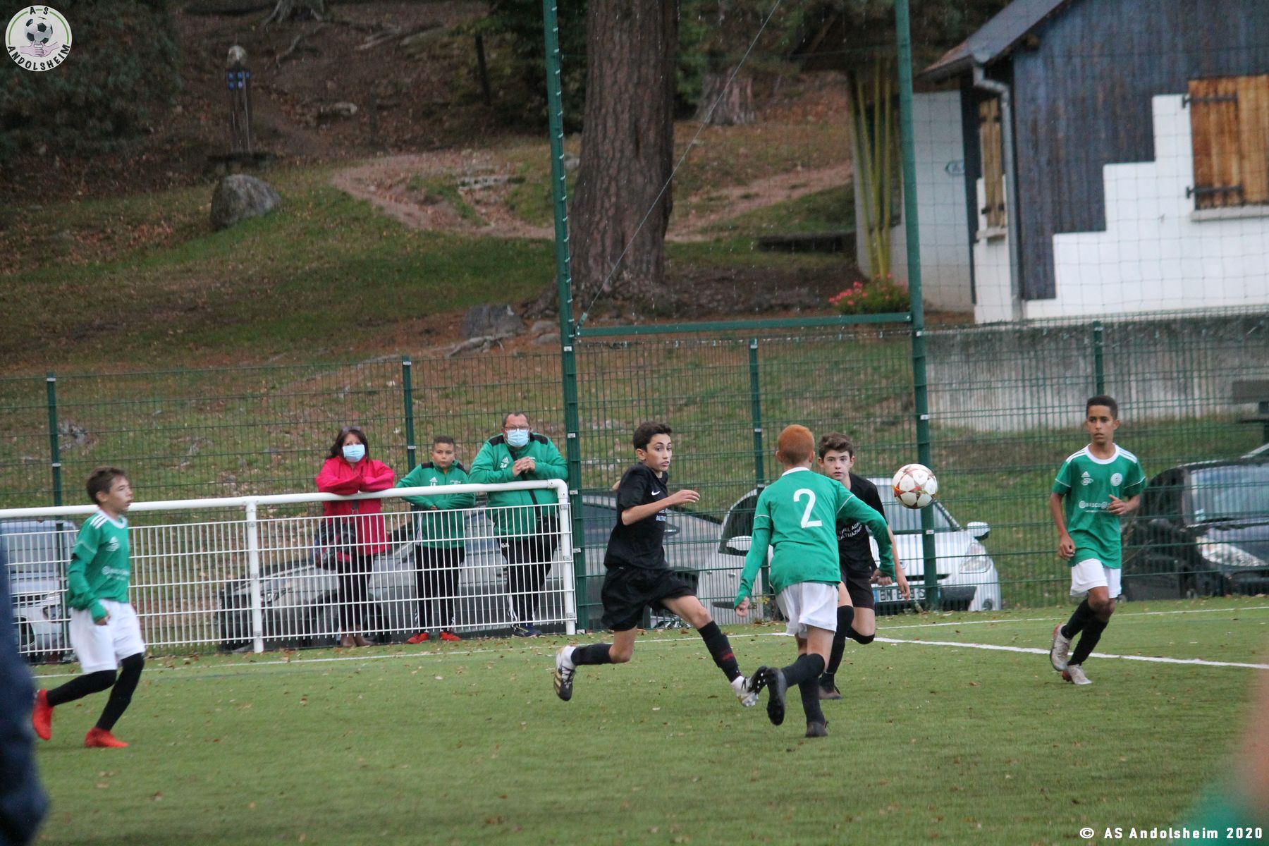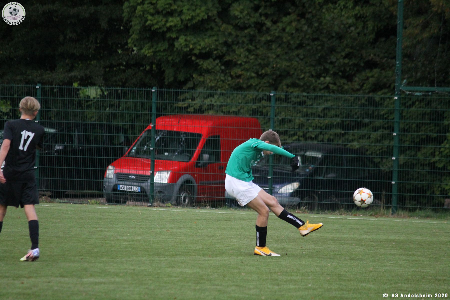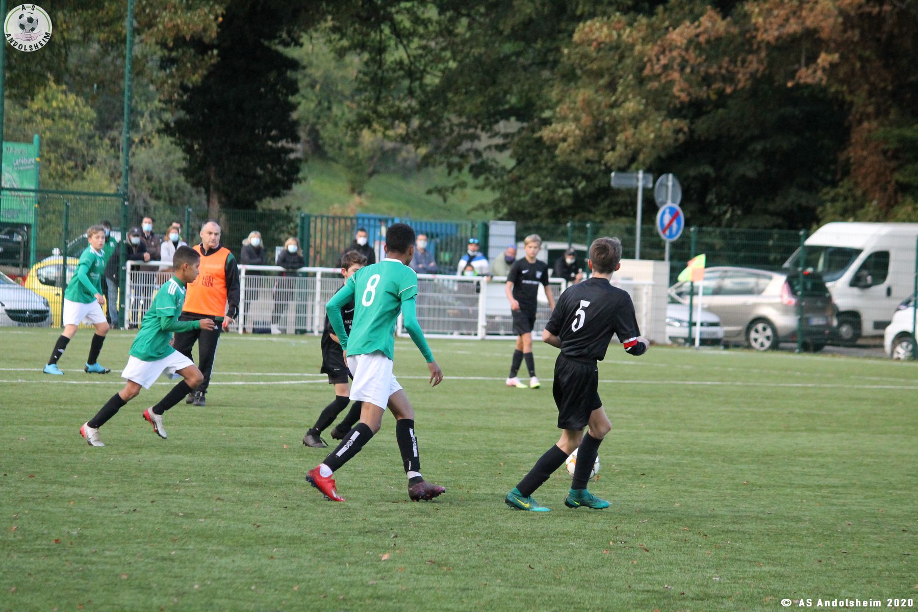 Début de match avec un gros pressing de la part de l'AS Andolsheim durant les 15 premières minutes. Un pressing qui aurait pu être payant dès la première minute, en effet le gardien étant surpris par le pressing effectué, a failli perdre le ballon devant son but grand ouvert. Le pressing effectué par le trio offensif IHLAN, MAXENCE et MATTEO FILOCHIO était très mal organisé et mal effectué, de plus le milieu de terrain composé de TOM, KILLIAN et AYMERIC ne semblait pas suivre le pressing lancé par l'attaque. Cela a eu donc comme conséquence un grand vide au milieu de terrain qui a permis à l'adversaire de progresser depuis sa défense. Cela va leurs porter préjudice car ils vont commencés à courir après le ballon jusqu'à la fin de la première mi-temps et encaisser le premier but vers la 20ème minute. On constate une anomalie au milieu de terrain ainsi qu'un gros manque d'agressivité, on remarque ce manque de présence par le retard qu'avaient les joueurs ďandolsheim sur chaque ballon ! Un petit mieux à partir de la 30ème minute avec la première occasion ďandolsheim et des attaques hésitantes jusqu'à la mi-temps. Reprise de la deuxième mi-temps avec d'autres intentions, en effet le discours du coach THOMAS leurs redonnent espoir. Les joueurs ne sont finalement toujours pas très convaincants et ne réagissent pas malgré les occasions créées notamment par l'intermédiaire de coup francs bien tirés de la part de ROBIN. Les joueurs de l'as andolsheim continuent de subir durant cette mi-temps avec le même problème que la première mi-temps : leurs manque de physique, d'impact et de combativité ! Ils encaissent ainsi un 2ème but sur une percée d'un joueur adverse qui transperce la défense et enfin ils encaissent le 3ème but sur frappe qui file entre les doigts du malheureux CLÉMENT. Une fin de match qui laisse perplexe mais qui laisse envisager un gros progrès de la part de l'équipe de l'As Andolsheim !!!
