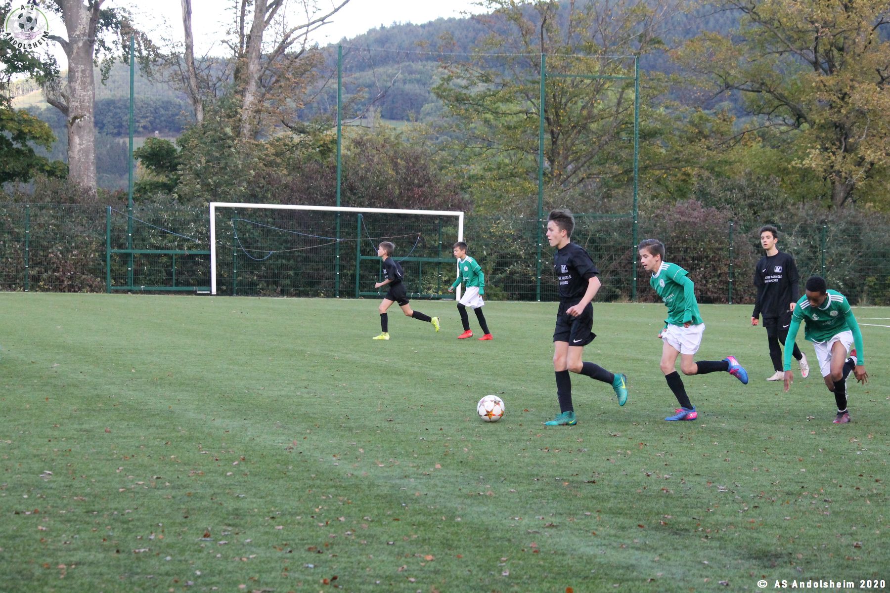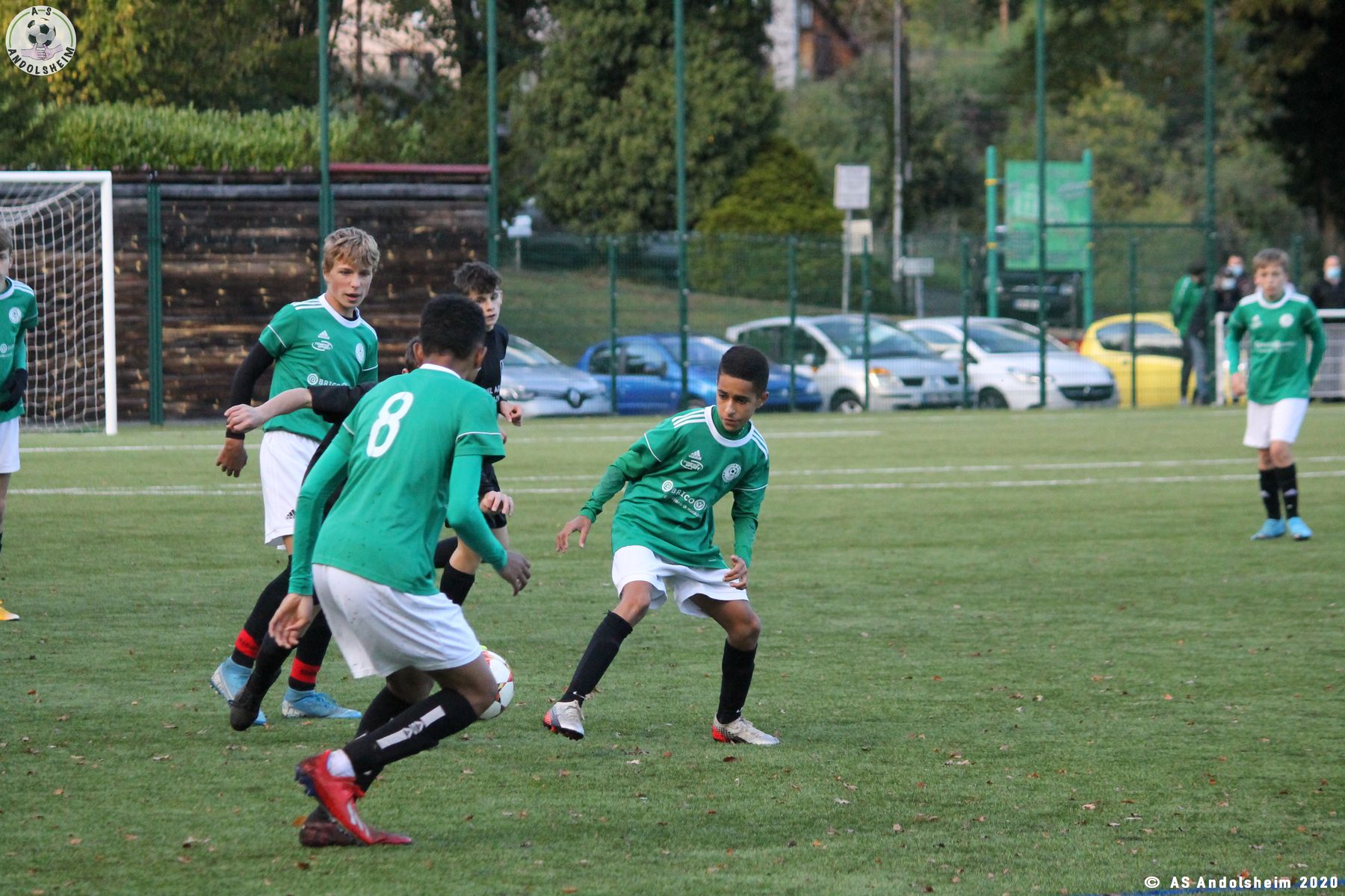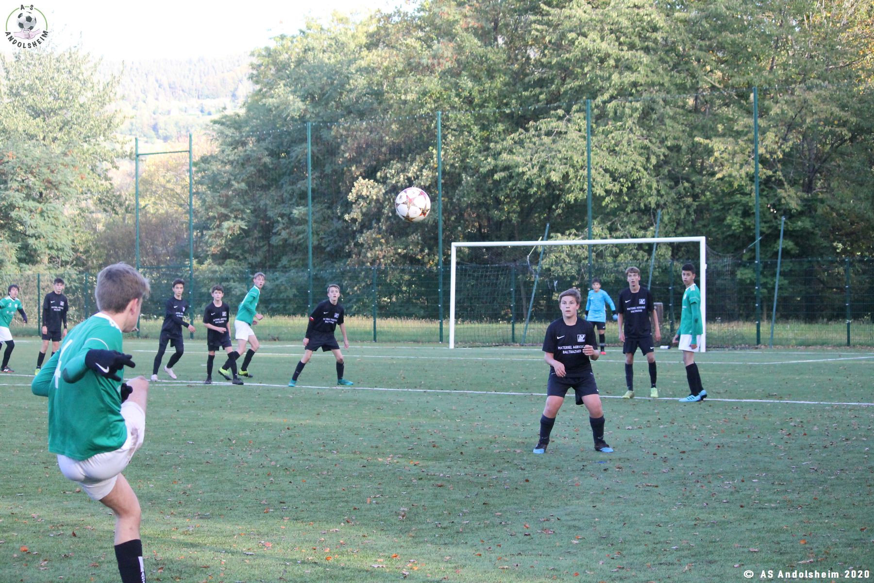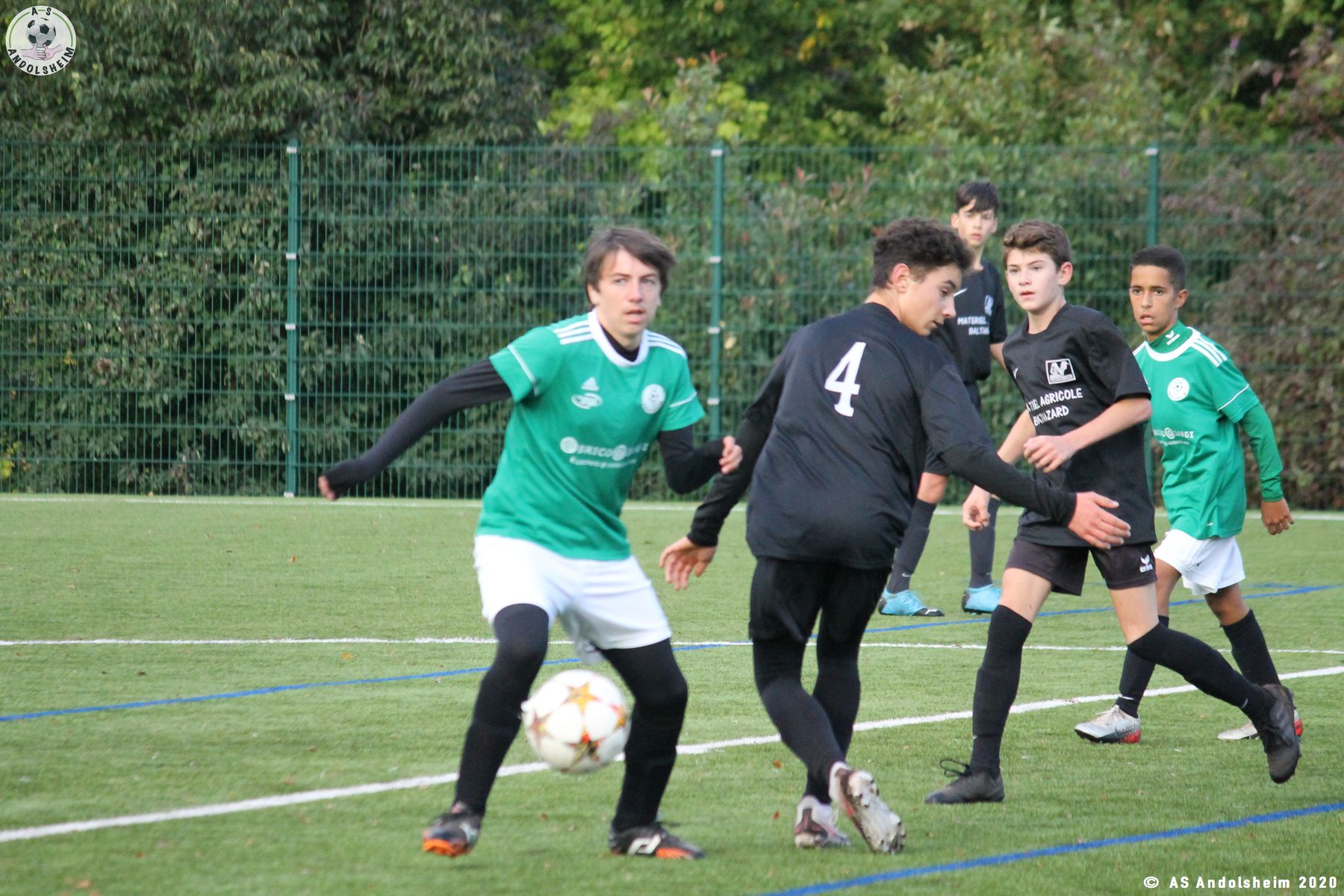 Début de match avec un gros pressing de la part de l'AS Andolsheim durant les 15 premières minutes. Un pressing qui aurait pu être payant dès la première minute, en effet le gardien étant surpris par le pressing effectué, a failli perdre le ballon devant son but grand ouvert. Le pressing effectué par le trio offensif IHLAN, MAXENCE et MATTEO FILOCHIO était très mal organisé et mal effectué, de plus le milieu de terrain composé de TOM, KILLIAN et AYMERIC ne semblait pas suivre le pressing lancé par l'attaque. Cela a eu donc comme conséquence un grand vide au milieu de terrain qui a permis à l'adversaire de progresser depuis sa défense. Cela va leurs porter préjudice car ils vont commencés à courir après le ballon jusqu'à la fin de la première mi-temps et encaisser le premier but vers la 20ème minute. On constate une anomalie au milieu de terrain ainsi qu'un gros manque d'agressivité, on remarque ce manque de présence par le retard qu'avaient les joueurs ďandolsheim sur chaque ballon ! Un petit mieux à partir de la 30ème minute avec la première occasion ďandolsheim et des attaques hésitantes jusqu'à la mi-temps. Reprise de la deuxième mi-temps avec d'autres intentions, en effet le discours du coach THOMAS leurs redonnent espoir. Les joueurs ne sont finalement toujours pas très convaincants et ne réagissent pas malgré les occasions créées notamment par l'intermédiaire de coup francs bien tirés de la part de ROBIN. Les joueurs de l'as andolsheim continuent de subir durant cette mi-temps avec le même problème que la première mi-temps : leurs manque de physique, d'impact et de combativité ! Ils encaissent ainsi un 2ème but sur une percée d'un joueur adverse qui transperce la défense et enfin ils encaissent le 3ème but sur frappe qui file entre les doigts du malheureux CLÉMENT. Une fin de match qui laisse perplexe mais qui laisse envisager un gros progrès de la part de l'équipe de l'As Andolsheim !!!