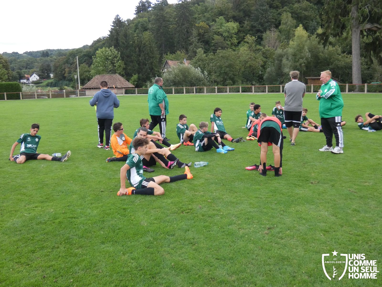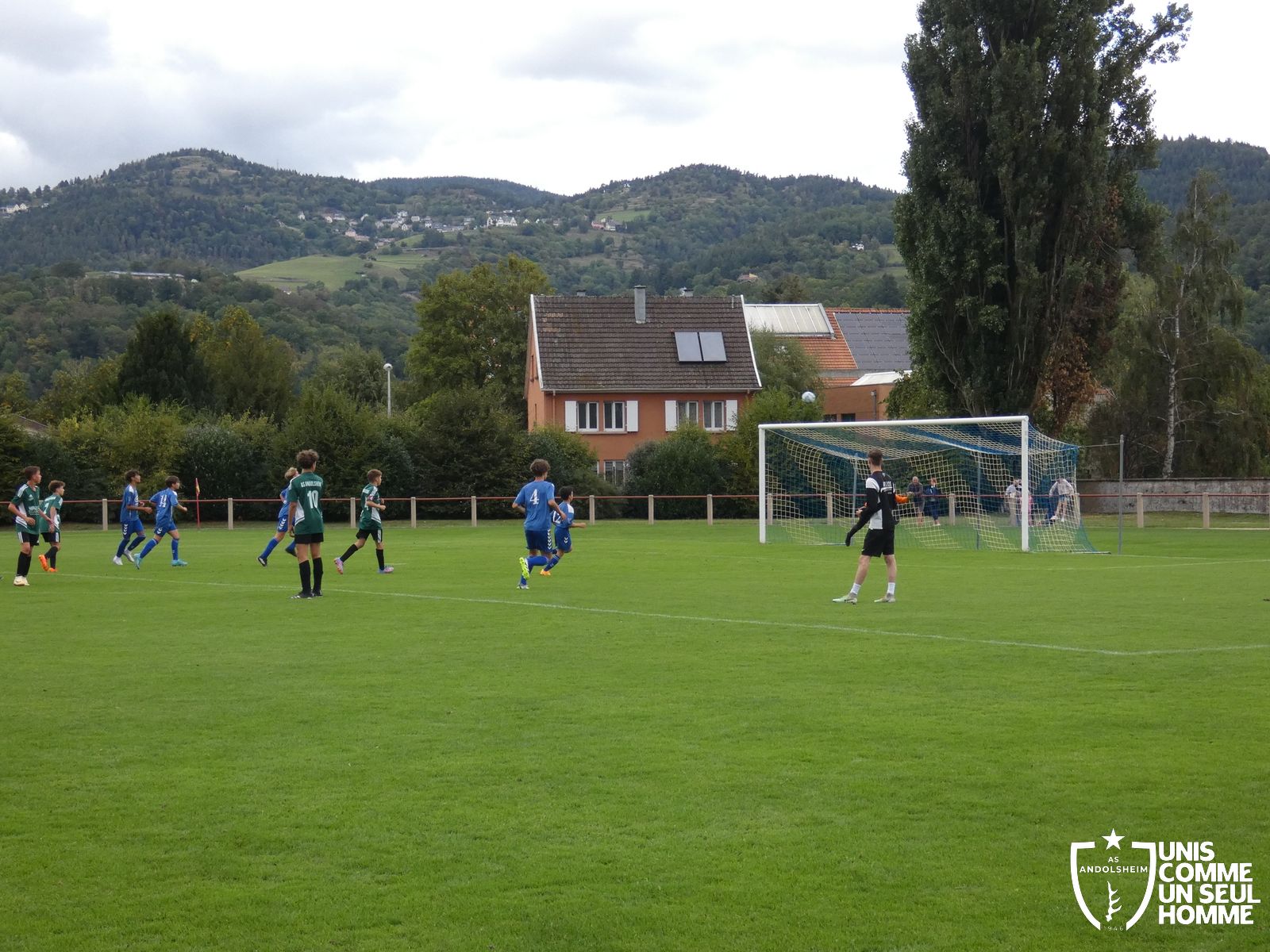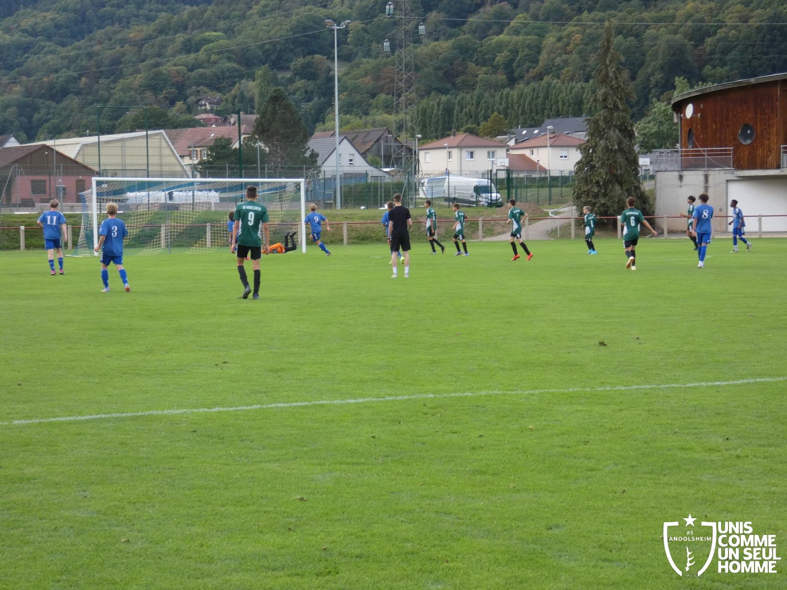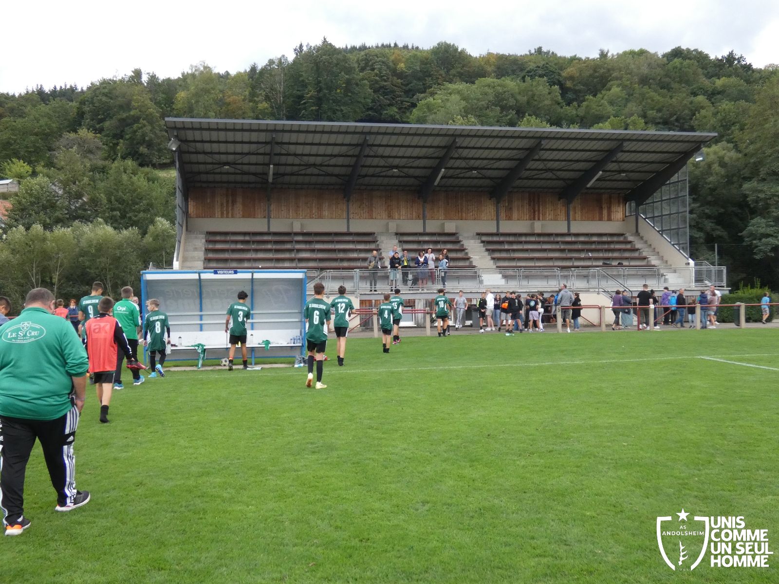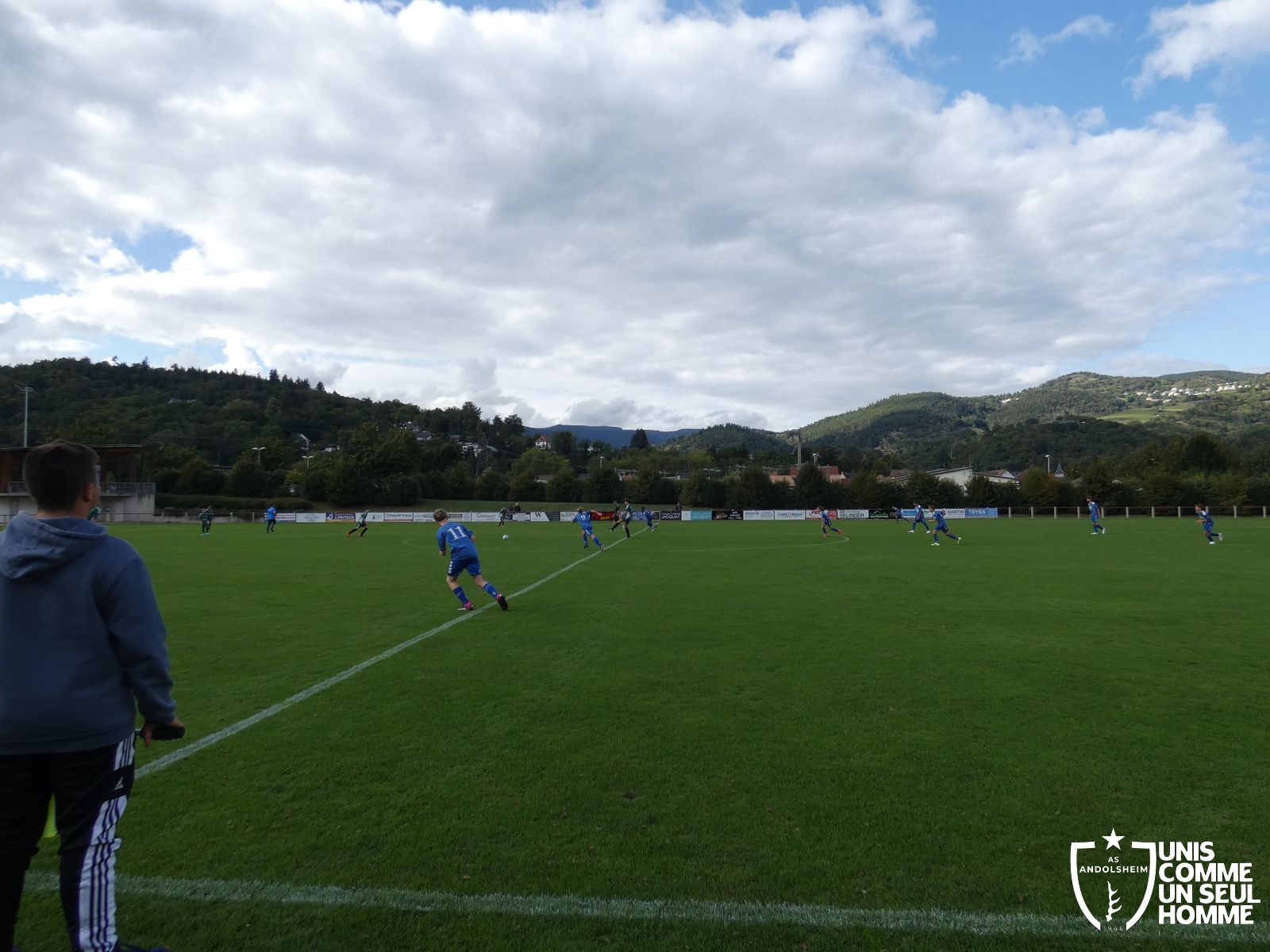 Pour ce deuxième match du championnat, nos Verts se sont déplacés sur les terres de l’AS Munster samedi dernier. Marc et Stéphane étaient à la manœuvre pour le coaching. Après l’échauffement de rigueur, l’arbitre local siffle le rassemblement pour une entrée sur le terrain à la manière des seniors. Louis A les accompagne cet après-midi en tant que juge de touche.