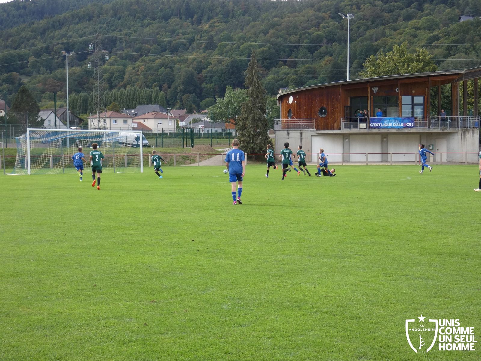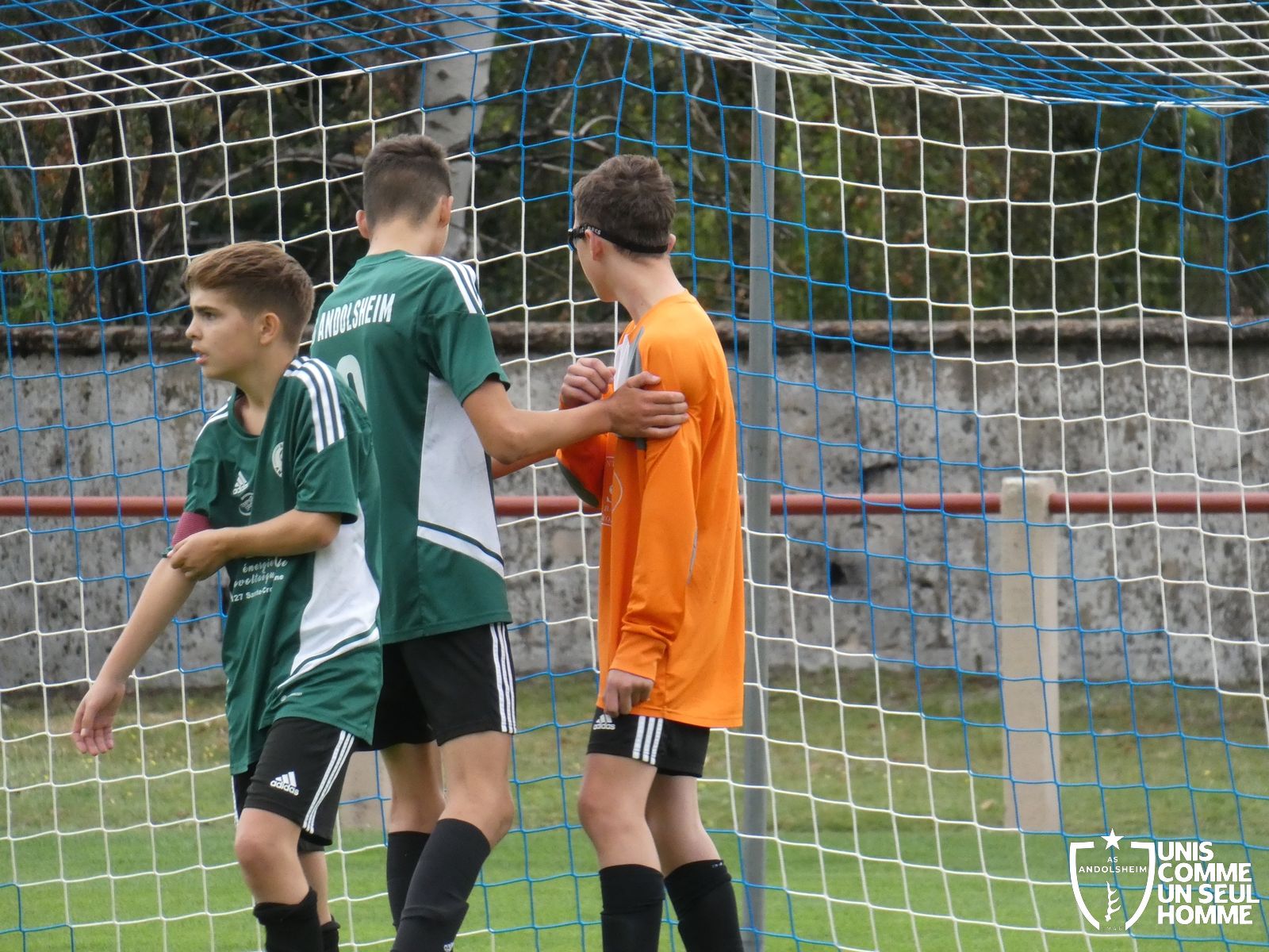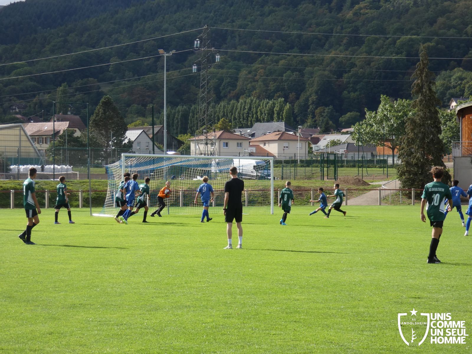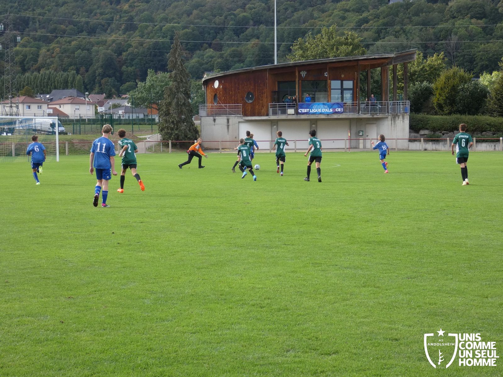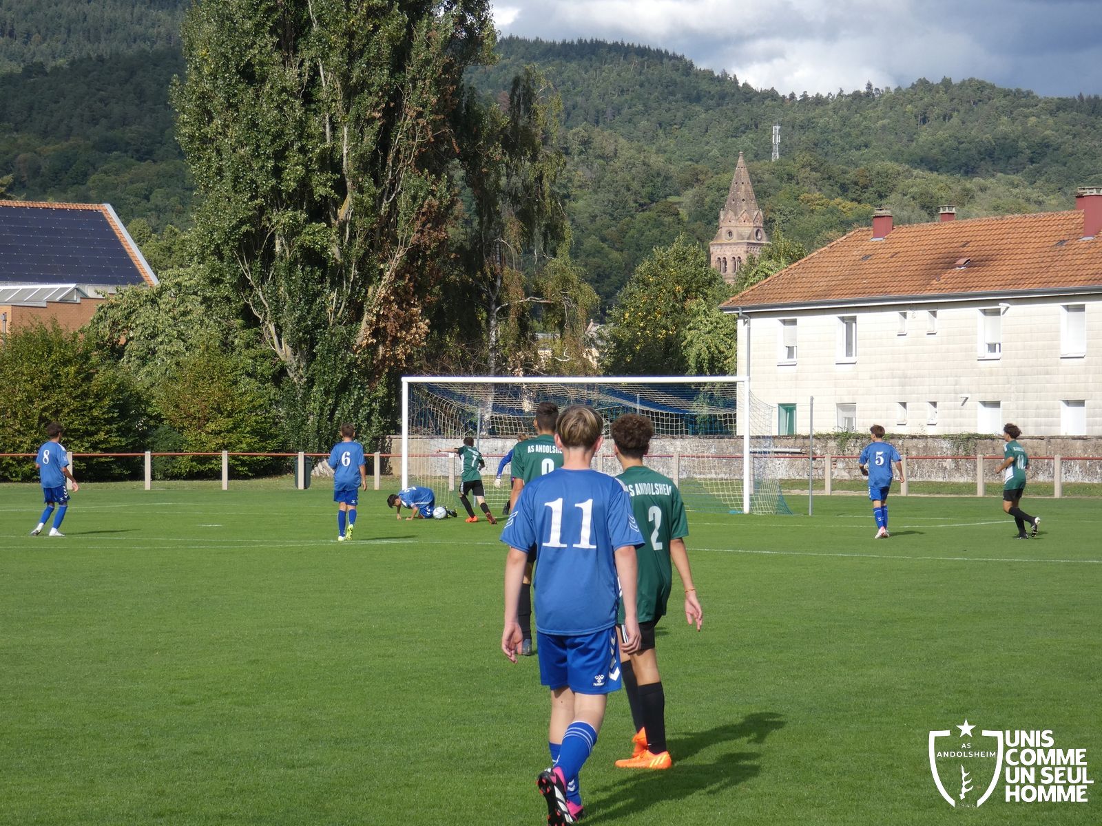 Pour ce deuxième match du championnat, nos Verts se sont déplacés sur les terres de l’AS Munster samedi dernier. Marc et Stéphane étaient à la manœuvre pour le coaching. Après l’échauffement de rigueur, l’arbitre local siffle le rassemblement pour une entrée sur le terrain à la manière des seniors. Louis A les accompagne cet après-midi en tant que juge de touche.