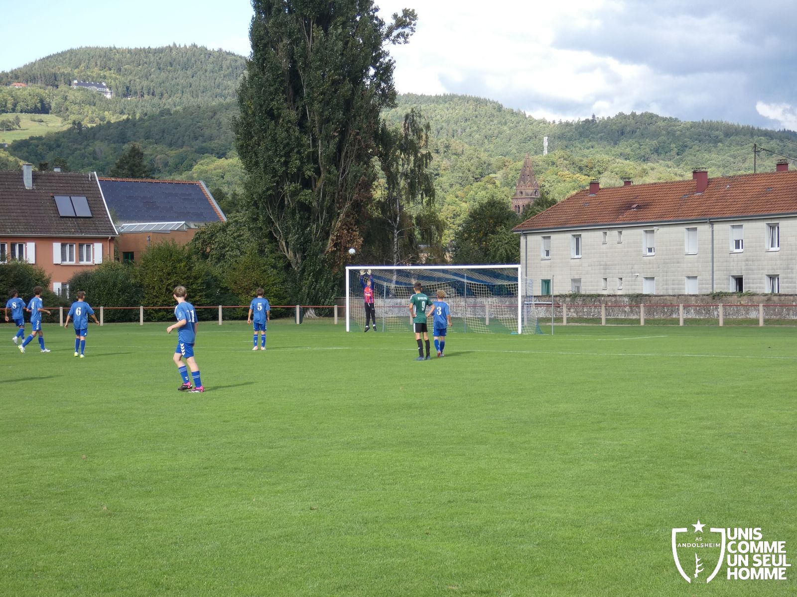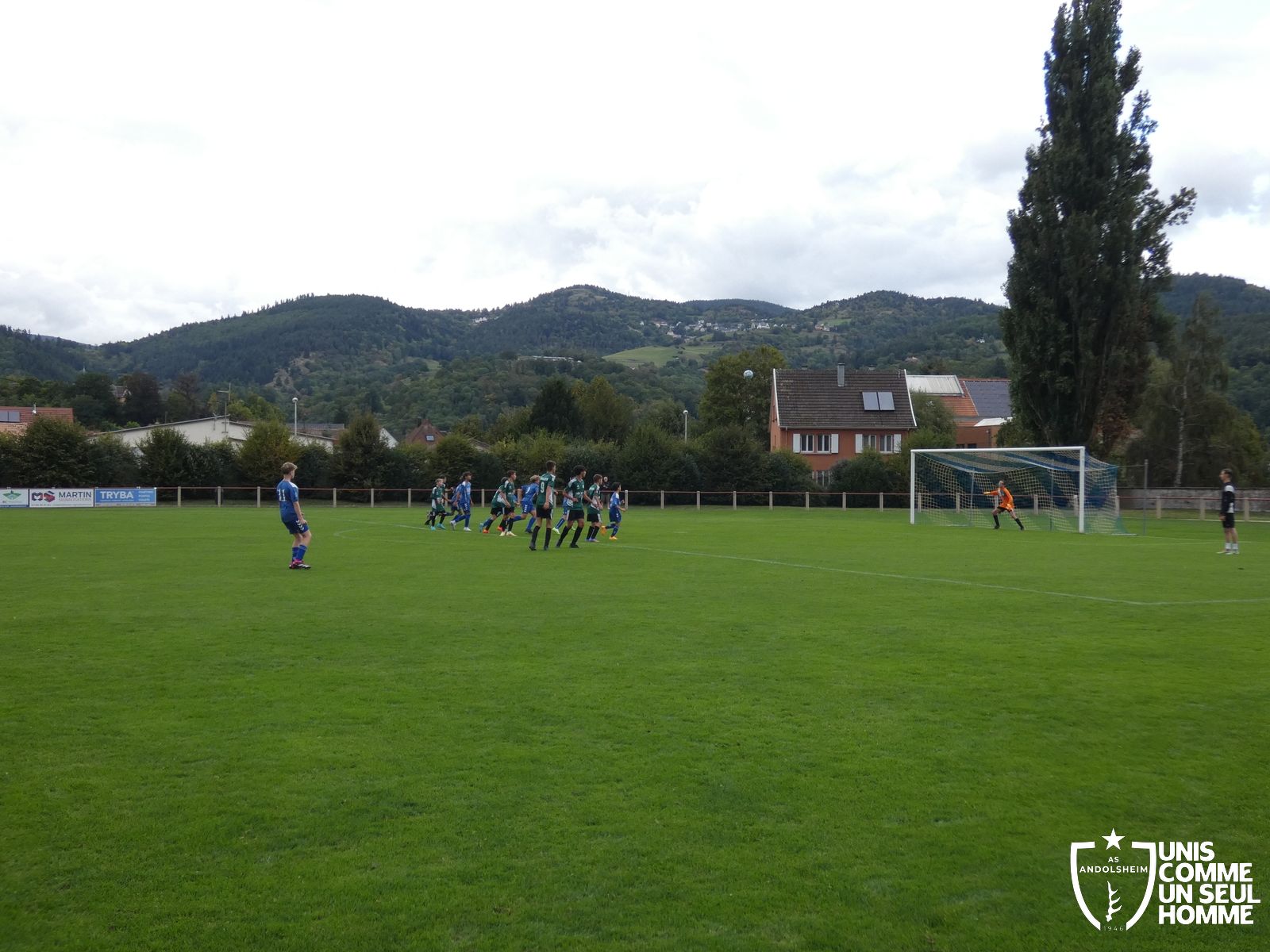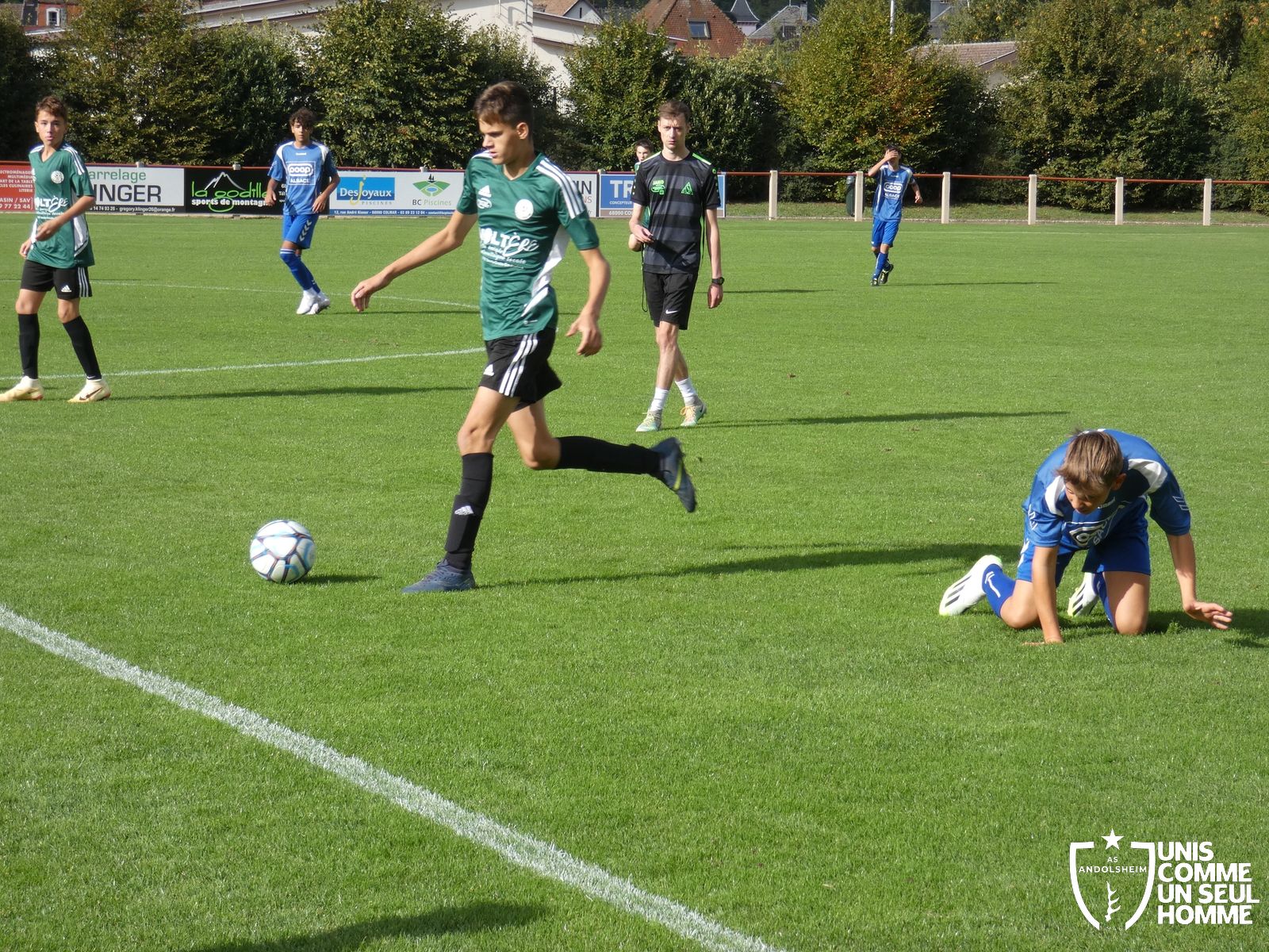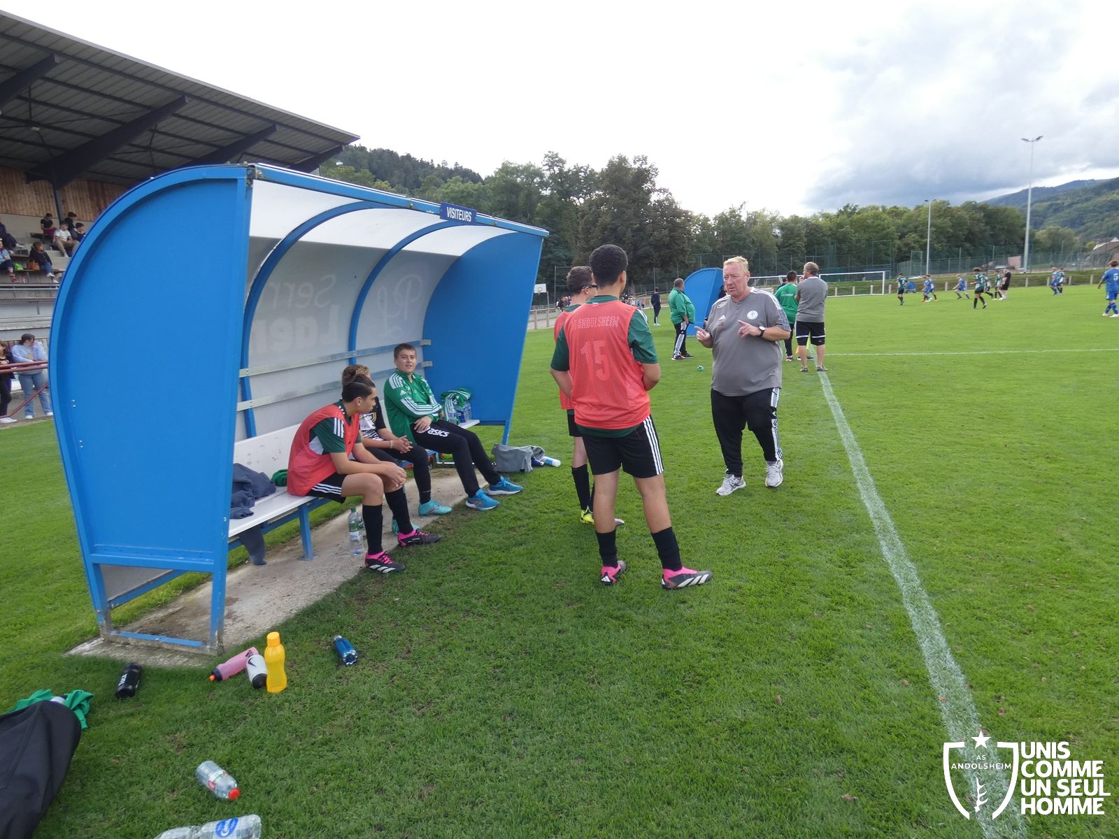 Pour ce deuxième match du championnat, nos Verts se sont déplacés sur les terres de l’AS Munster samedi dernier. Marc et Stéphane étaient à la manœuvre pour le coaching. Après l’échauffement de rigueur, l’arbitre local siffle le rassemblement pour une entrée sur le terrain à la manière des seniors. Louis A les accompagne cet après-midi en tant que juge de touche.
