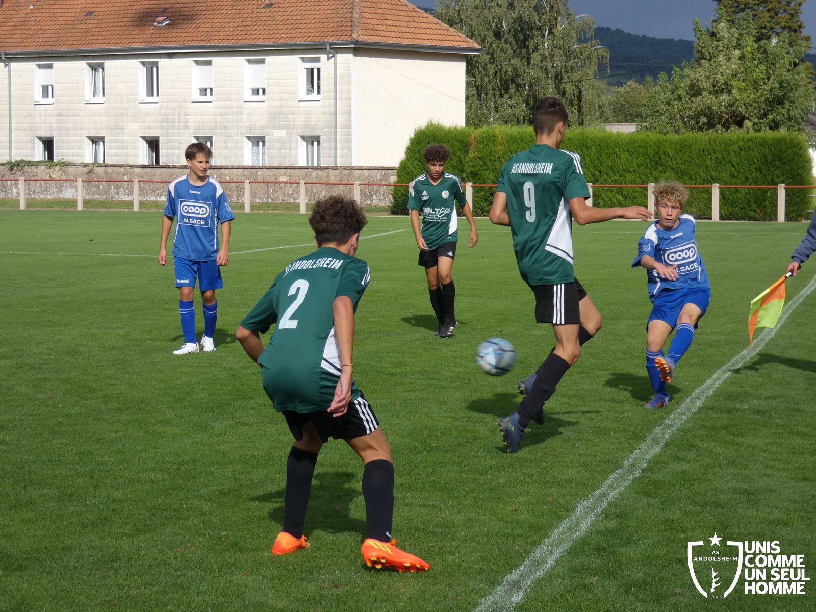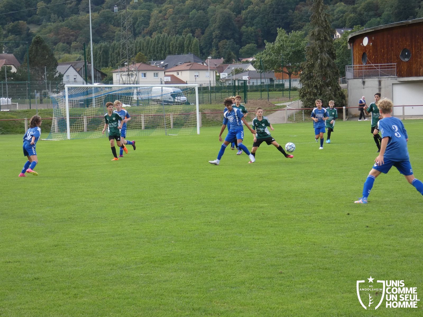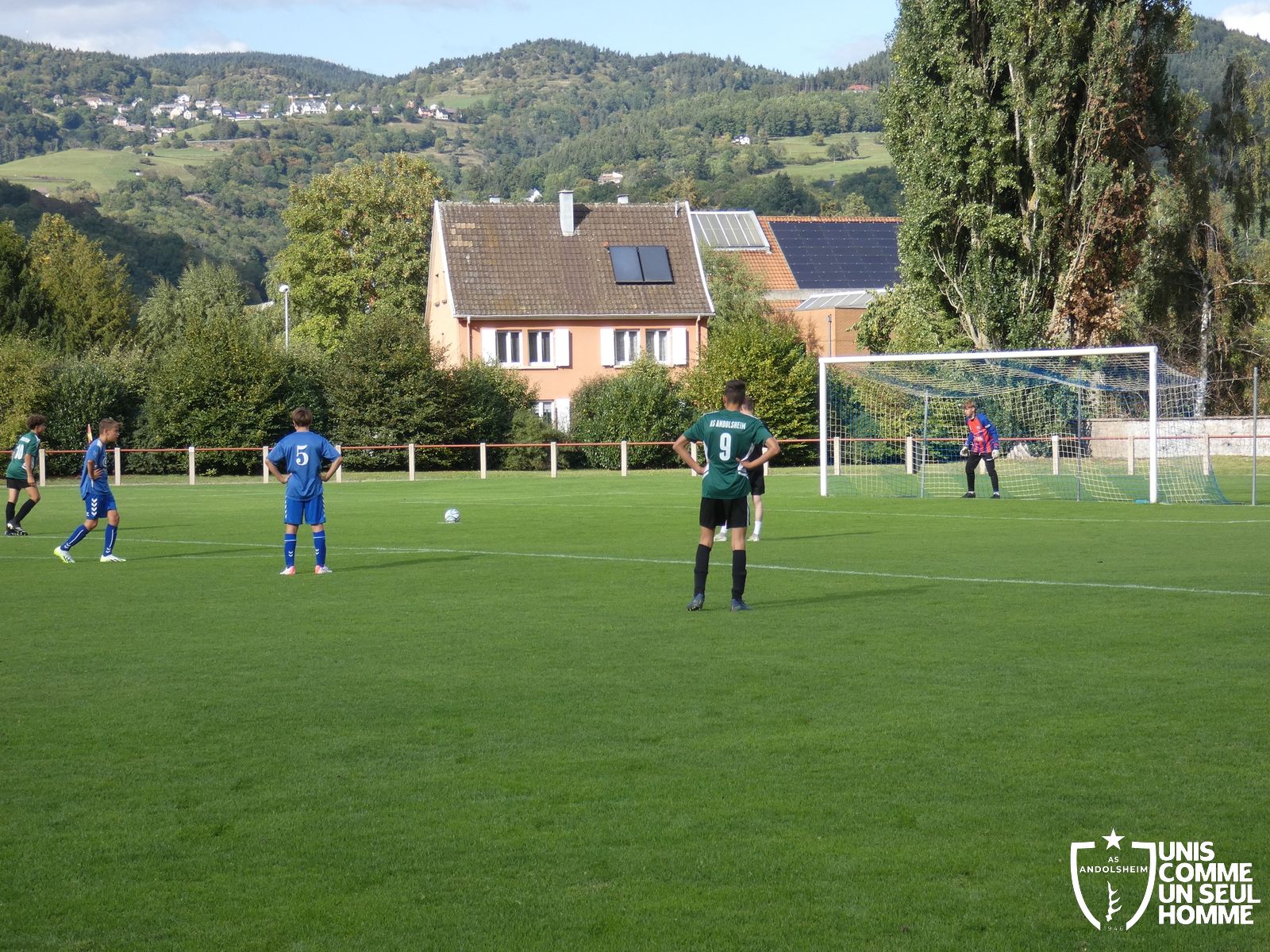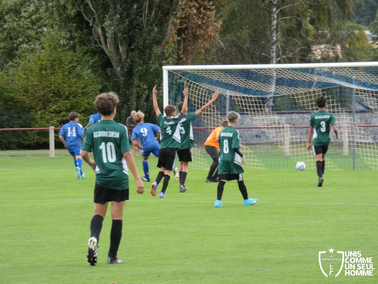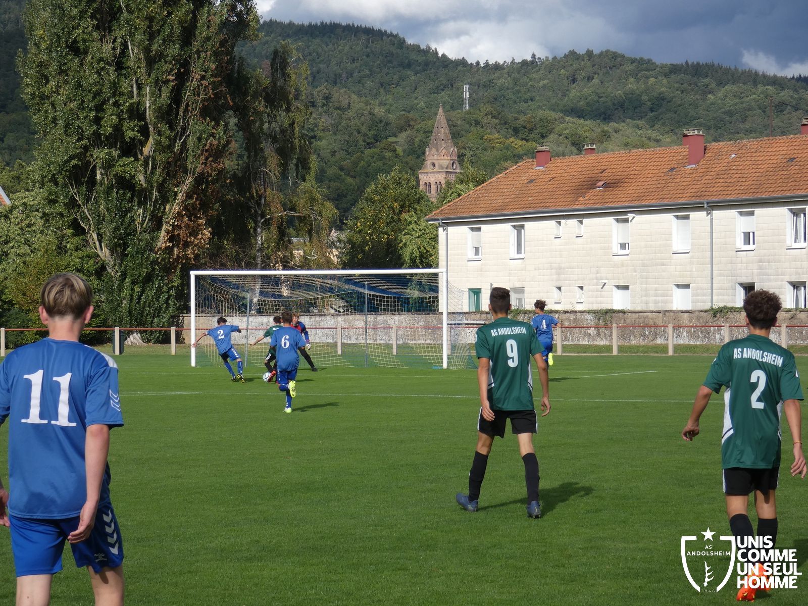 Pour ce deuxième match du championnat, nos Verts se sont déplacés sur les terres de l’AS Munster samedi dernier. Marc et Stéphane étaient à la manœuvre pour le coaching. Après l’échauffement de rigueur, l’arbitre local siffle le rassemblement pour une entrée sur le terrain à la manière des seniors. Louis A les accompagne cet après-midi en tant que juge de touche.