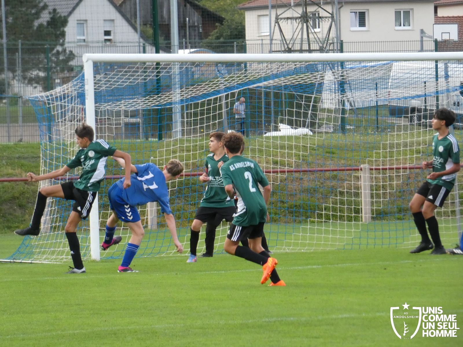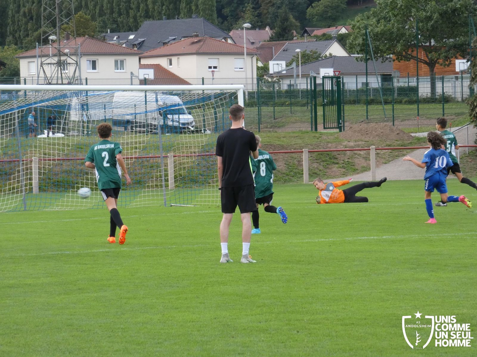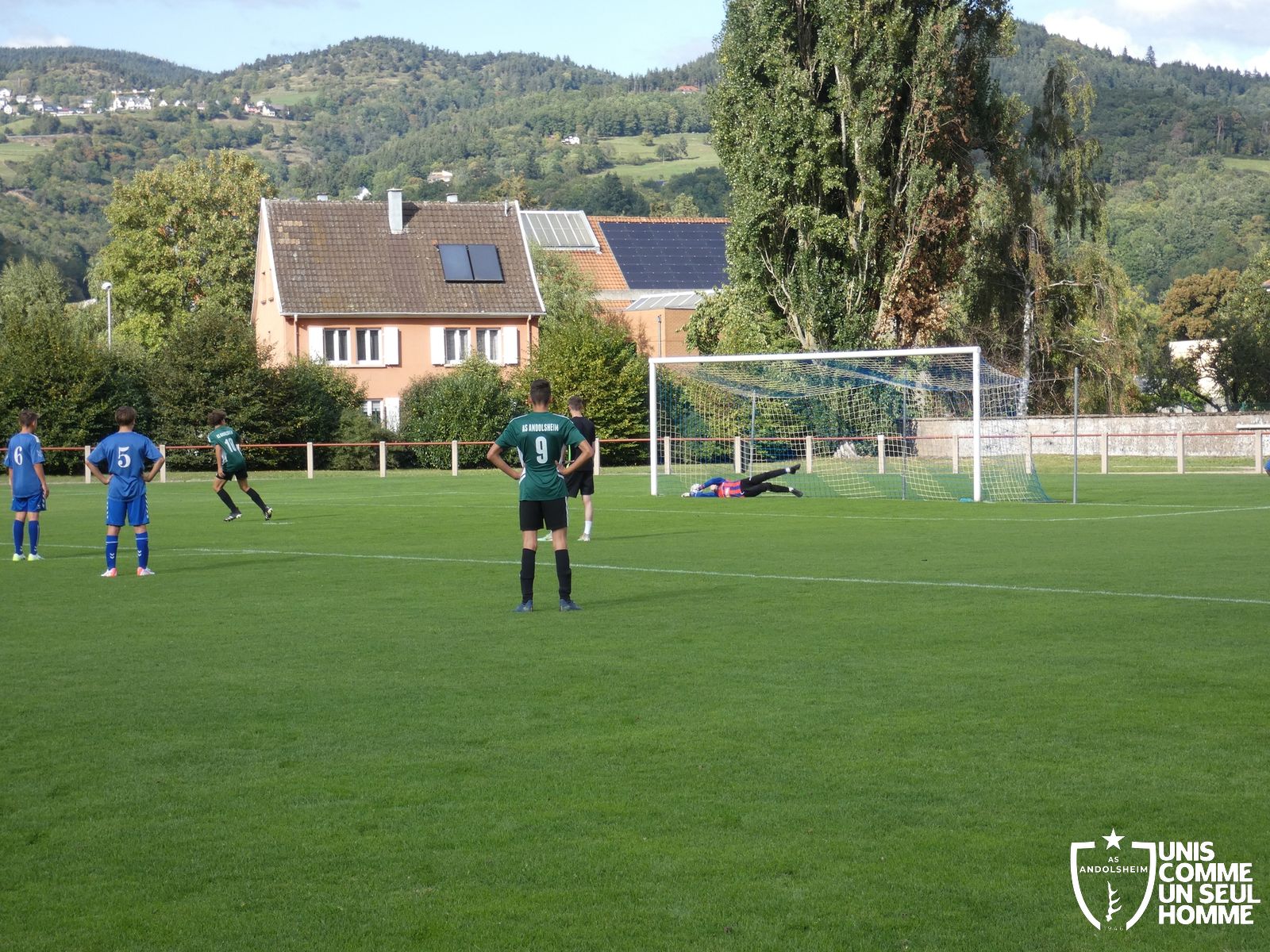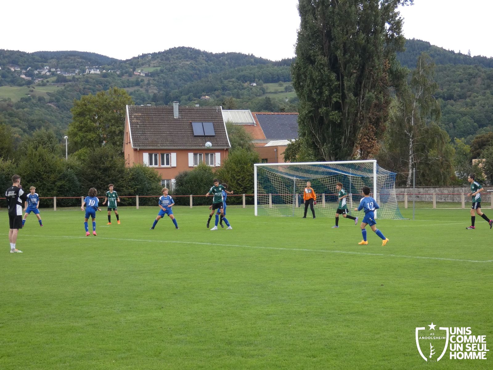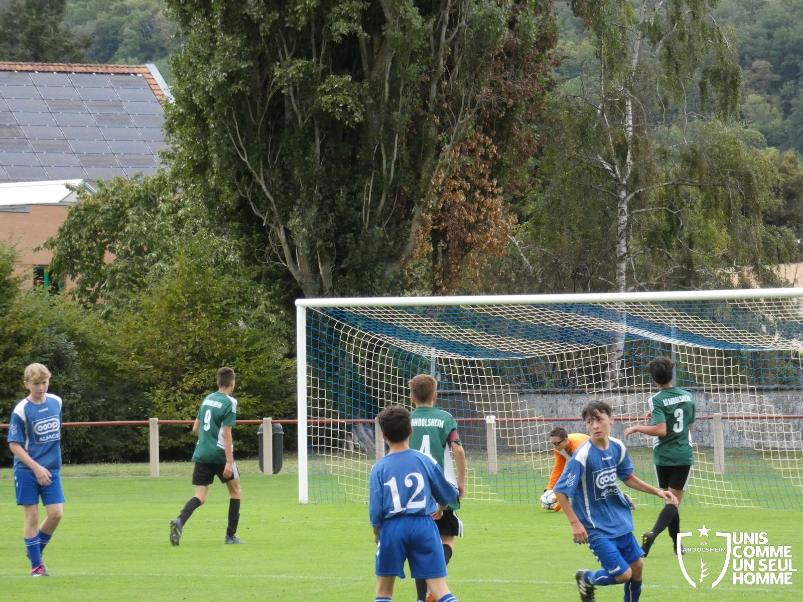 Pour ce deuxième match du championnat, nos Verts se sont déplacés sur les terres de l’AS Munster samedi dernier. Marc et Stéphane étaient à la manœuvre pour le coaching. Après l’échauffement de rigueur, l’arbitre local siffle le rassemblement pour une entrée sur le terrain à la manière des seniors. Louis A les accompagne cet après-midi en tant que juge de touche.
