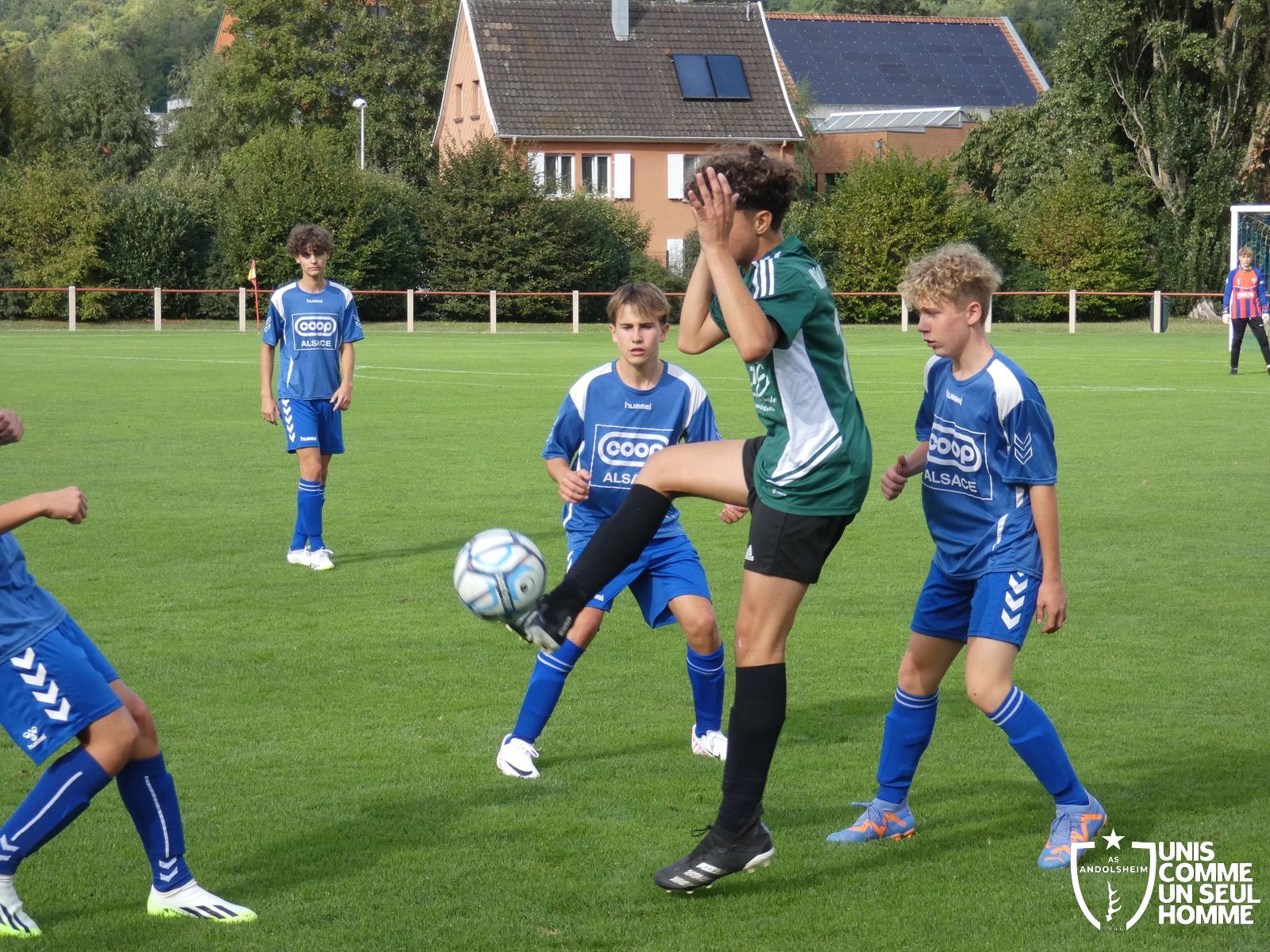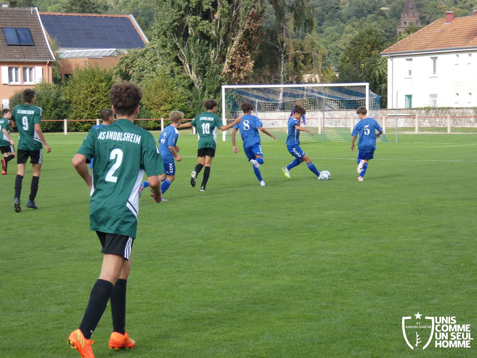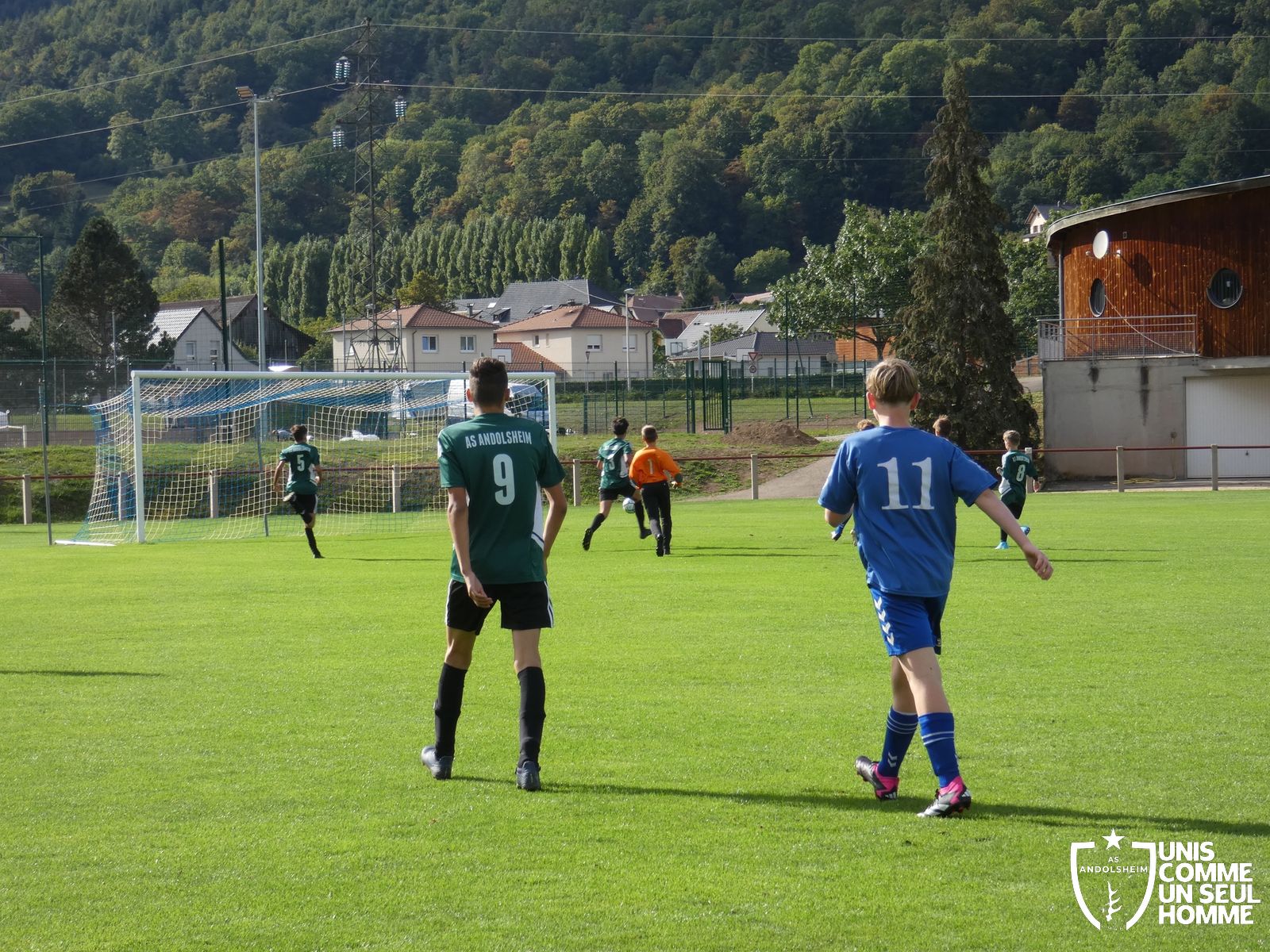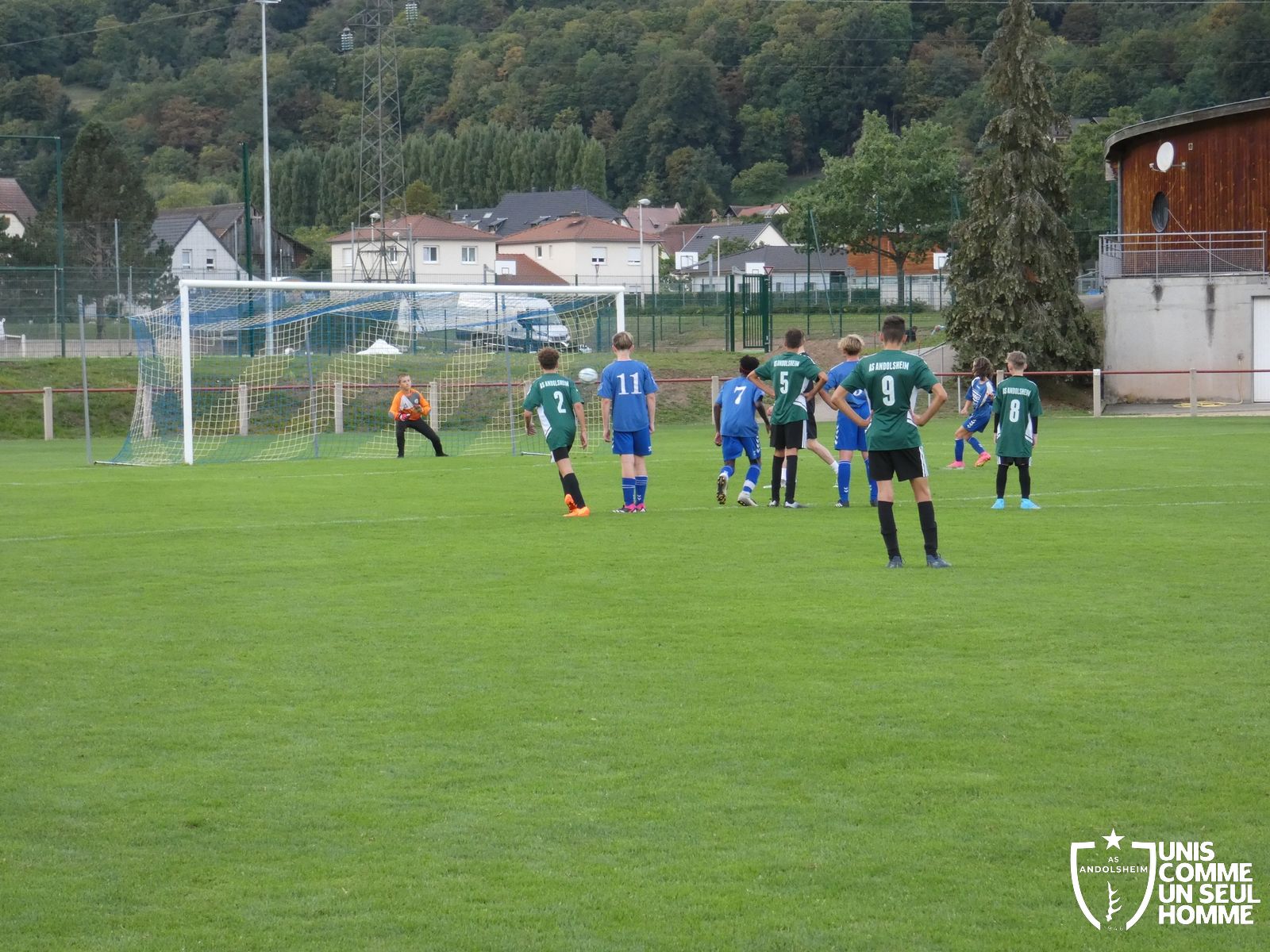 Pour ce deuxième match du championnat, nos Verts se sont déplacés sur les terres de l’AS Munster samedi dernier. Marc et Stéphane étaient à la manœuvre pour le coaching. Après l’échauffement de rigueur, l’arbitre local siffle le rassemblement pour une entrée sur le terrain à la manière des seniors. Louis A les accompagne cet après-midi en tant que juge de touche.