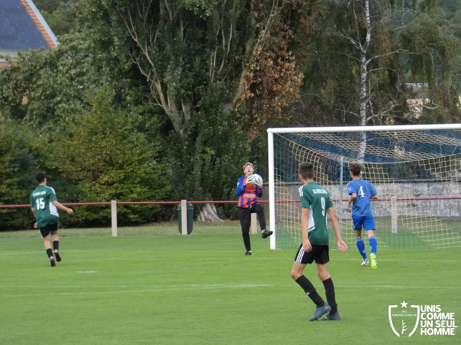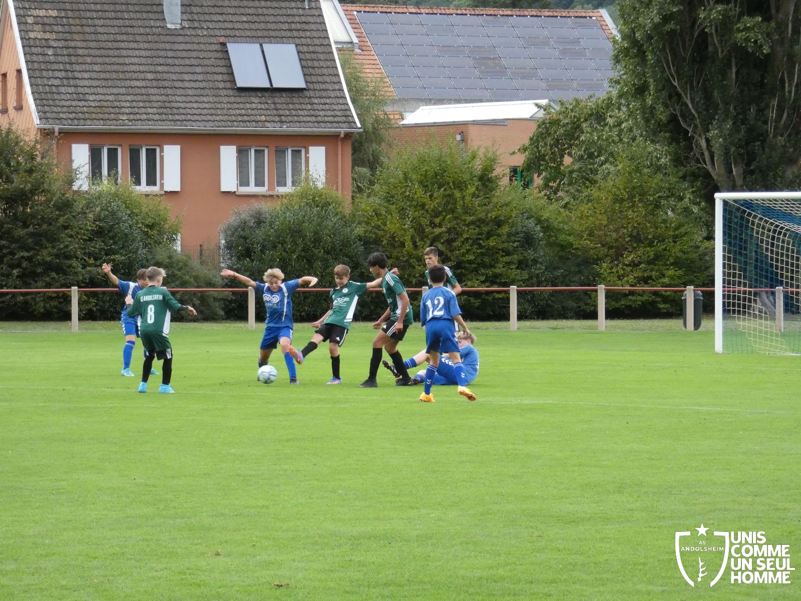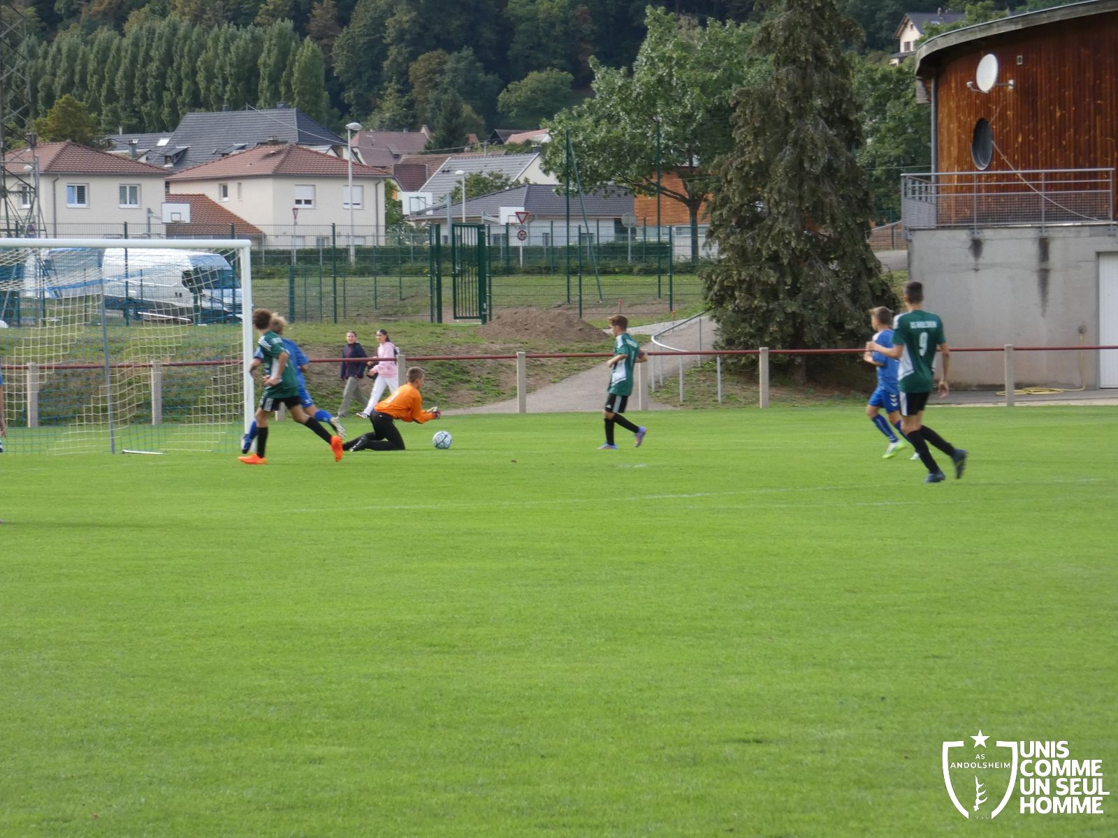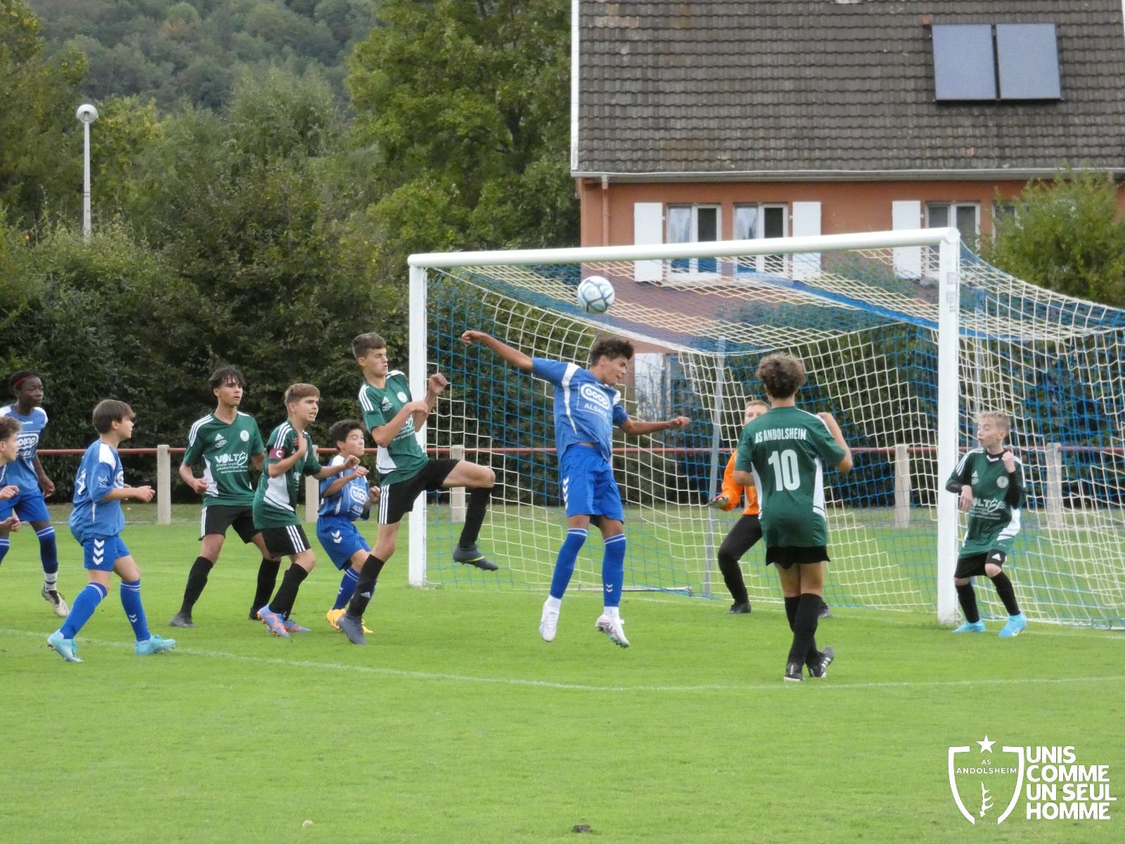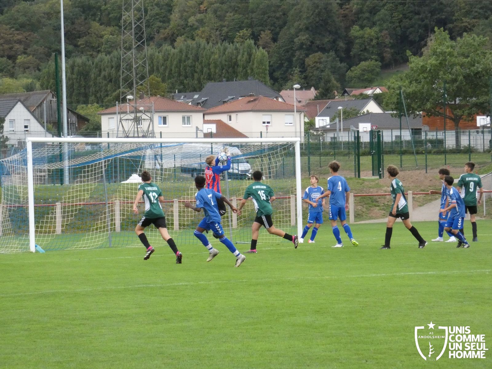 Pour ce deuxième match du championnat, nos Verts se sont déplacés sur les terres de l’AS Munster samedi dernier. Marc et Stéphane étaient à la manœuvre pour le coaching. Après l’échauffement de rigueur, l’arbitre local siffle le rassemblement pour une entrée sur le terrain à la manière des seniors. Louis A les accompagne cet après-midi en tant que juge de touche.