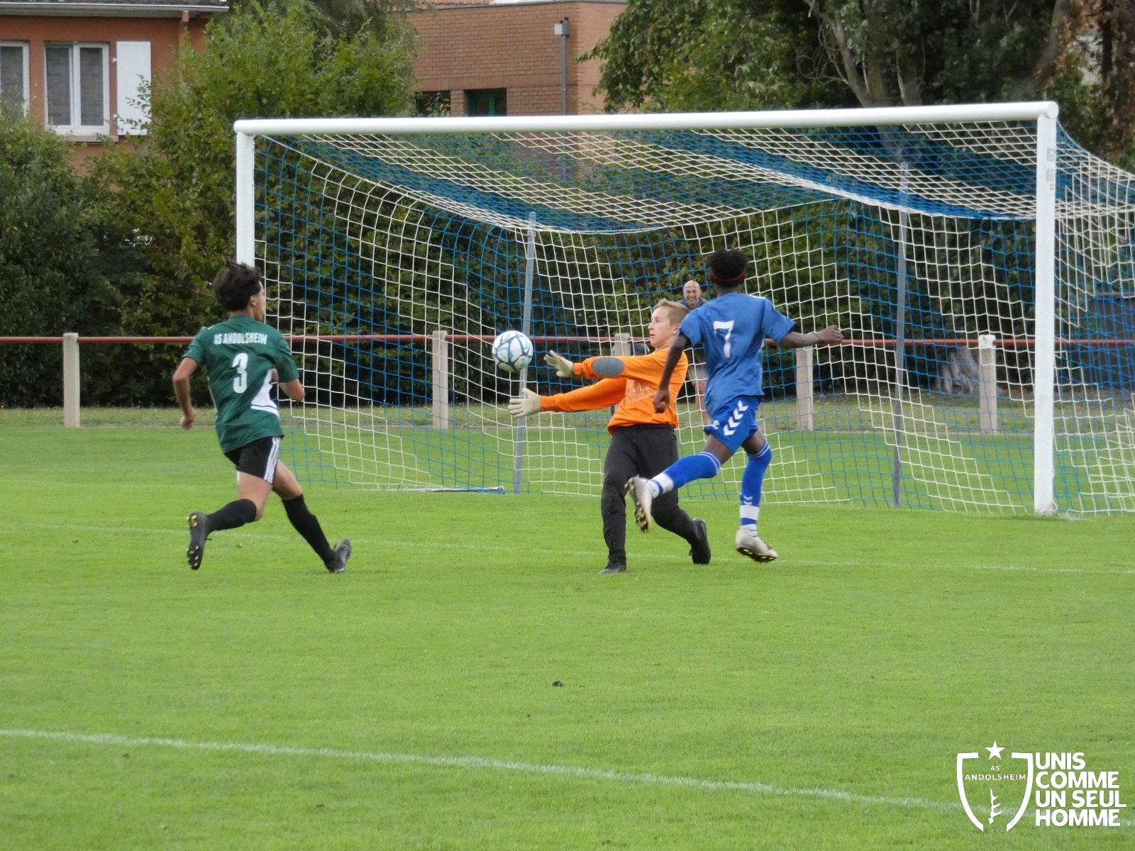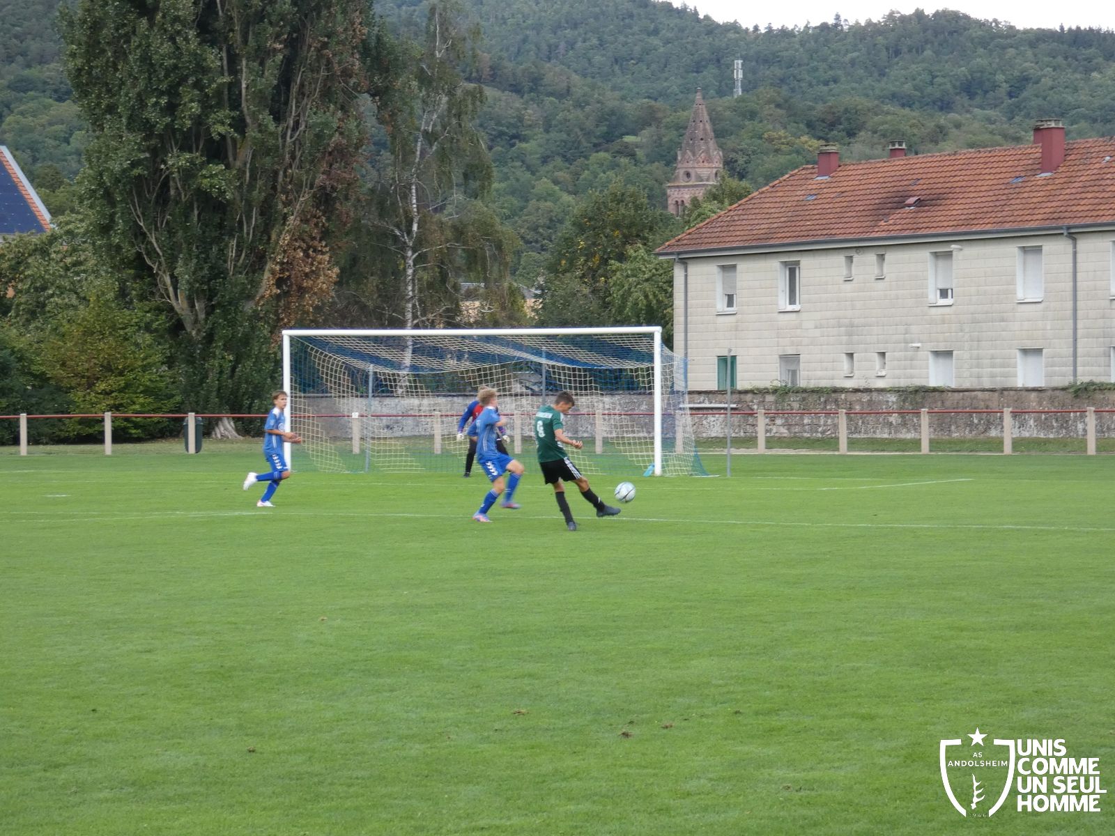 1 partout : on efface tout et on recommence ! Eh bien non ! la maîtrise de la balle est définitivement munstérienne. Evan et Thibaut auront leur chance devant le but mais ne concrétisent pas. Les Bleus profitent de nos passes approximatives et grâce à un pressing haut, ils marqueront par trois fois avant la mi-temps.
