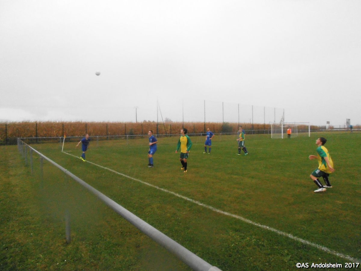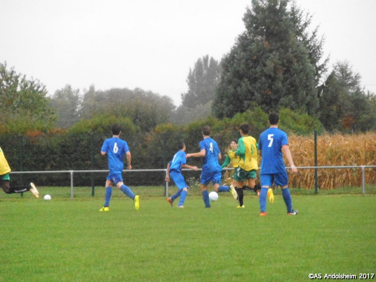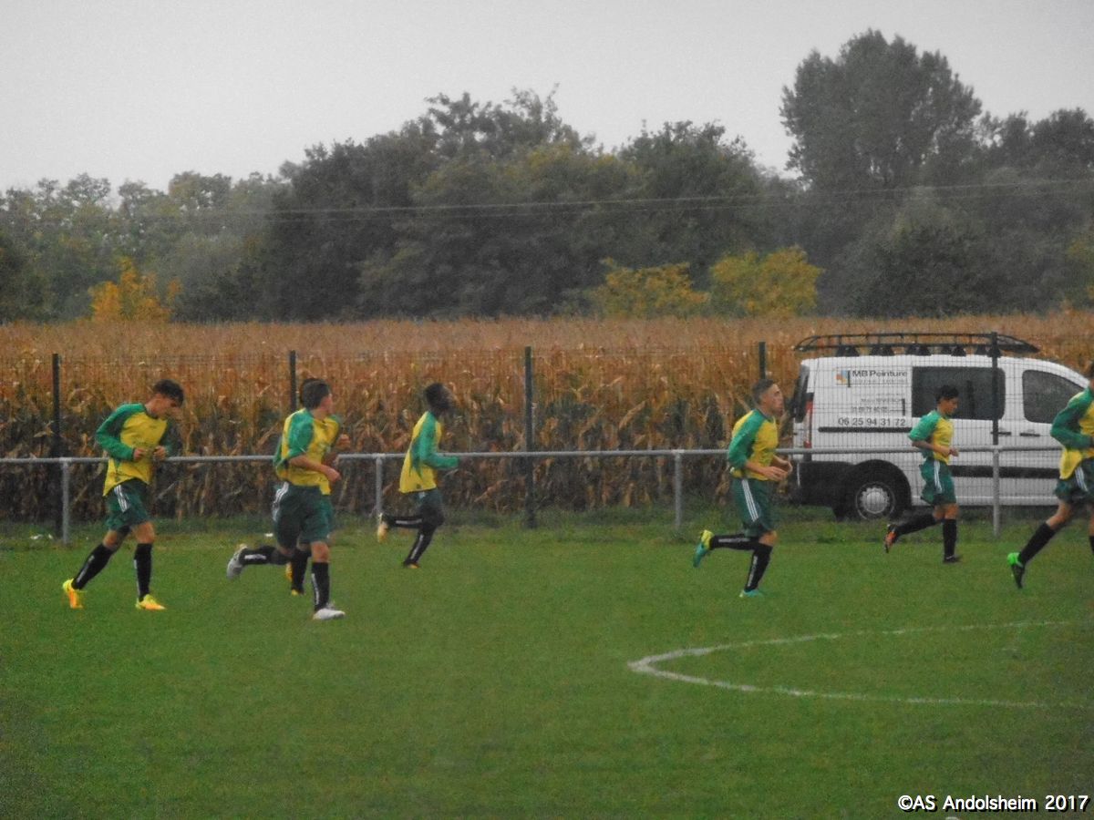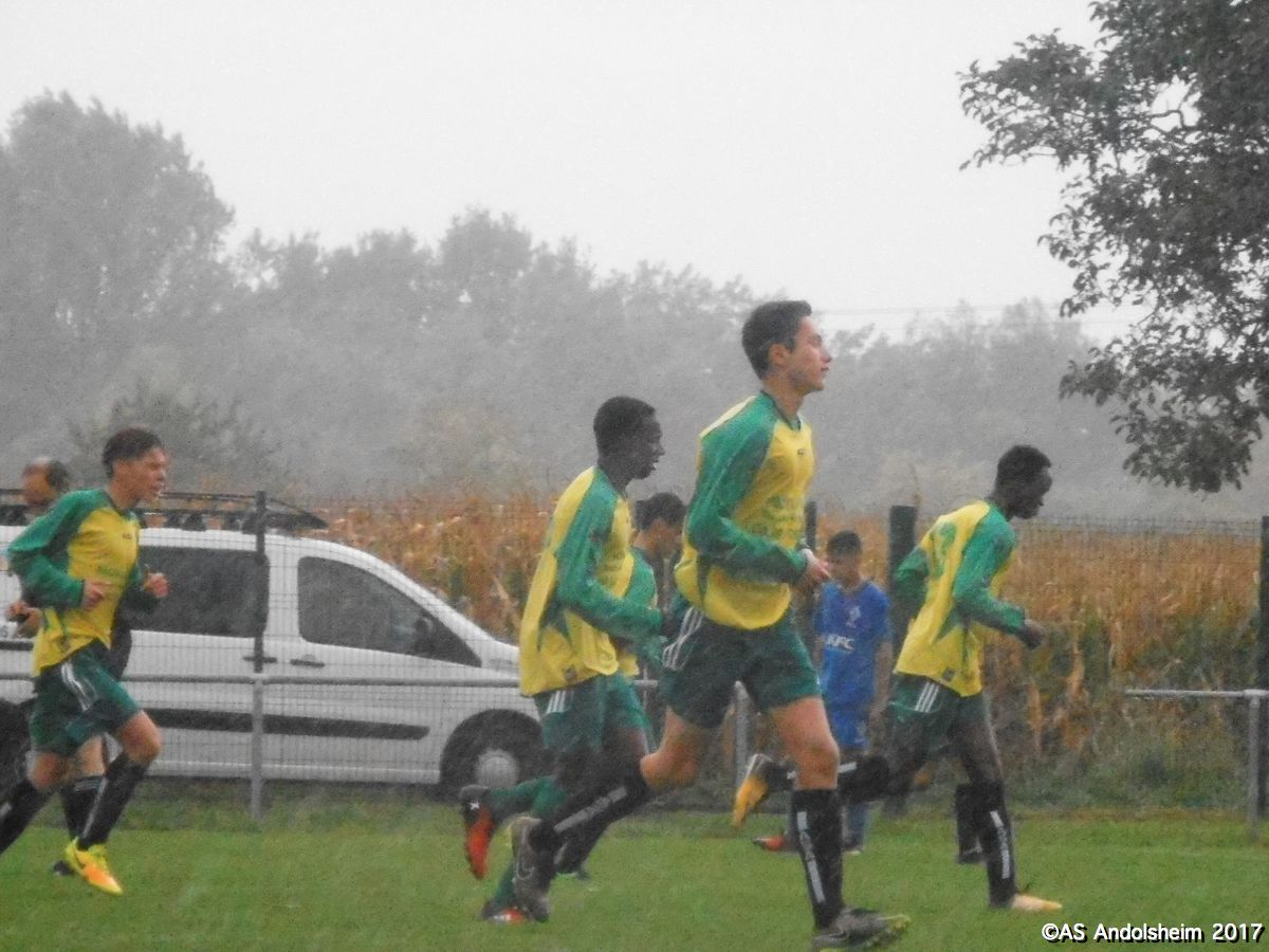 "Nos U18A recevaient les promos de Horbourg-Wihr pour le deuxième tour de la coupe du Crédit Mutuel. Début du match sous quelques gouttes et un fort vent du nord. Progressivement le vent disparait mais la pluie s’intensifie. En clair, ou plutôt en trouble, on se fait rincer durant les 80 dernières minutes du match. Dominant largement, l’ASA marque à la quinzième, puis 7 minutes plus tard, puis encore 7 minutes plus tard , et puis encore 7 minutes plus tard , et ainsi de suite jusqu’à la pause, avec un tempo digne d’un groupe de hard rock australien. Faites le calcul, ça fait 5 à 0 à la pause. En seconde période Horbourg, vexé, veut changer de musique, et y parvient. Les visiteurs marquent. Ando réplique en marquant. Les visiteurs re-marquent. Ando réplique en re-marquant. Score final 7 à 2. Arbitrage officiel, pas de carton, quelques fautes sans gravité. Notons que, sur le plan artistique, Nathan (le plus grand des deux) a tenté une aile de pigeon qui aurait pu provoquer le 8 à 2. Note artistique 10 sur 10. En conférence de presse d’après match, Yanis et Gaétan notent que « le changement de compo consécutif à la blessure de Max a été préjudiciable » et ils ajoutent que « l’équipe s’est laissée aller en seconde période ». Le club des supporters est moins sévère : « deux victoires sur deux matchs en championnat et deux victoires sur deux matchs en coupe, putain on est les meilleurs ouaiche ! » nous déclare un supporter souhaitant conserver l’anonymat. Sur cette déclaration, certes un peu rustre, mais qui résume bien le mois de septembre des U18, nous vous souhaitons un bon weekend !"