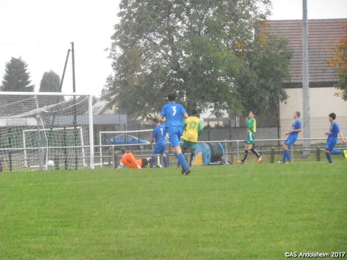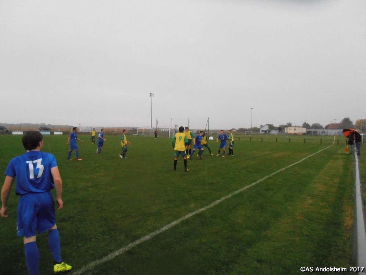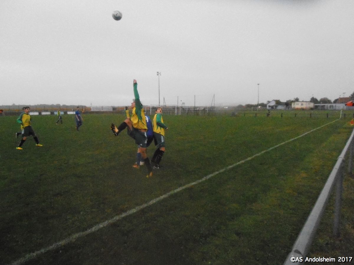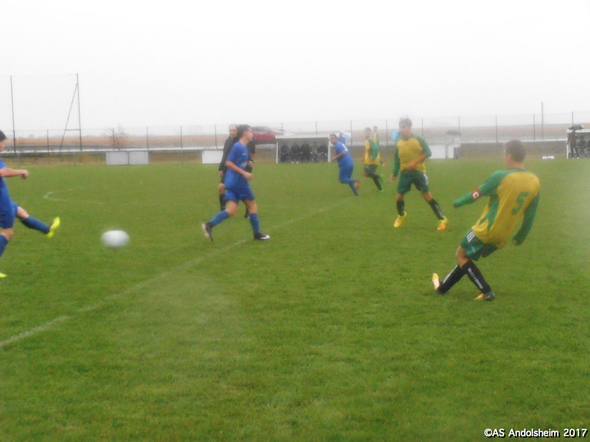 "Nos U18A recevaient les promos de Horbourg-Wihr pour le deuxième tour de la coupe du Crédit Mutuel. Début du match sous quelques gouttes et un fort vent du nord. Progressivement le vent disparait mais la pluie s’intensifie. En clair, ou plutôt en trouble, on se fait rincer durant les 80 dernières minutes du match. Dominant largement, l’ASA marque à la quinzième, puis 7 minutes plus tard, puis encore 7 minutes plus tard , et puis encore 7 minutes plus tard , et ainsi de suite jusqu’à la pause, avec un tempo digne d’un groupe de hard rock australien. Faites le calcul, ça fait 5 à 0 à la pause. En seconde période Horbourg, vexé, veut changer de musique, et y parvient. Les visiteurs marquent. Ando réplique en marquant. Les visiteurs re-marquent. Ando réplique en re-marquant. Score final 7 à 2. Arbitrage officiel, pas de carton, quelques fautes sans gravité. Notons que, sur le plan artistique, Nathan (le plus grand des deux) a tenté une aile de pigeon qui aurait pu provoquer le 8 à 2. Note artistique 10 sur 10. En conférence de presse d’après match, Yanis et Gaétan notent que « le changement de compo consécutif à la blessure de Max a été préjudiciable » et ils ajoutent que « l’équipe s’est laissée aller en seconde période ». Le club des supporters est moins sévère : « deux victoires sur deux matchs en championnat et deux victoires sur deux matchs en coupe, putain on est les meilleurs ouaiche ! » nous déclare un supporter souhaitant conserver l’anonymat. Sur cette déclaration, certes un peu rustre, mais qui résume bien le mois de septembre des U18, nous vous souhaitons un bon weekend !"