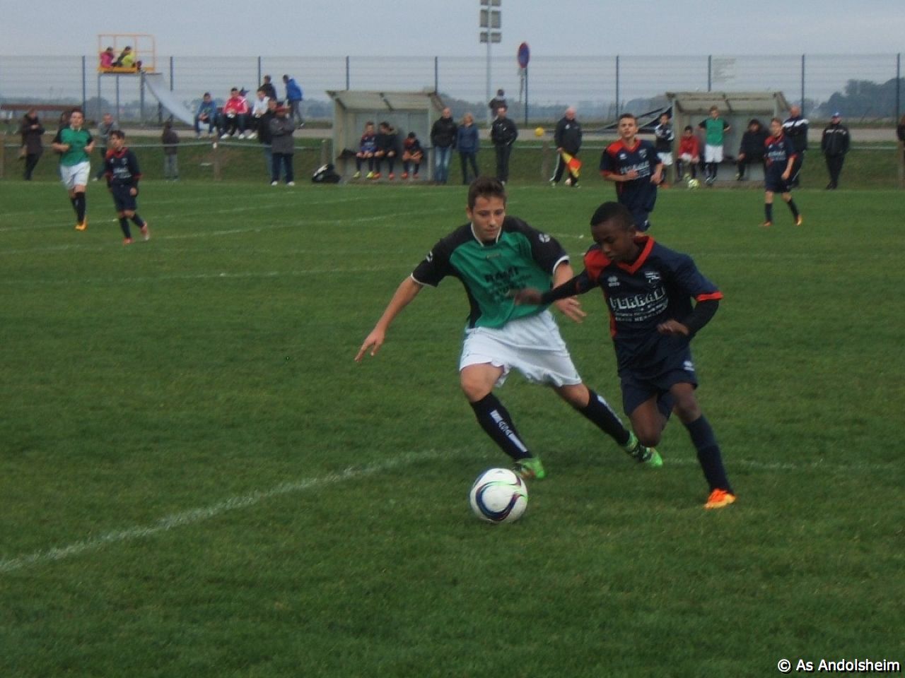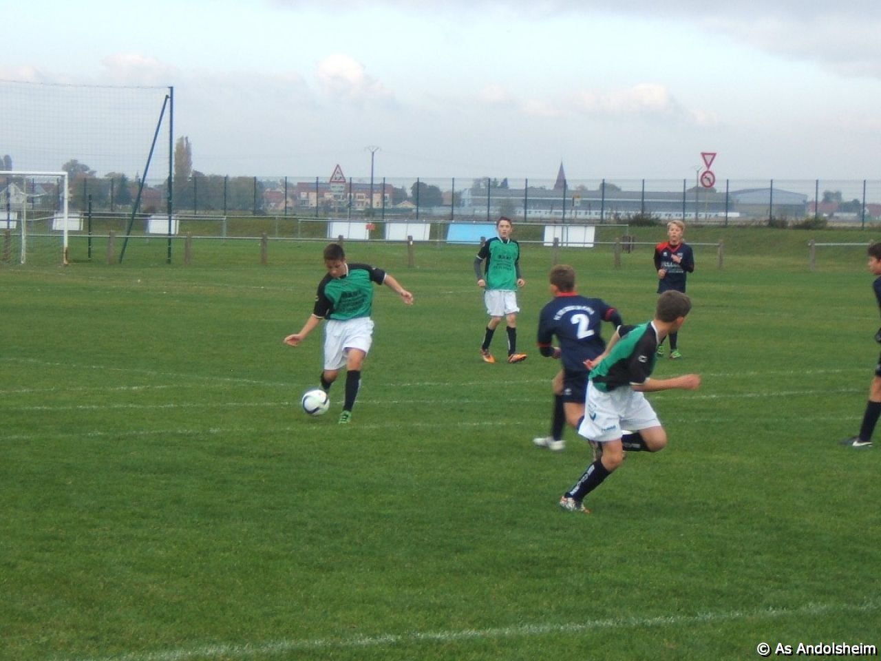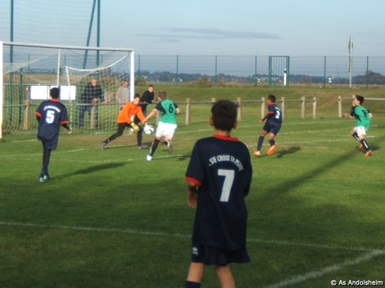 "En ce samedi 29 nos U15 2 recevaient Ste Croix en Plaine en amical. Menés 1 à 0 dès la vingtième, contre le cours du jeu, nos garçons écoutent les consignes à la pause. En seconde période ils appliquent ces instructions et marquent vers les 50 ème, 60 ème et 75 ème minute , sans bien sur compter de nombreuses frappes sur les poteaux. Bref, 3 à 1 pour Ando, et coup de sifflet final sifflé par Jean Claude. Arbitrage officiel pour un match amical, et ça le valait bien. En résumé, à domicile, amical, et à l’avantage de l’ASA , c’est un triple A pour Andolsheim U15 !De notre bureau de presse permanent au stade de l’Ill"