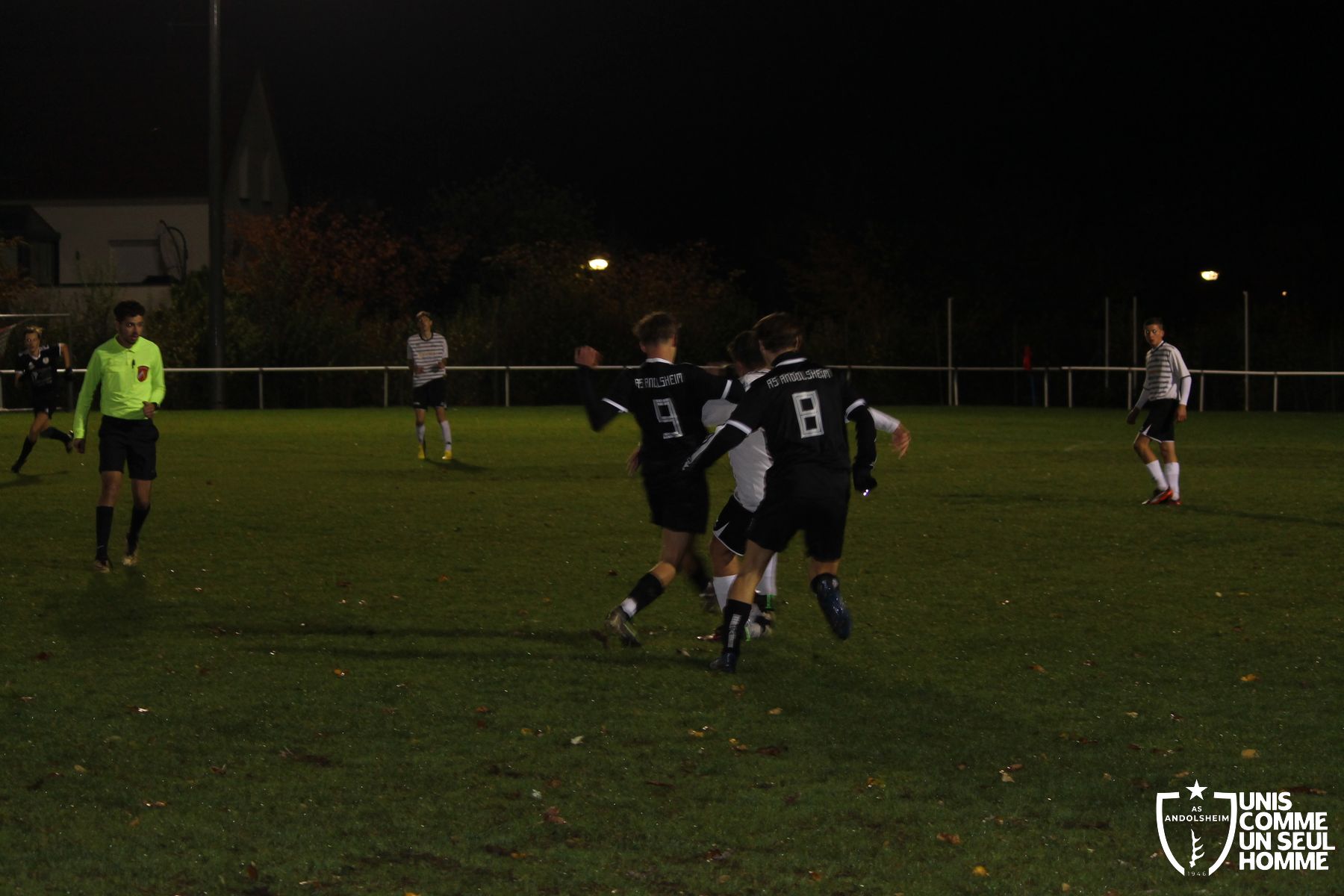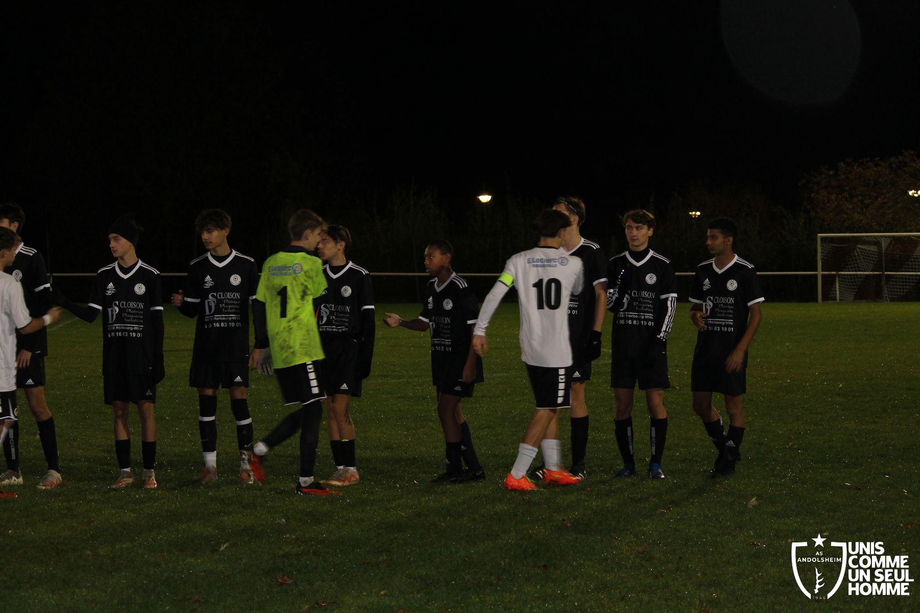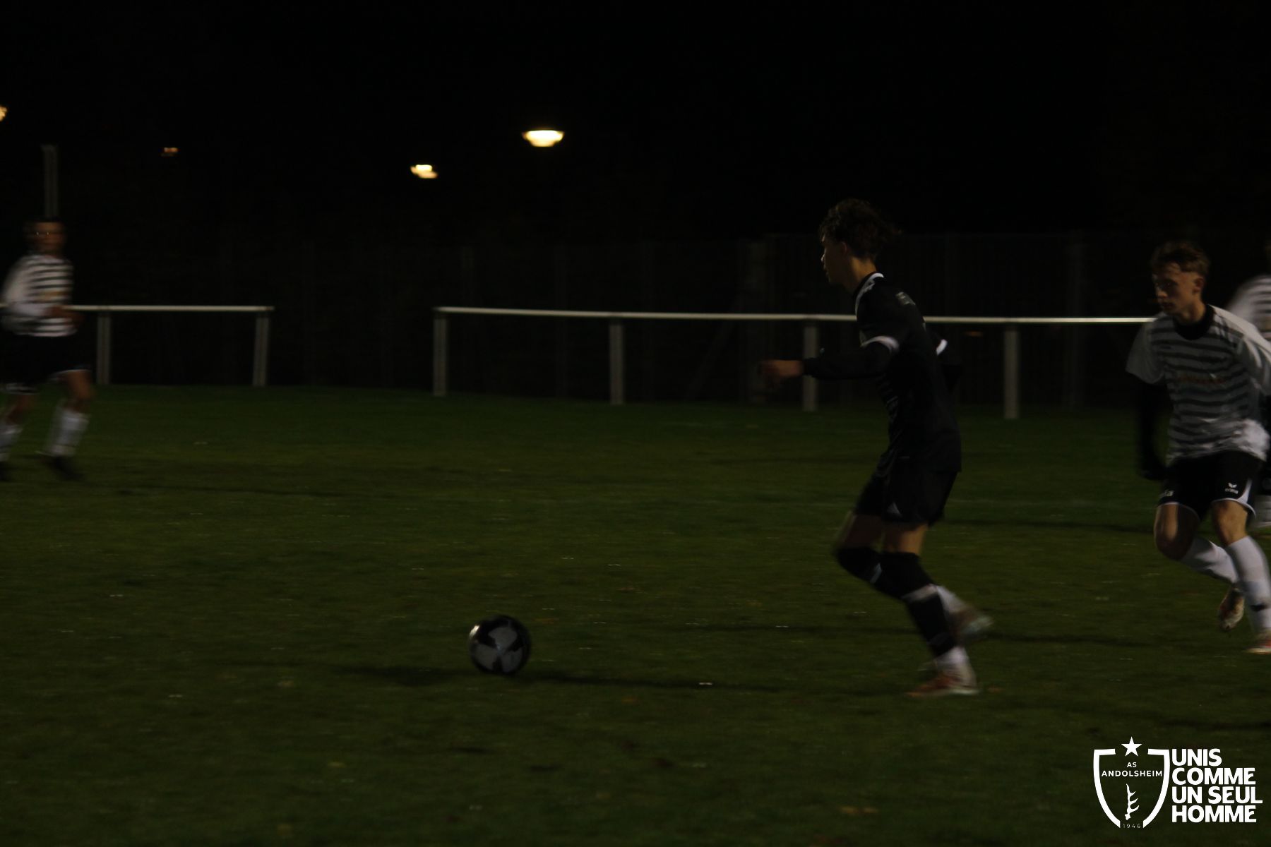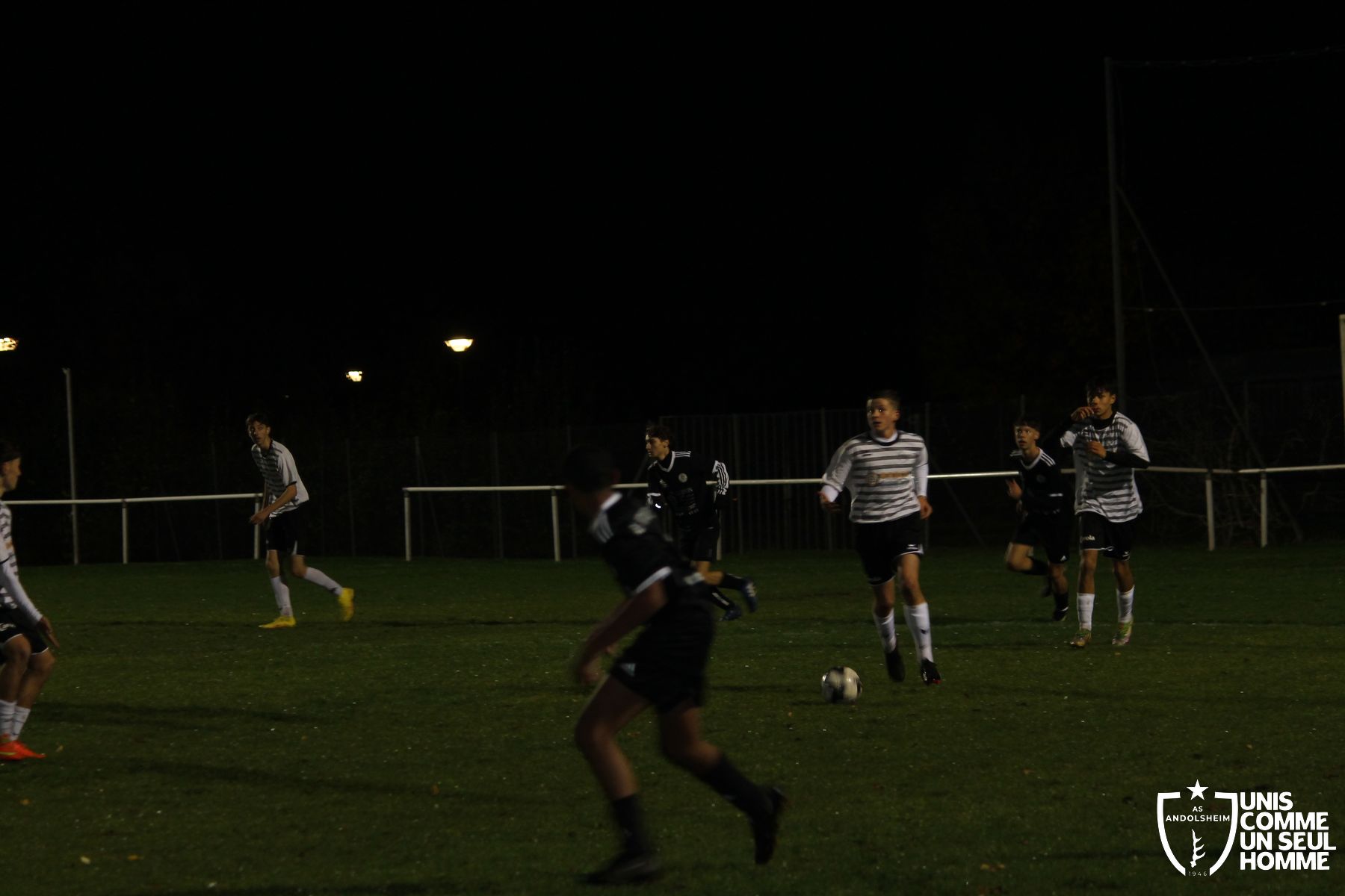Mais pour revenir au foot, une première mi-temps aboutie avec nos jeunes agressifs sur la phase offensive avec une multitude de duels gagnés et des rushes percutants par Côme ou Kaïs notamment. Il nous a manqué la même agressivité sur un plan défensif ce qui nous aurait certainement permis d'être devant au score à la pause.