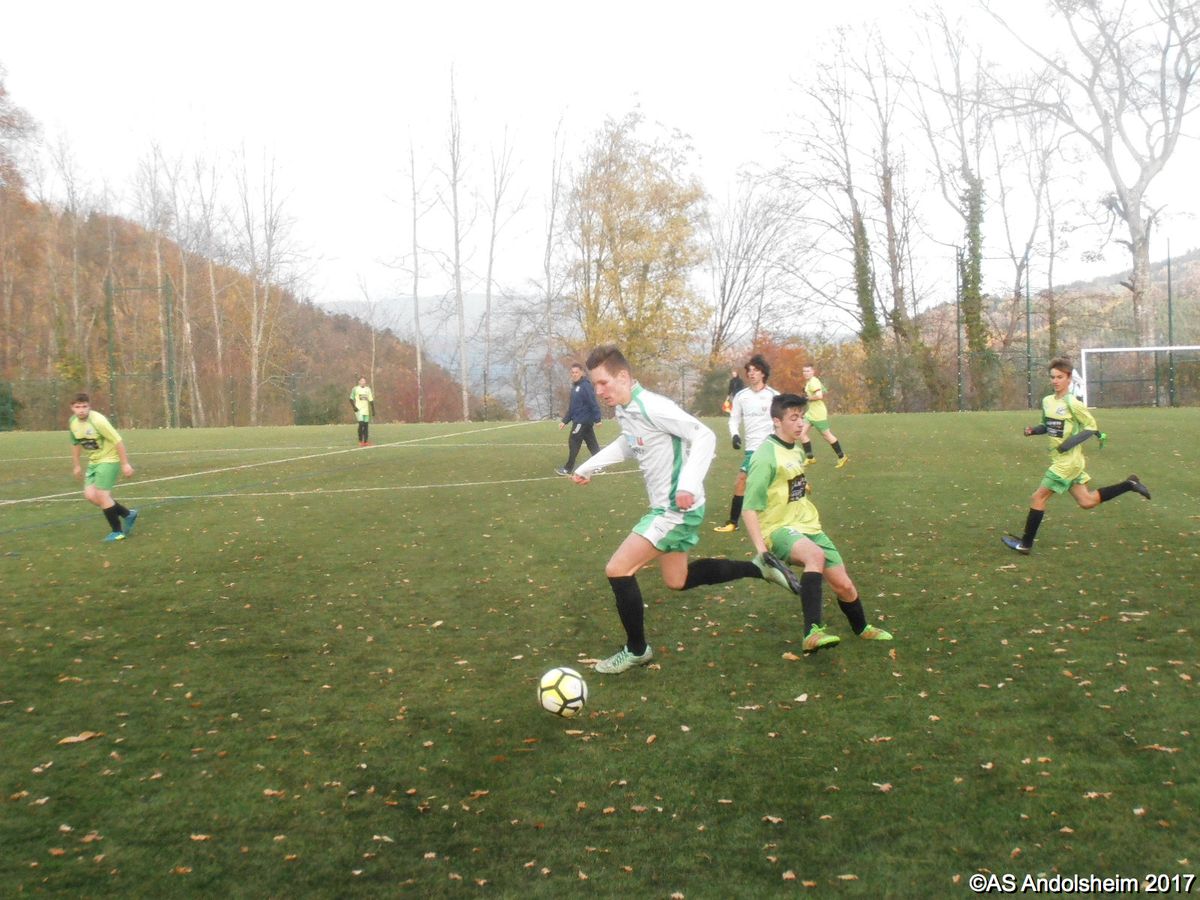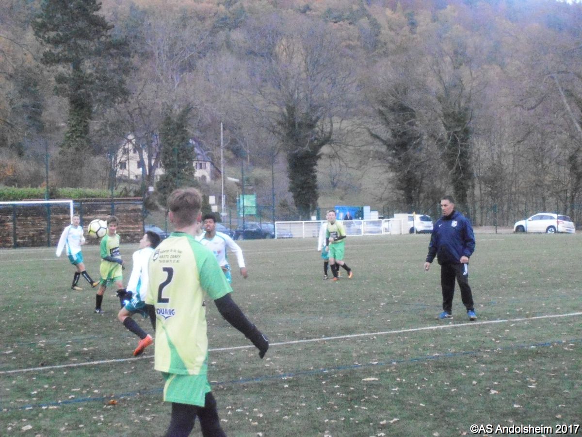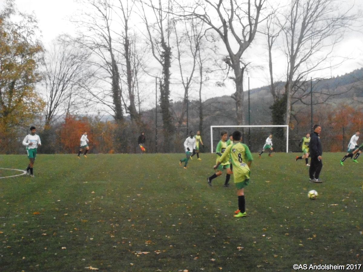 "Sur les hauteurs d’Orbey et sur un terrain synthétique, froid, humide, et même carrément nocturne dans le dernier quart d’heure, nos U18 se sont imposés face à Canton vert. Sur le plus petit des scores. Alors, évidemment, un à zéro face à une formation qui habite à la fois la montagne et la fin du classement, ce n'est pas un exploit. Mais chacun son métier, nous laisserons donc Yannis et Gaetan remettre les pendules à l'heure au prochain entraînement. Pour ce qui nous concerne, nous retiendrons que l'Asa a tout de même réussi beaucoup plus d'actions chaudes que le club visiteur. Nous retiendrons également l'accueil très sympathique des bénévoles d'Orbey. Nous retiendrons enfin les trois points et le match nul de Sainte croix en plaine qui nous suit maintenant à cinq points de distance. On va pas se plaindre en plus ? Alors bon week-end à tous !"