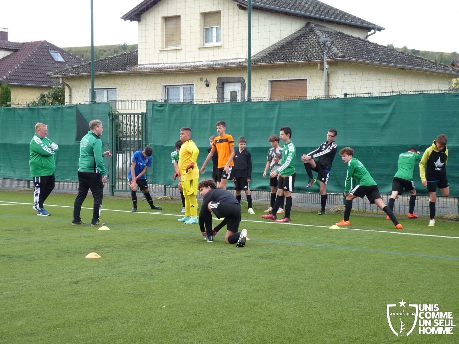 Marc recadre sa troupe et insiste sur le placement lors des coups de pied arrêté.