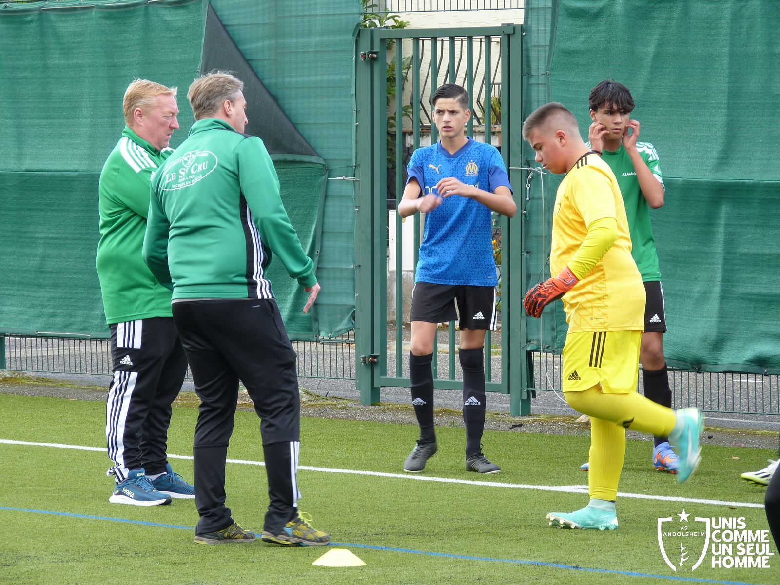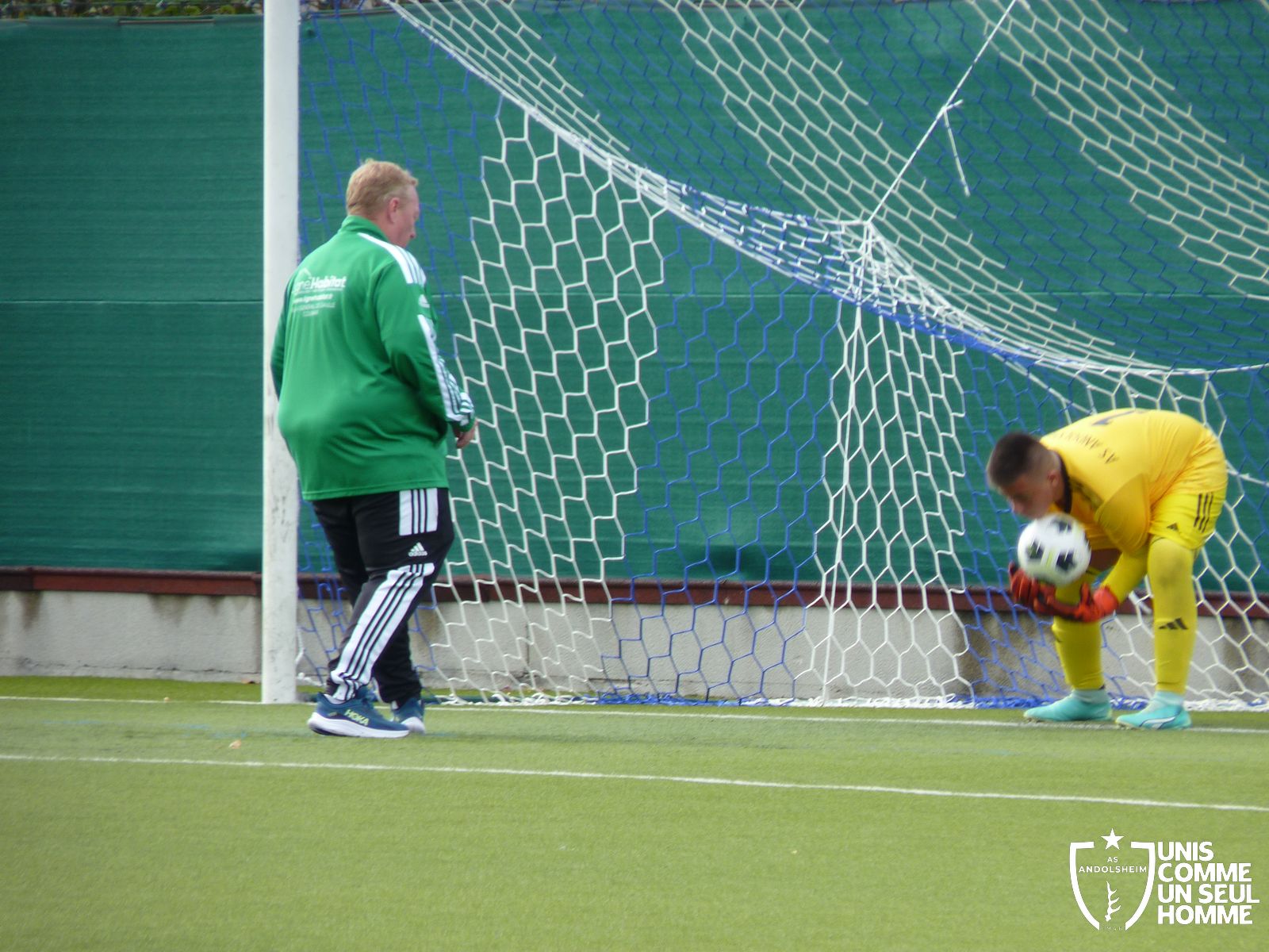 Louis, le portier du jour, donne les consignes de placements de sa défense qui n'écoute pas les consignes, Bennwihr égalise, 1 à 1.