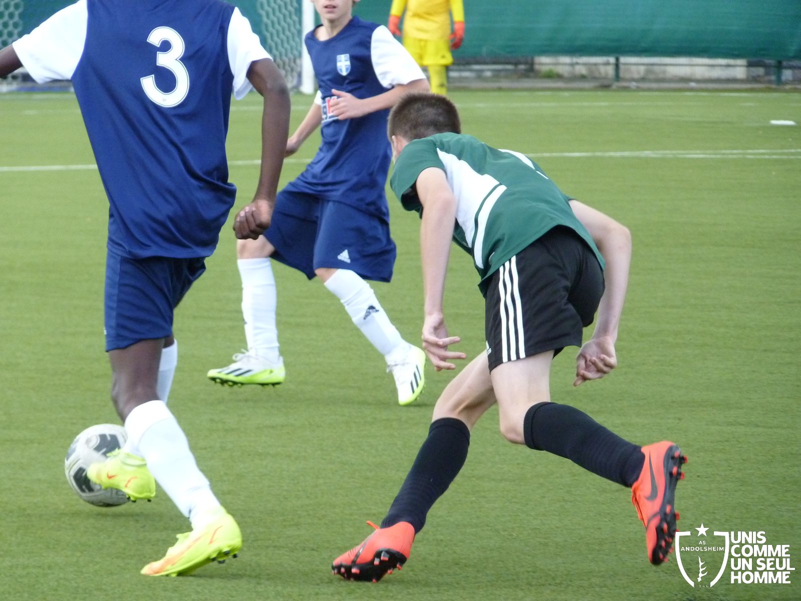 Sur une attaque de Bennwihr, Evan récupère le ballon et fait un raid solidaire jusqu'au but adverse et aggrave le score, 1 à 3 à la pause.