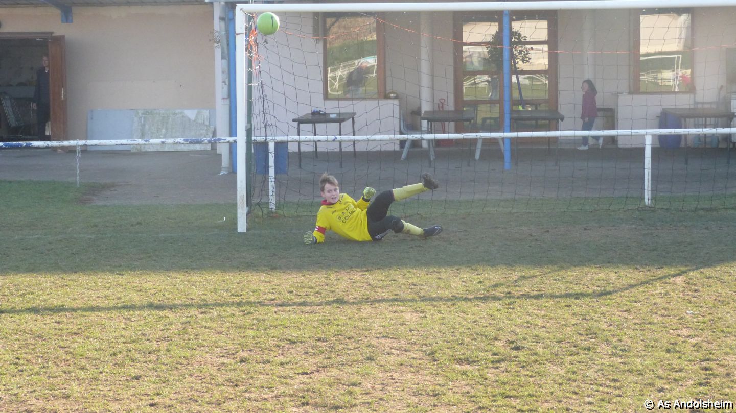 0/1 pour les titi boys, le bal était ouvert OUF finit les poteaux et autres,ien que la possession soit à 80/85% pour Ando et des occasion à GOGO rien ne rentrait... les poteaux ont eu plus de frissons par les nos tirs que par la température , et si on calculait le score aux corner on en serait à 15/2 pour dire !!!!!!!!!!!!!!!!!!!!!! on arrivé au terme du 3éme quart temps, Horbourg sur une des rares occasions et un flottement de nos arrières nous surprend et égalise 1/1, bien que je sois rarement à critiquer l’arbitrage là si on revient juste avant l’action deux mains n’avaient pas été sifflé et nos arrières pensaient qu’il y avait faute mais NON on ne dis rien aux jugements de l’arbitre mais quand même ,le jeu continua et à 1/1 ,SCORE ne reflétant nullement la rencontre les TITI BOY’S repartir à l’attaque et quand soudain d’une frappe de Matt le ballon vient heurter un très bon gardien adverse (qui est une fille bravo à elle ) et d’une rage de renard de surface notre Hector tira et… !!!!!!!!!!!!!!!!!!!!!