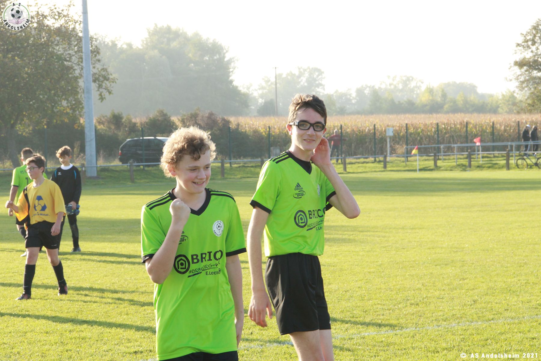 C'est sous un beau soleil d'Automne que l'entame de match commence avec une nette et belle domination des locaux. Beaucoup d'occasions pendant les 20 premières minutes, mais pas de but !!! Au contraire c'est même les visiteurs sur leur première incursion qui obtiennent un pénalty sur une main dans la surface.... Pénalty transformé, 0-1 pour les visiteurs. Le jeu se stabilise au milieu du terrain. A force de pousser les locaux obtiennent un pénalty par Kenan qui partait seul au but. Pénalty transformé par Gabriel. La mi-temps sonne sur le score de 1 à 1. La deuxième mi-temps reprend comme la première et suite à une superbe construction et d'une magnifique passe de Gabriel pour Kénan ,celui-ci part tout seul au but pour inscrire le 2ème butttttttt . Les occasions se multiplient des deux côtés , mais personne n'arrive à mettre la balle au fond. La fin devient de plus en plus dure . Coup franc bien placé dans l'axe mais le tir de Gabriel passe juste à côté du poteau droit. L'arbitre siffle la fin du match avec une belle victoire ...ça fait plaisir !!!!