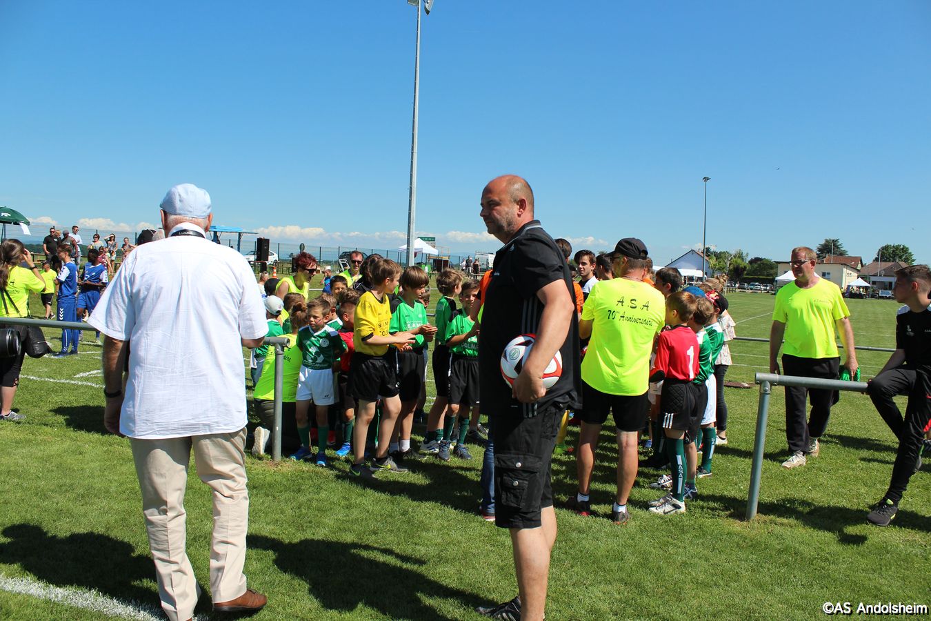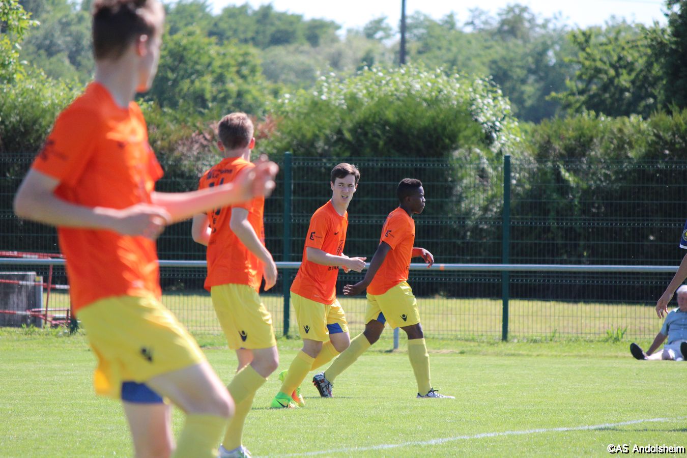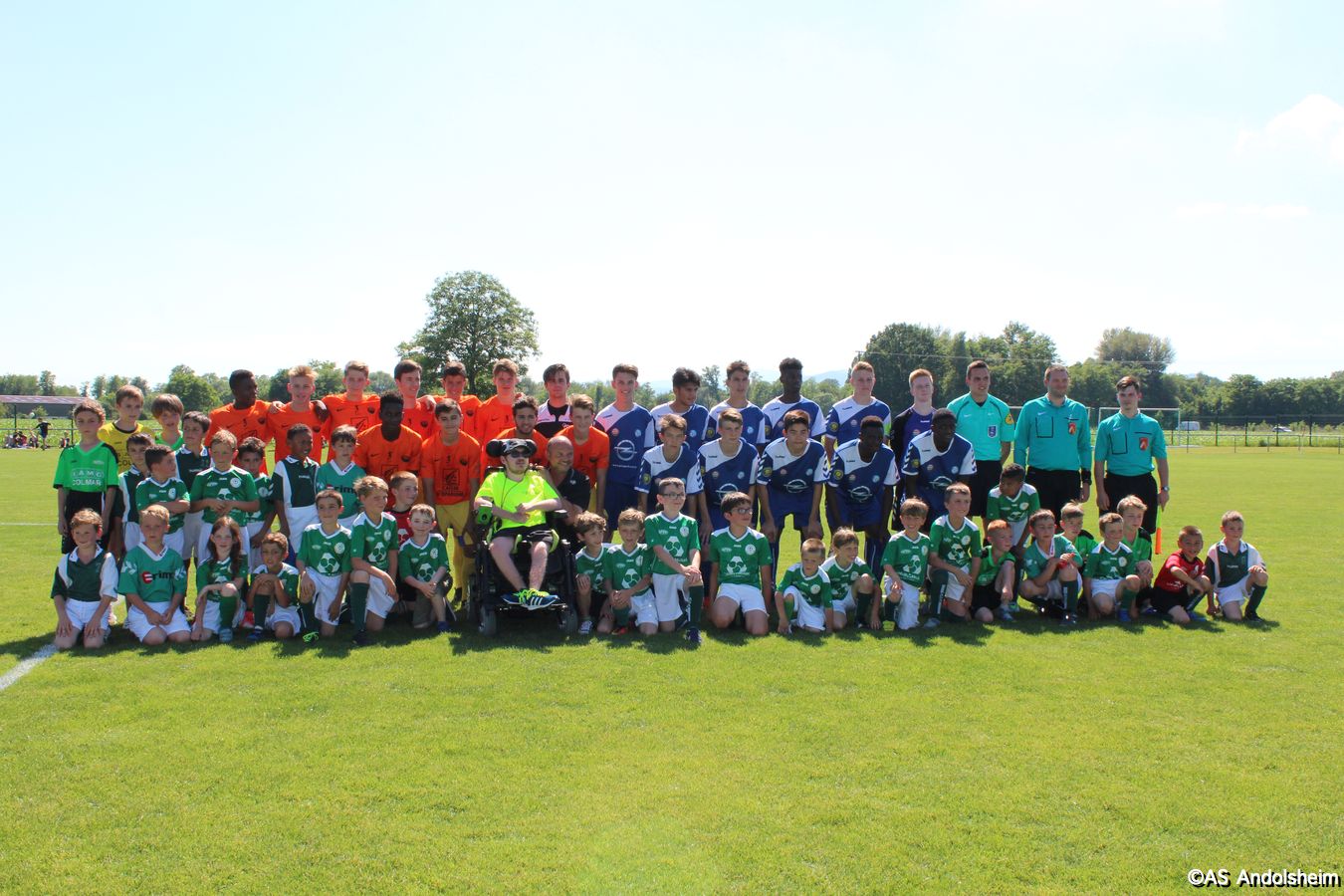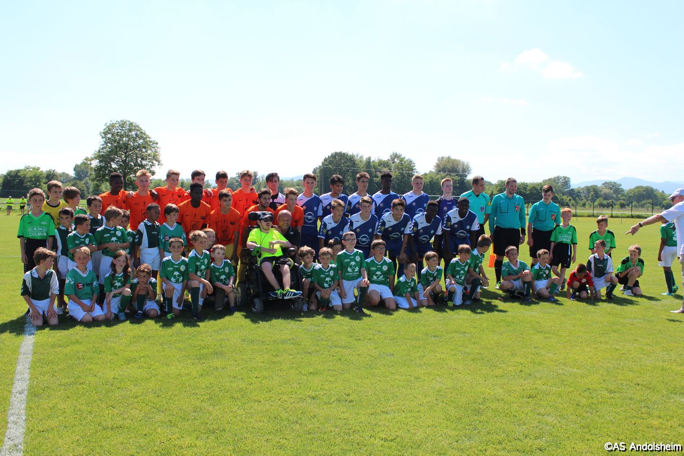 Point d'orgue sportif de ce 70 eme anniversaire sur lequel nous reviendrons très prochainement, l'AS Andolsheim accueillait une rencontre de U 17 nationaux opposait les U 17 du Racing au U 17 du SAS d'Epinal ... sous un soleil de plomb et un public nombreux, les spinaliens ont dominés les débats par une large victoire 4 à 0