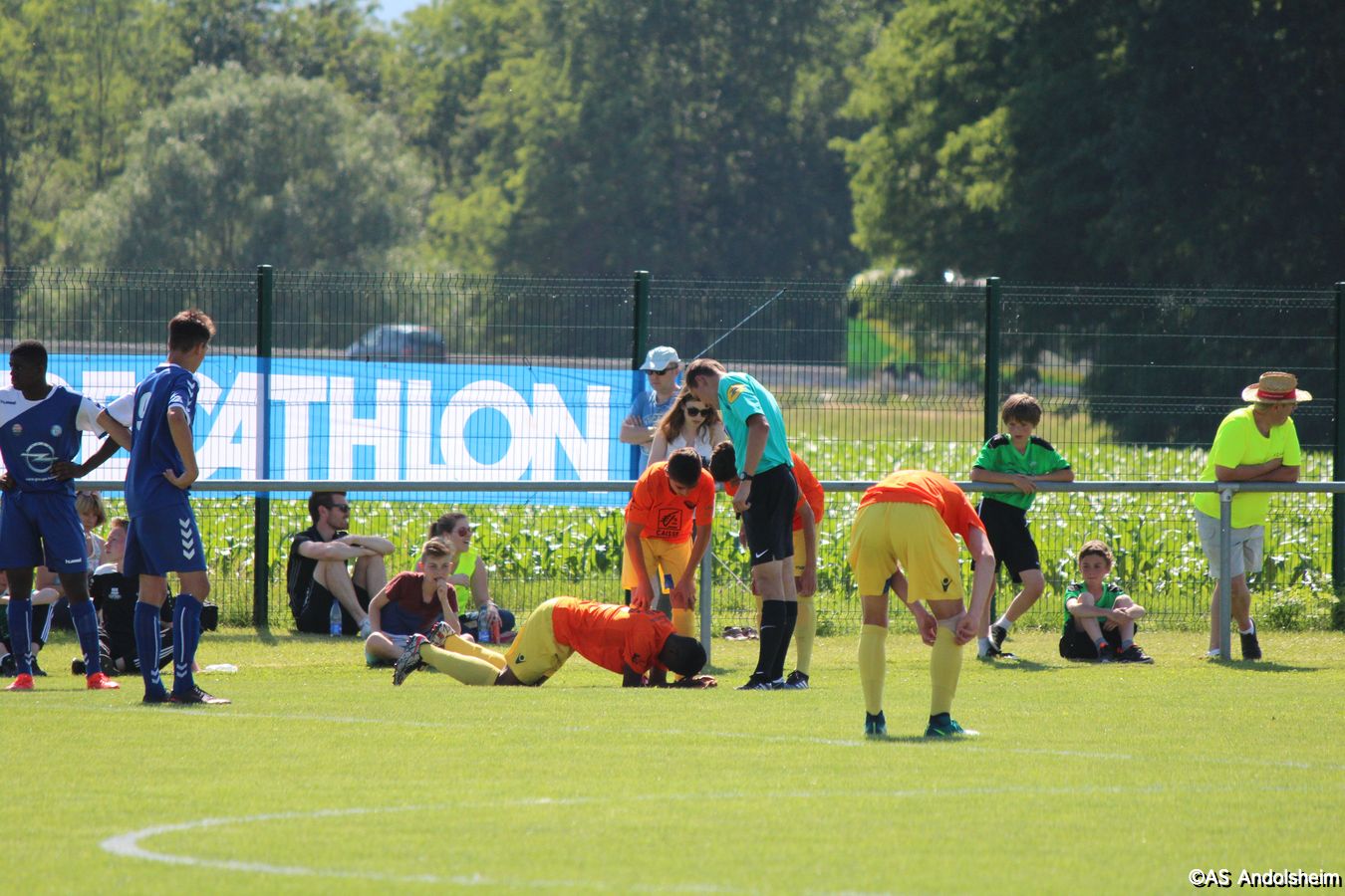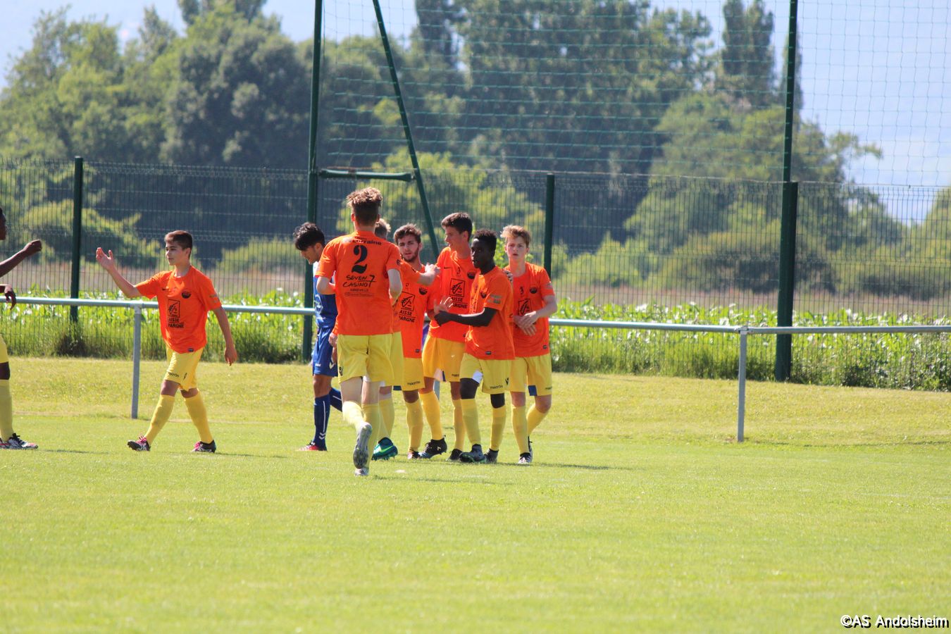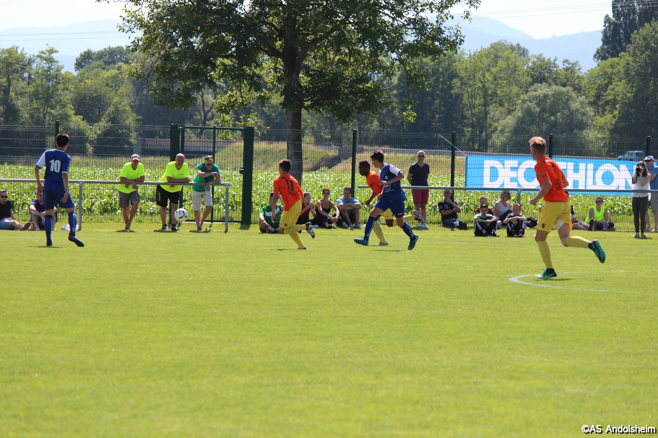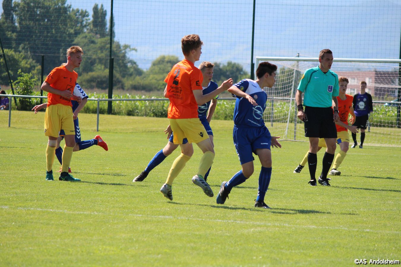 Point d'orgue sportif de ce 70 eme anniversaire sur lequel nous reviendrons très prochainement, l'AS Andolsheim accueillait une rencontre de U 17 nationaux opposait les U 17 du Racing au U 17 du SAS d'Epinal ... sous un soleil de plomb et un public nombreux, les spinaliens ont dominés les débats par une large victoire 4 à 0