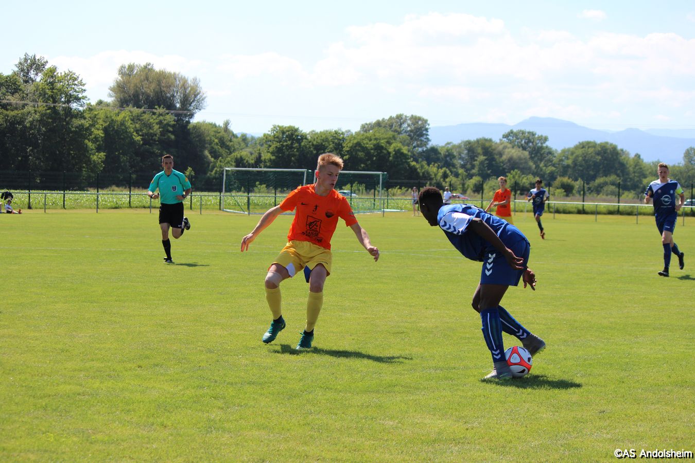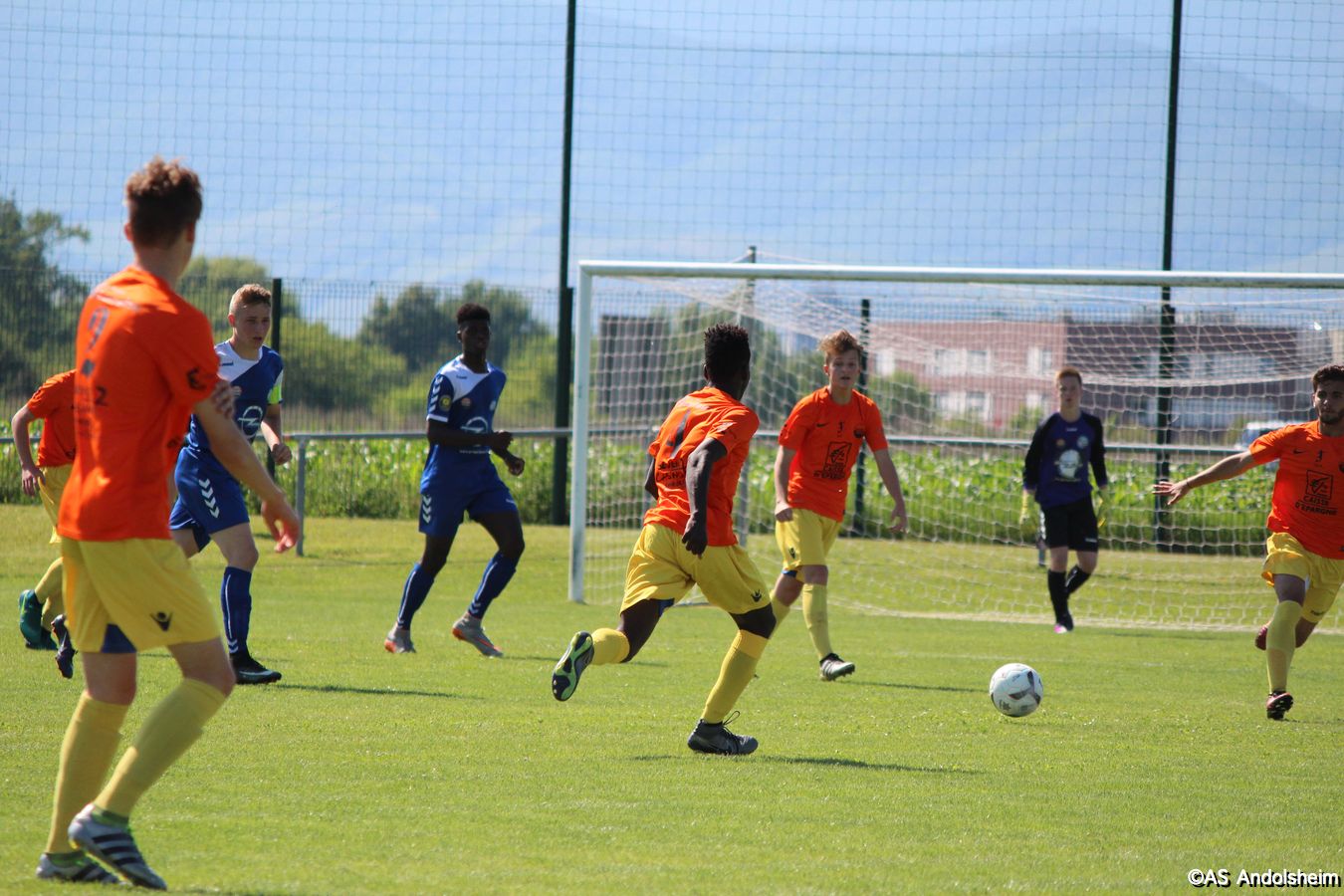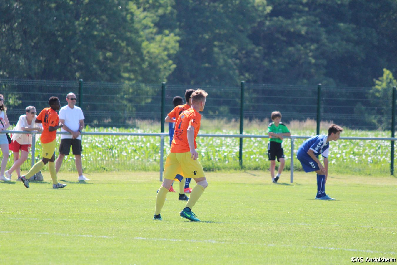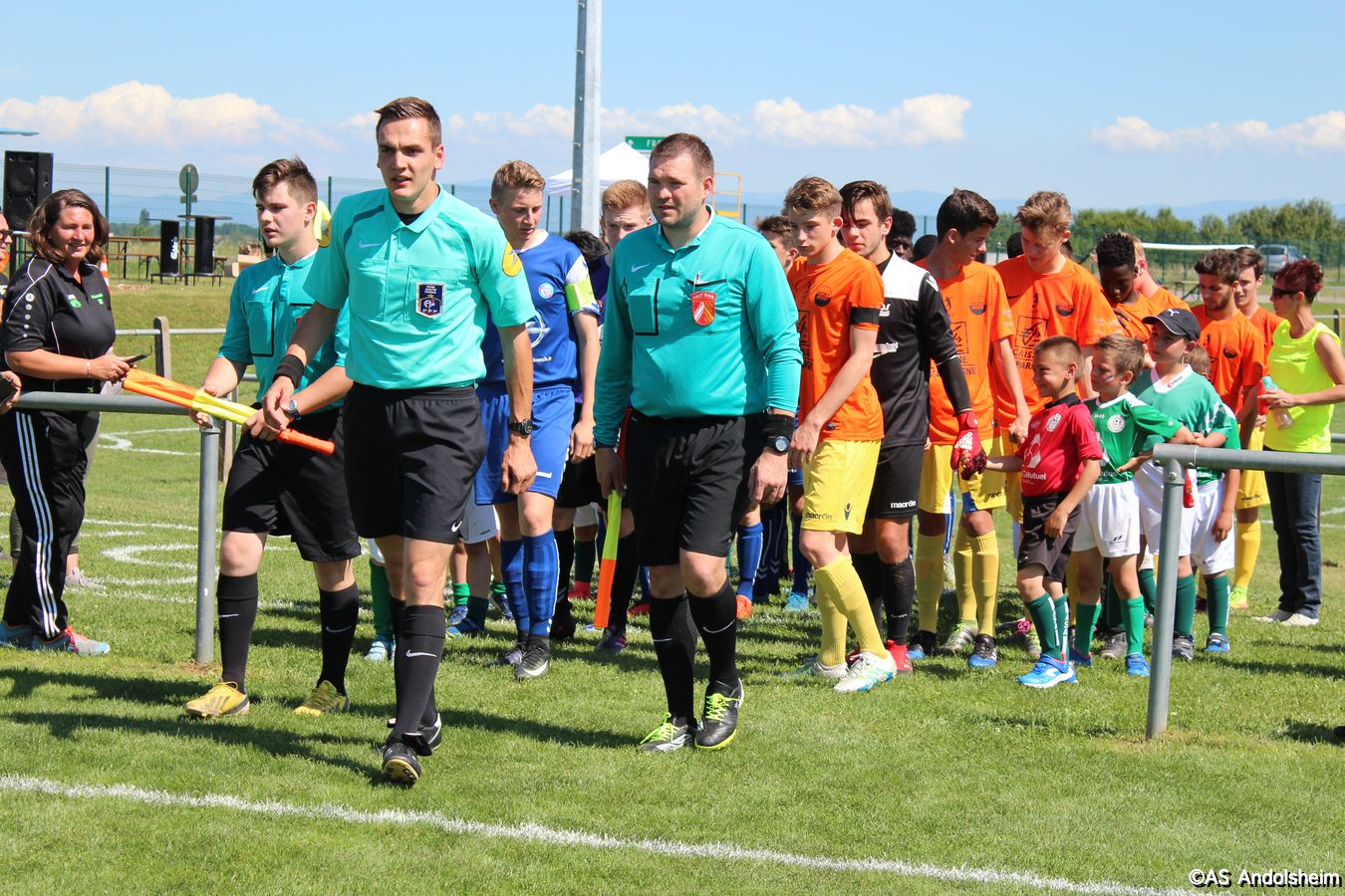 Point d'orgue sportif de ce 70 eme anniversaire sur lequel nous reviendrons très prochainement, l'AS Andolsheim accueillait une rencontre de U 17 nationaux opposait les U 17 du Racing au U 17 du SAS d'Epinal ... sous un soleil de plomb et un public nombreux, les spinaliens ont dominés les débats par une large victoire 4 à 0
