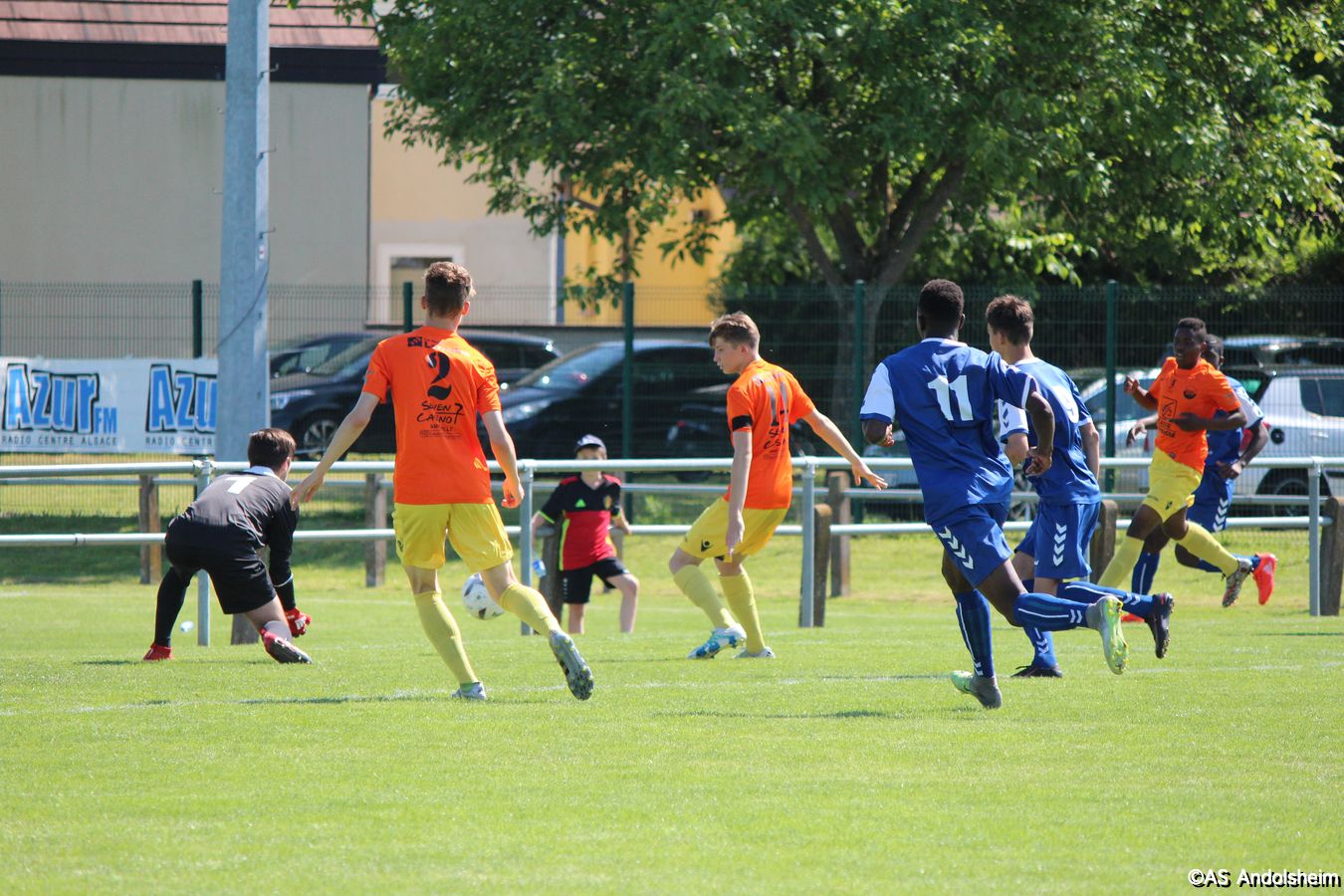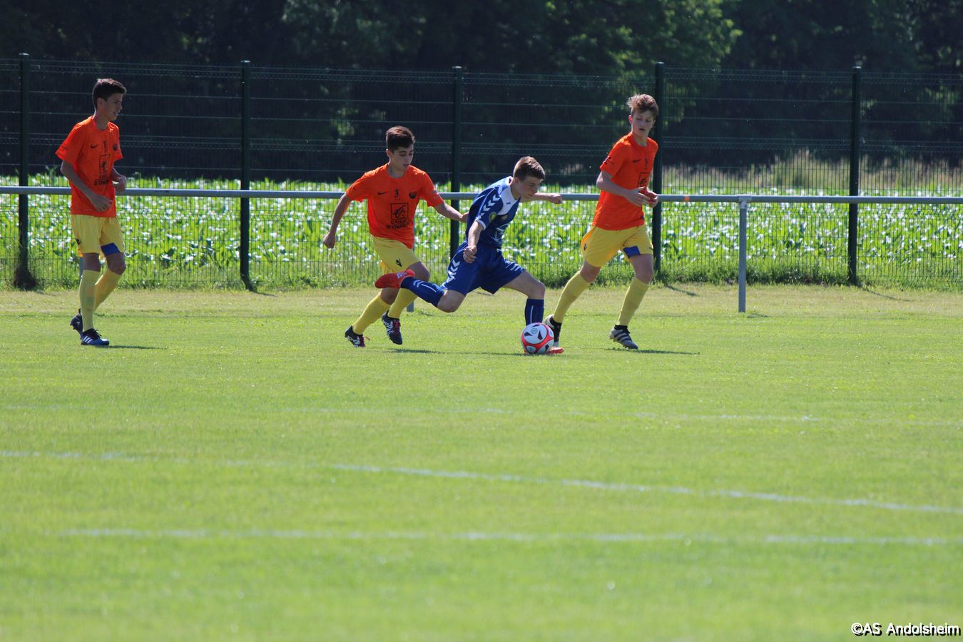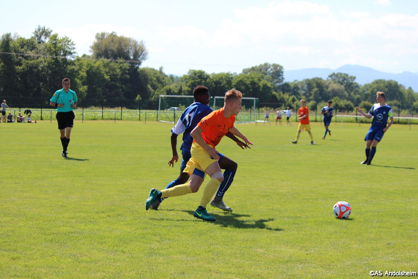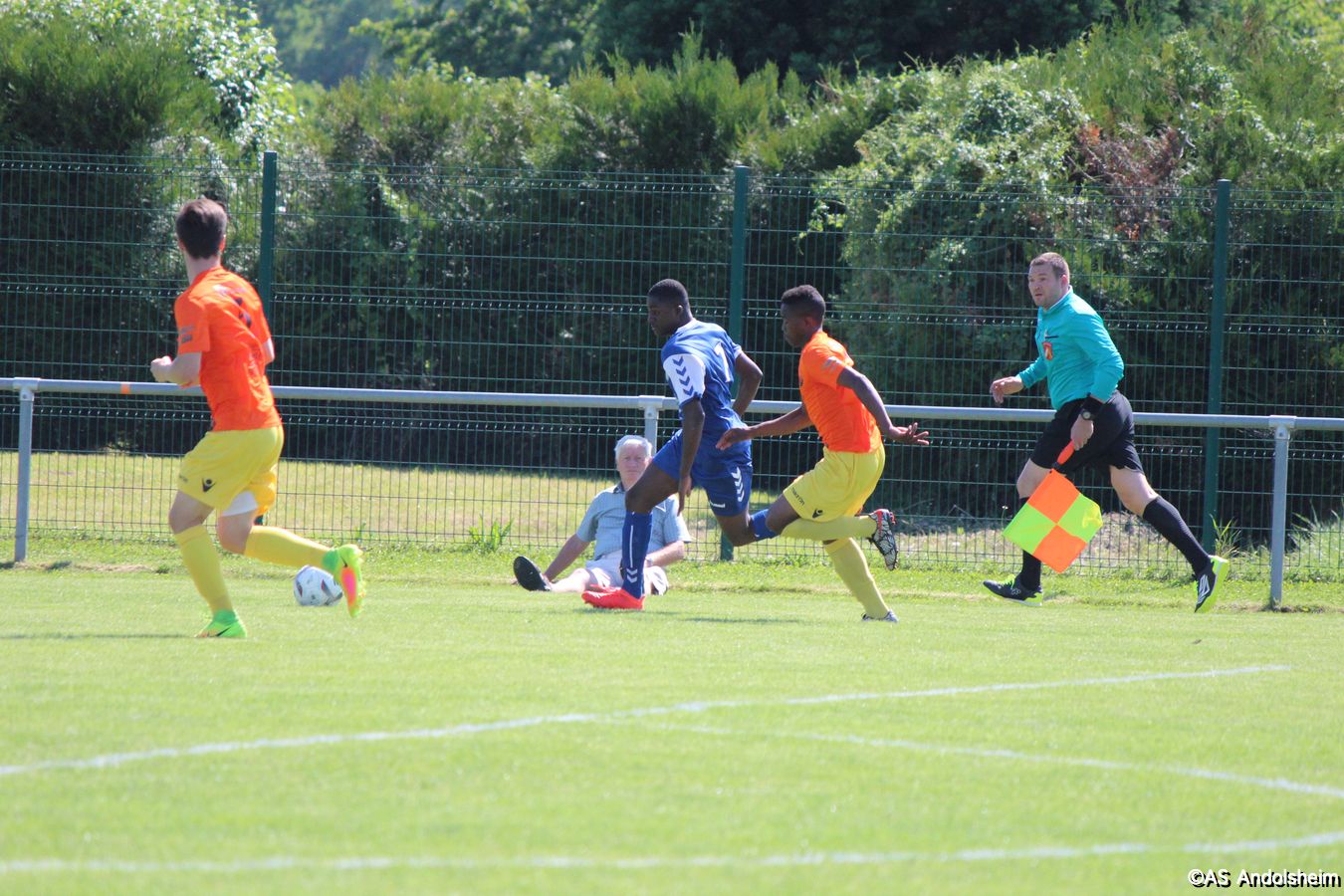 Point d'orgue sportif de ce 70 eme anniversaire sur lequel nous reviendrons très prochainement, l'AS Andolsheim accueillait une rencontre de U 17 nationaux opposait les U 17 du Racing au U 17 du SAS d'Epinal ... sous un soleil de plomb et un public nombreux, les spinaliens ont dominés les débats par une large victoire 4 à 0
