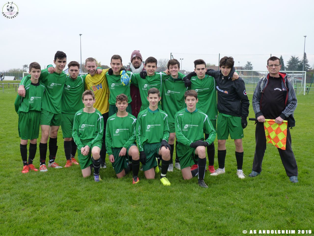 Le score finale est de 4 - 0 pour l'As Andolsheim qui aurait pu aggraver le score à plusieurs reprises, mais beaucoup trop d'erreur et trop maladroit devant le but.