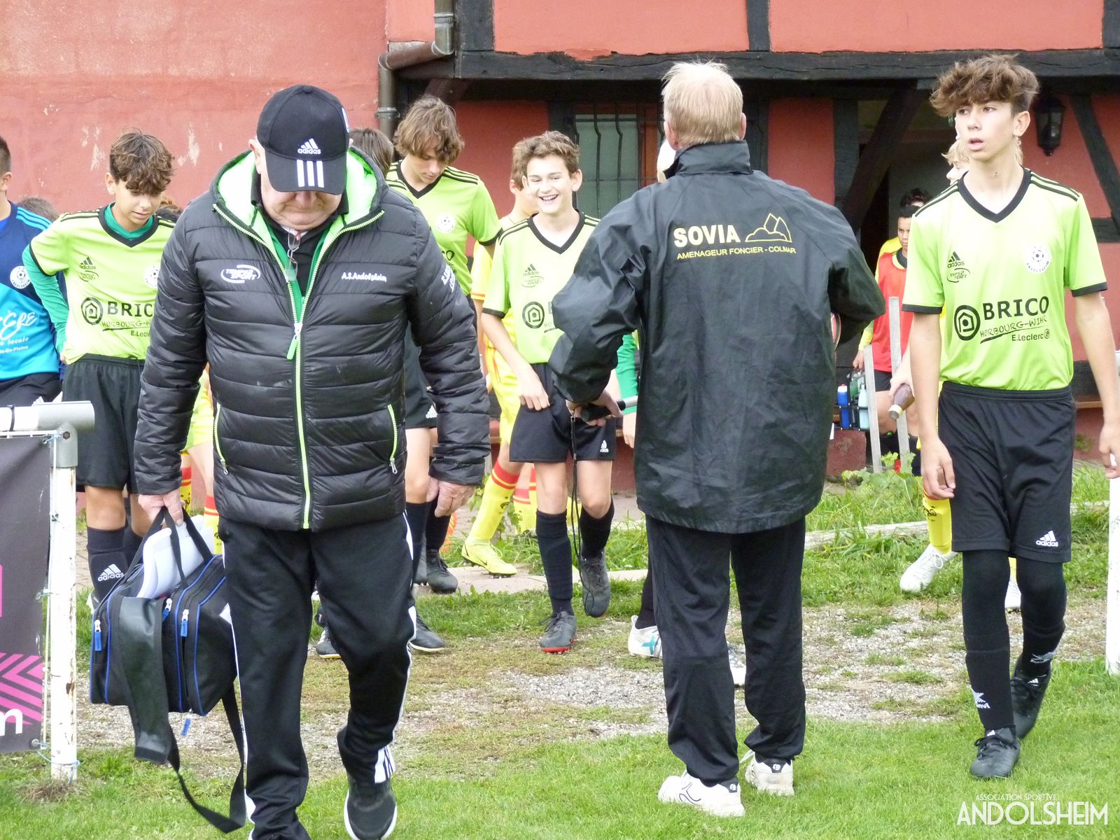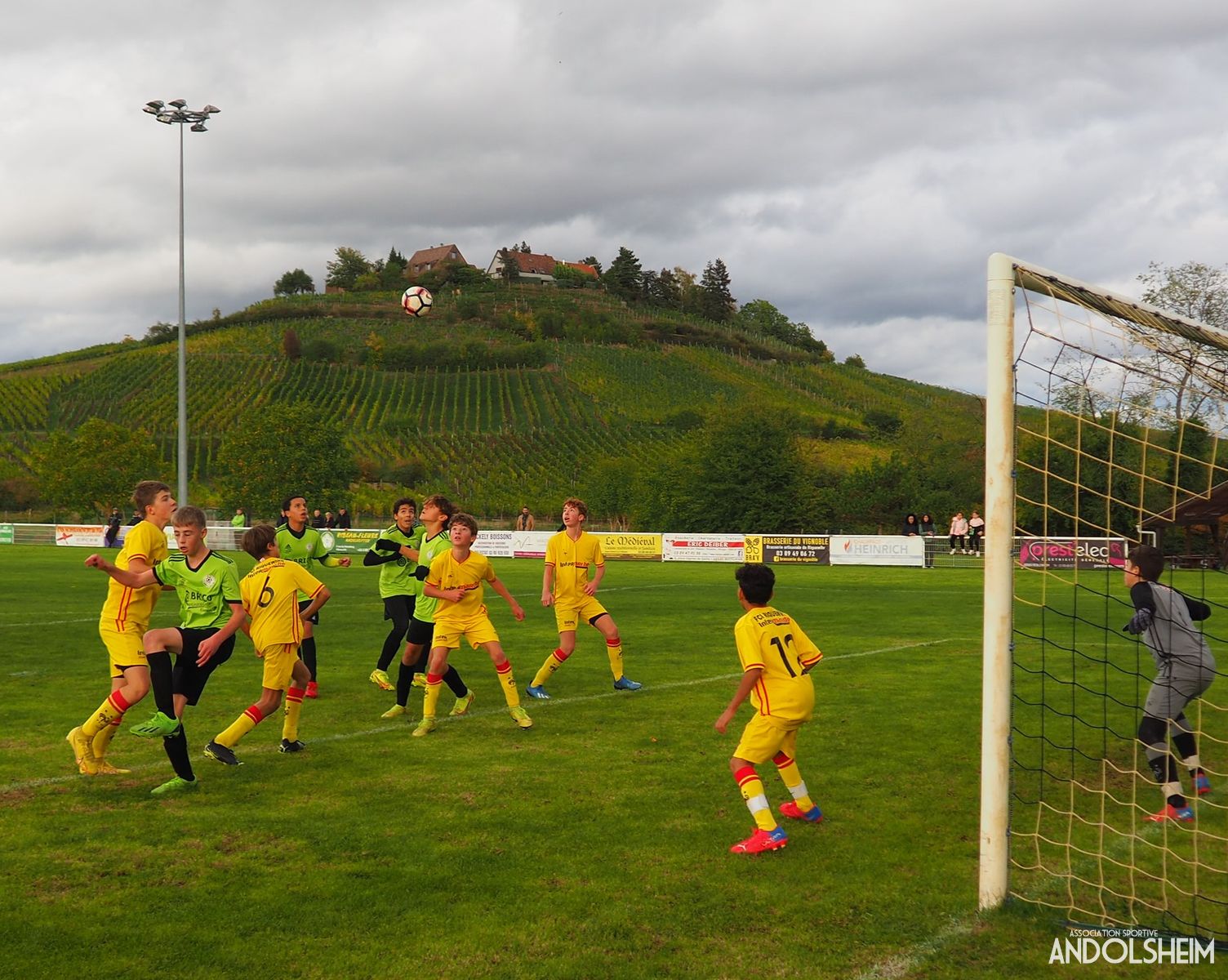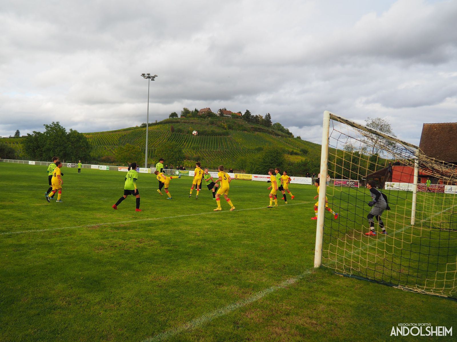 En ce samedi automnal et doux, le charmant, mais éloigné, village de Riquewihr reçoit nos U15-1 en championnat. Marc Lefort tient la touche avec nos remerciements, et, encore une fois, les parents répondent présents et soutiennent les petits hommes verts sur cette planète lointaine. A la pause le score de 2 buts partout est encourageant. L’ASA progresse régulièrement depuis un mois et le tableau d’affichage le prouve. En seconde période ça se gâte. Les locaux trouvent 4 fois le chemin du filet mais, coté Andolsheim, la pêche aux buts est finie et les filets sont vides. Score final 6 à 2 …mais encore une fois nous saluons l’état d’esprit positif des parents. Encourager, motiver, ne jamais critiquer, l’arbitre toujours respecter. La charte du joueur et du dirigeant est plus que jamais respectée, c’est habituel à Ando mais c’est toujours un plaisir de le voir concrètement. Et c’est la condition indispensable à la réussite d’une saison. Bref, jeunes gens, je vous ai vus concéder 8 buts d’écart à Buhl le 14 septembre et maintenant je n’en compte que 4 ! Vous travaillez dans le bon sens, vous allez y arriver, et en tous cas toute l’équipe rédactionnelle de l’ASA et surtout le comité de l’ASA ( c’est-à-dire le gouvernement du club pour votre info ) sont derrière vous les garçons ! En conférence de presse d’après match, Pierrot, Marc et Gerard sont positifs et optimistes. Et, en interview exclusive, le coach Thomas va plus loin dans l’analyse. Je le cite : « L’évolution de l’équipe va dans le bon sens, le jeu est de plus en plus posé, maintenant il faut continuer à bosser, et surtout il faut travailler la condition physique : ça ne pardonne plus en seconde période sur grand terrain ! » Messieurs, votre coach a déjà fixé les priorités pour l’entrainement, il n’y a plus qu’à bosser dans la bonne humeur ! Et en salle si nécessaire ! Et, encore une fois, comptez sur le soutien de tout le club : ça va payer et Riquewihra bien qui rira le dernier !!