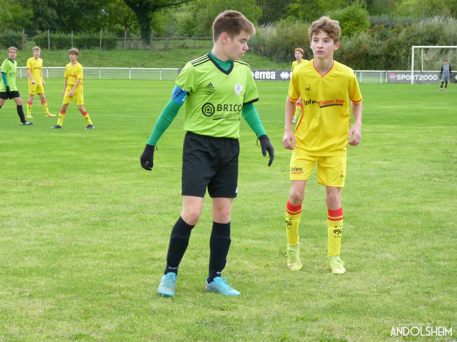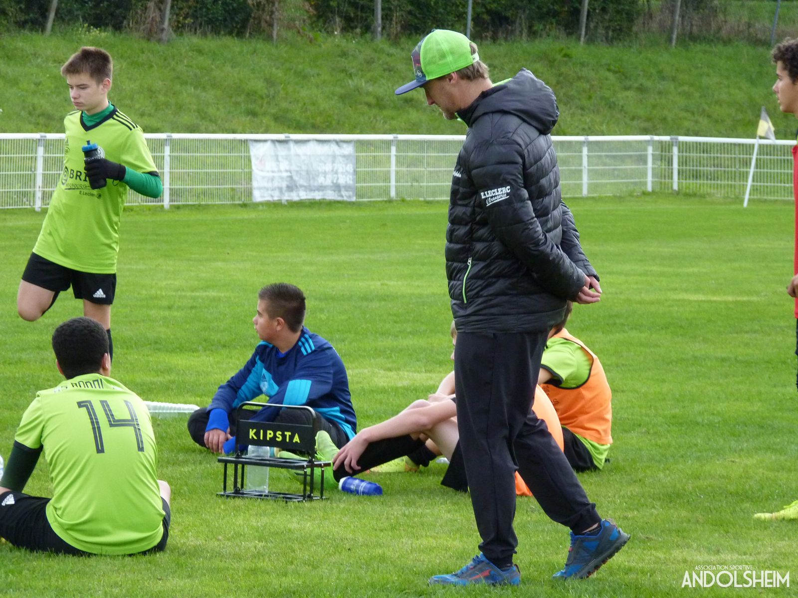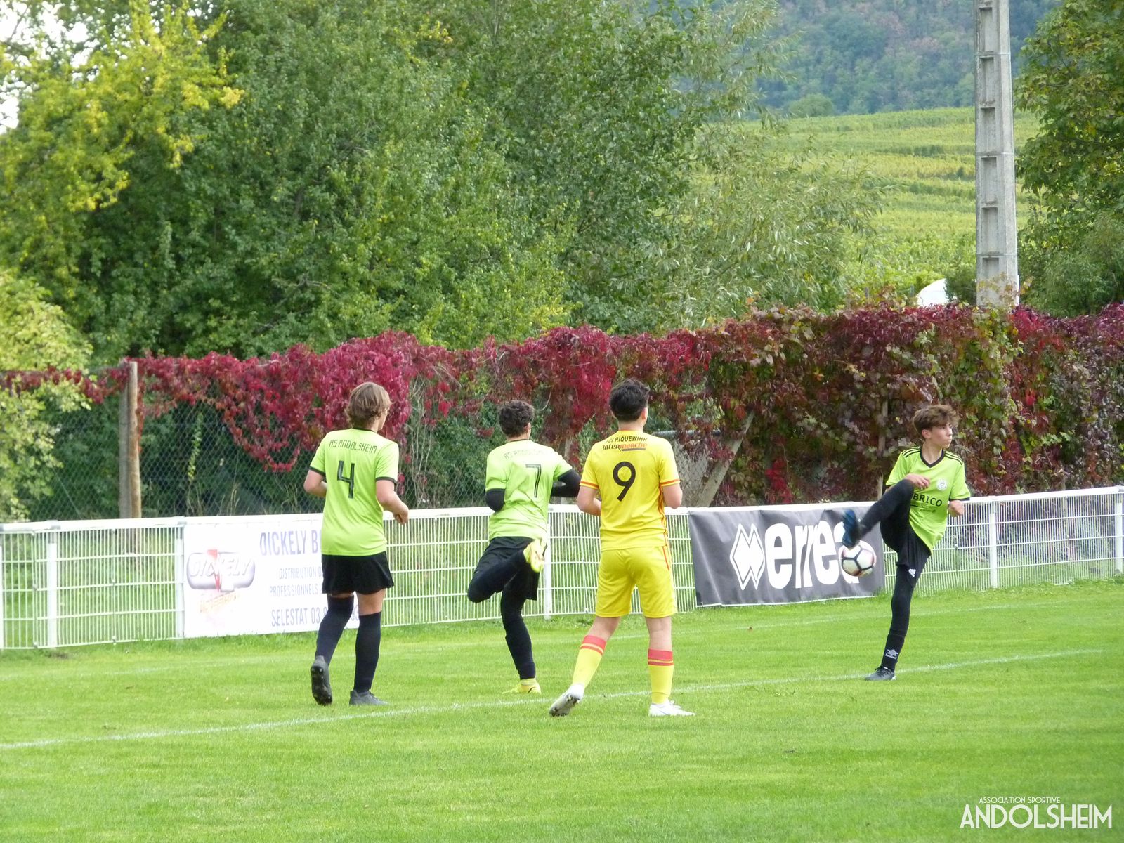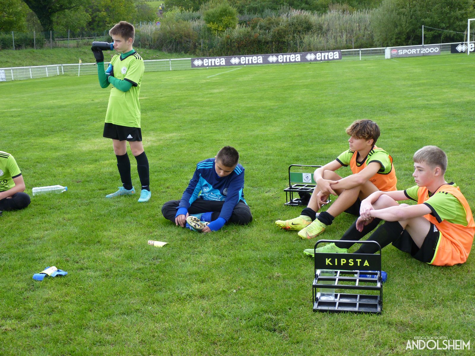 En ce samedi automnal et doux, le charmant, mais éloigné, village de Riquewihr reçoit nos U15-1 en championnat. Marc Lefort tient la touche avec nos remerciements, et, encore une fois, les parents répondent présents et soutiennent les petits hommes verts sur cette planète lointaine. A la pause le score de 2 buts partout est encourageant. L’ASA progresse régulièrement depuis un mois et le tableau d’affichage le prouve. En seconde période ça se gâte. Les locaux trouvent 4 fois le chemin du filet mais, coté Andolsheim, la pêche aux buts est finie et les filets sont vides. Score final 6 à 2 …mais encore une fois nous saluons l’état d’esprit positif des parents. Encourager, motiver, ne jamais critiquer, l’arbitre toujours respecter. La charte du joueur et du dirigeant est plus que jamais respectée, c’est habituel à Ando mais c’est toujours un plaisir de le voir concrètement. Et c’est la condition indispensable à la réussite d’une saison. Bref, jeunes gens, je vous ai vus concéder 8 buts d’écart à Buhl le 14 septembre et maintenant je n’en compte que 4 ! Vous travaillez dans le bon sens, vous allez y arriver, et en tous cas toute l’équipe rédactionnelle de l’ASA et surtout le comité de l’ASA ( c’est-à-dire le gouvernement du club pour votre info ) sont derrière vous les garçons ! En conférence de presse d’après match, Pierrot, Marc et Gerard sont positifs et optimistes. Et, en interview exclusive, le coach Thomas va plus loin dans l’analyse. Je le cite : « L’évolution de l’équipe va dans le bon sens, le jeu est de plus en plus posé, maintenant il faut continuer à bosser, et surtout il faut travailler la condition physique : ça ne pardonne plus en seconde période sur grand terrain ! » Messieurs, votre coach a déjà fixé les priorités pour l’entrainement, il n’y a plus qu’à bosser dans la bonne humeur ! Et en salle si nécessaire ! Et, encore une fois, comptez sur le soutien de tout le club : ça va payer et Riquewihra bien qui rira le dernier !!