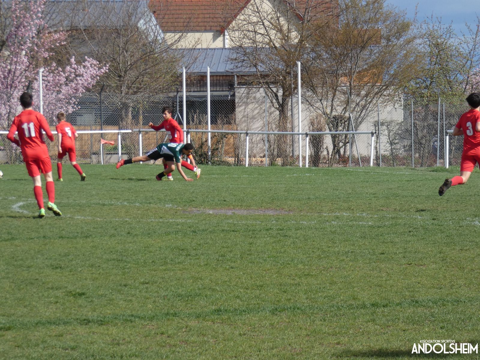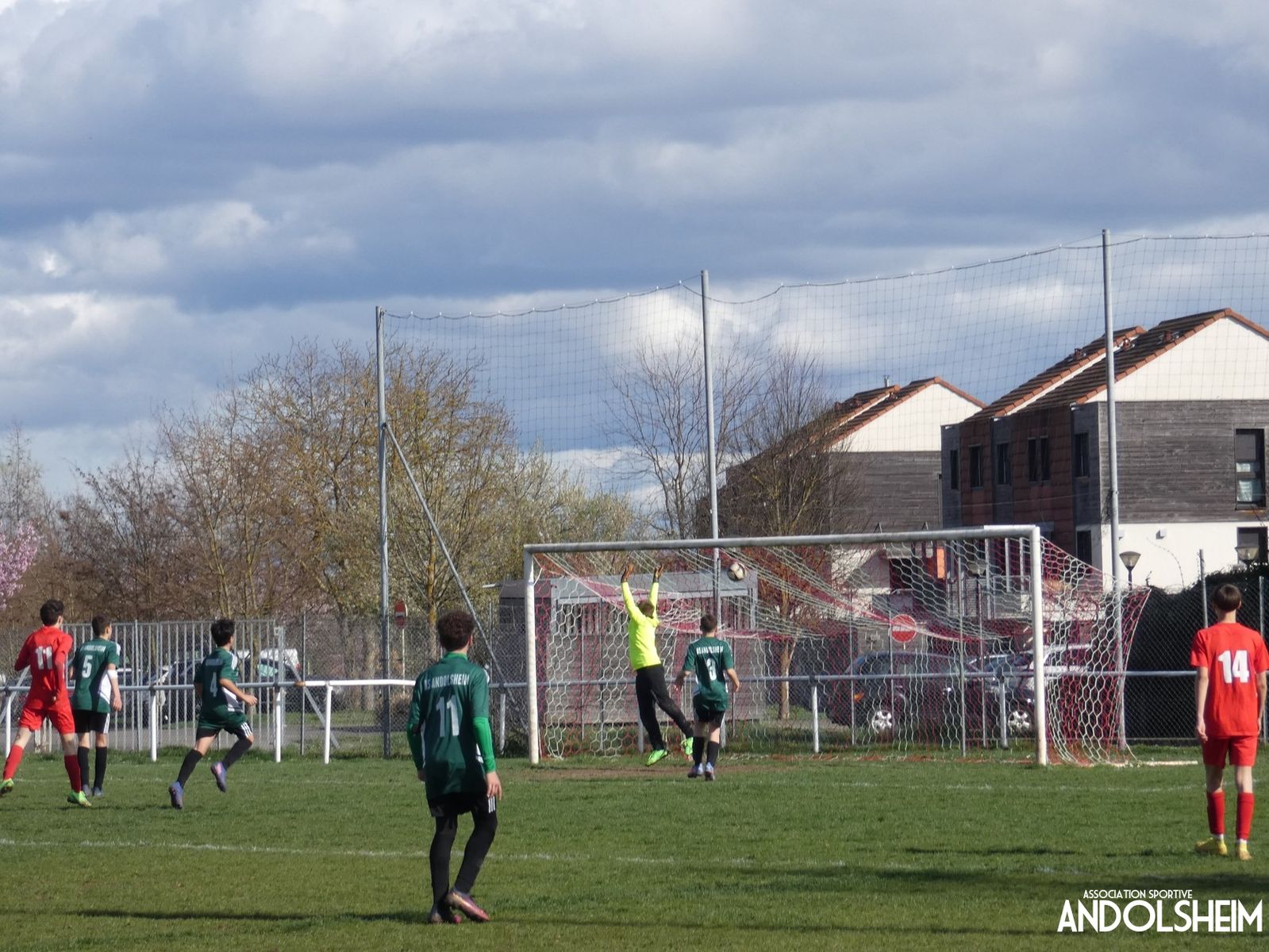 Ce samedi après-midi, nos U15-2 se sont déplacés pour leur deuxième match de la phase retour du championnat à l’AS Ribeauvillé. La rencontre s’est déroulée en deux mi-temps de 40 minutes sous une météo venteuse et menaçante qui n’a pas fait fuir la cigogne préparatrice du terrain de jeu.
