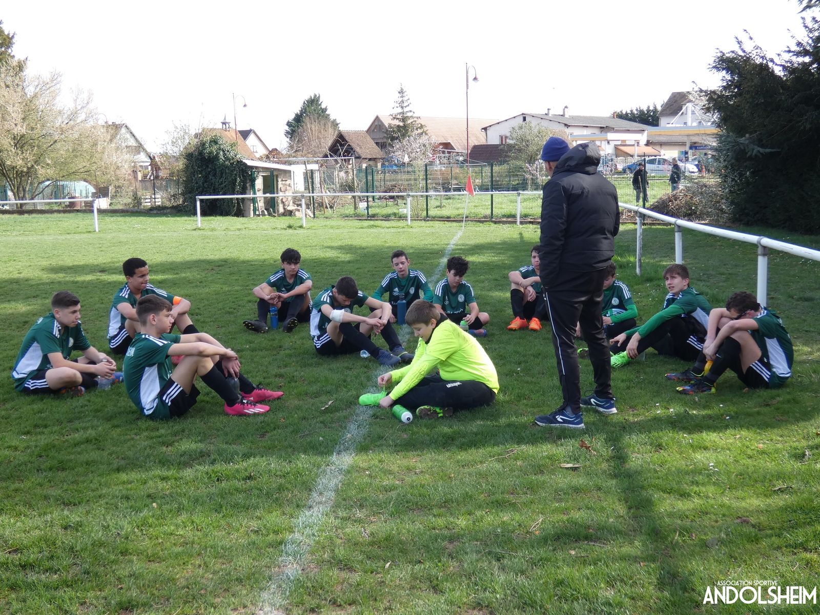 C’est Serge qui est à la manœuvre pour coacher nos « Verts ». On remercie également, Thomas le papa de Kilian qui officiera, au pied levé, en tant que juge de touche pour ce match.