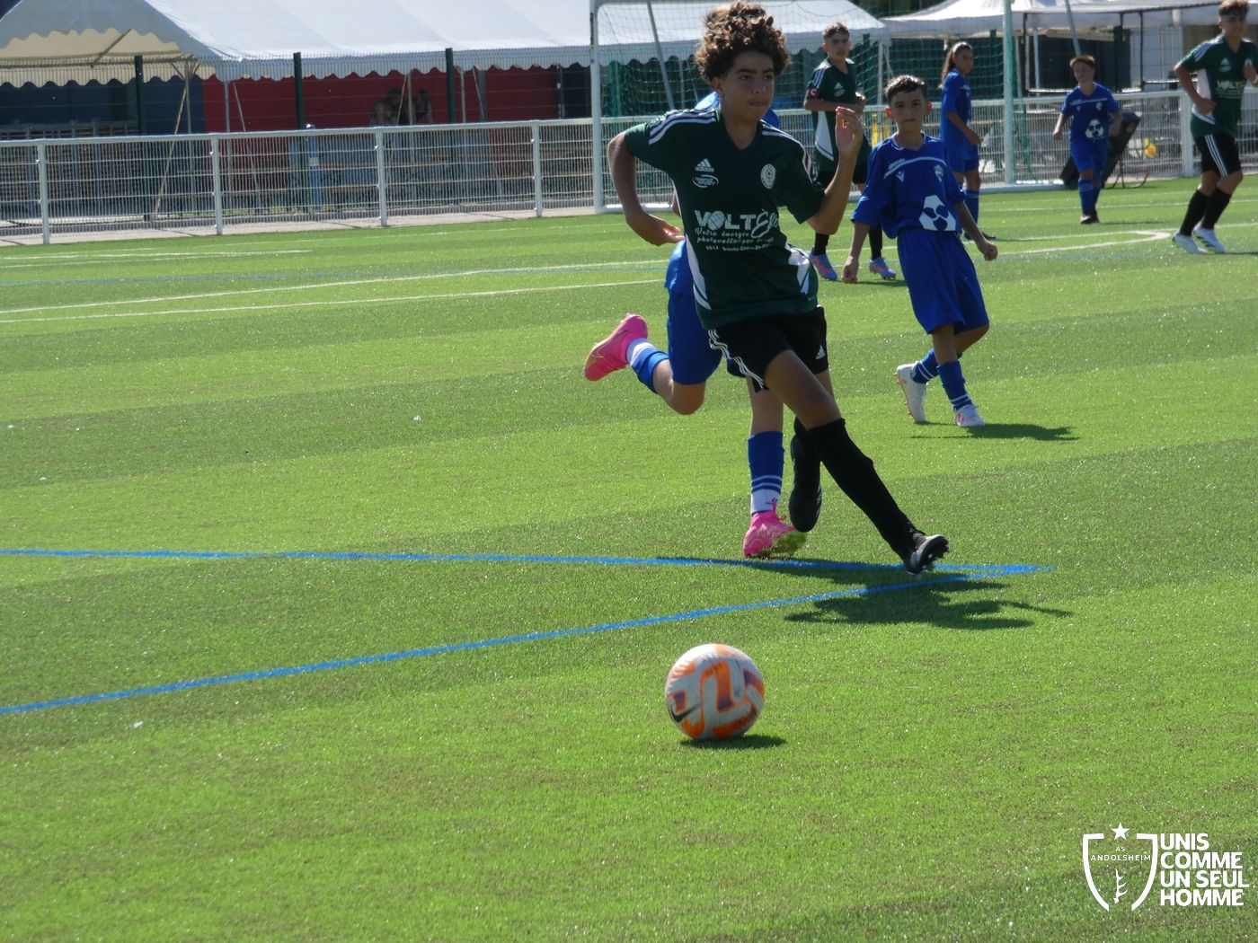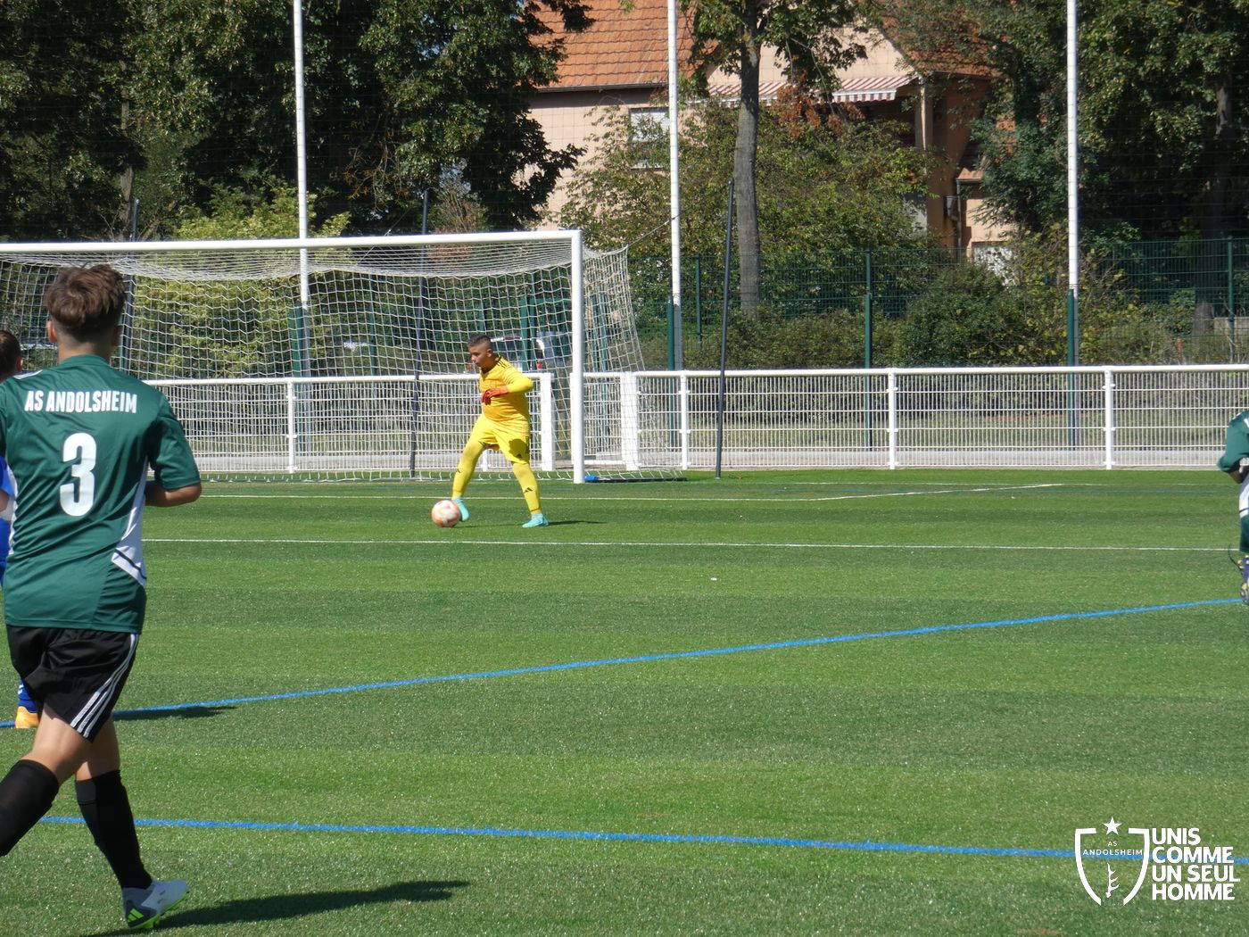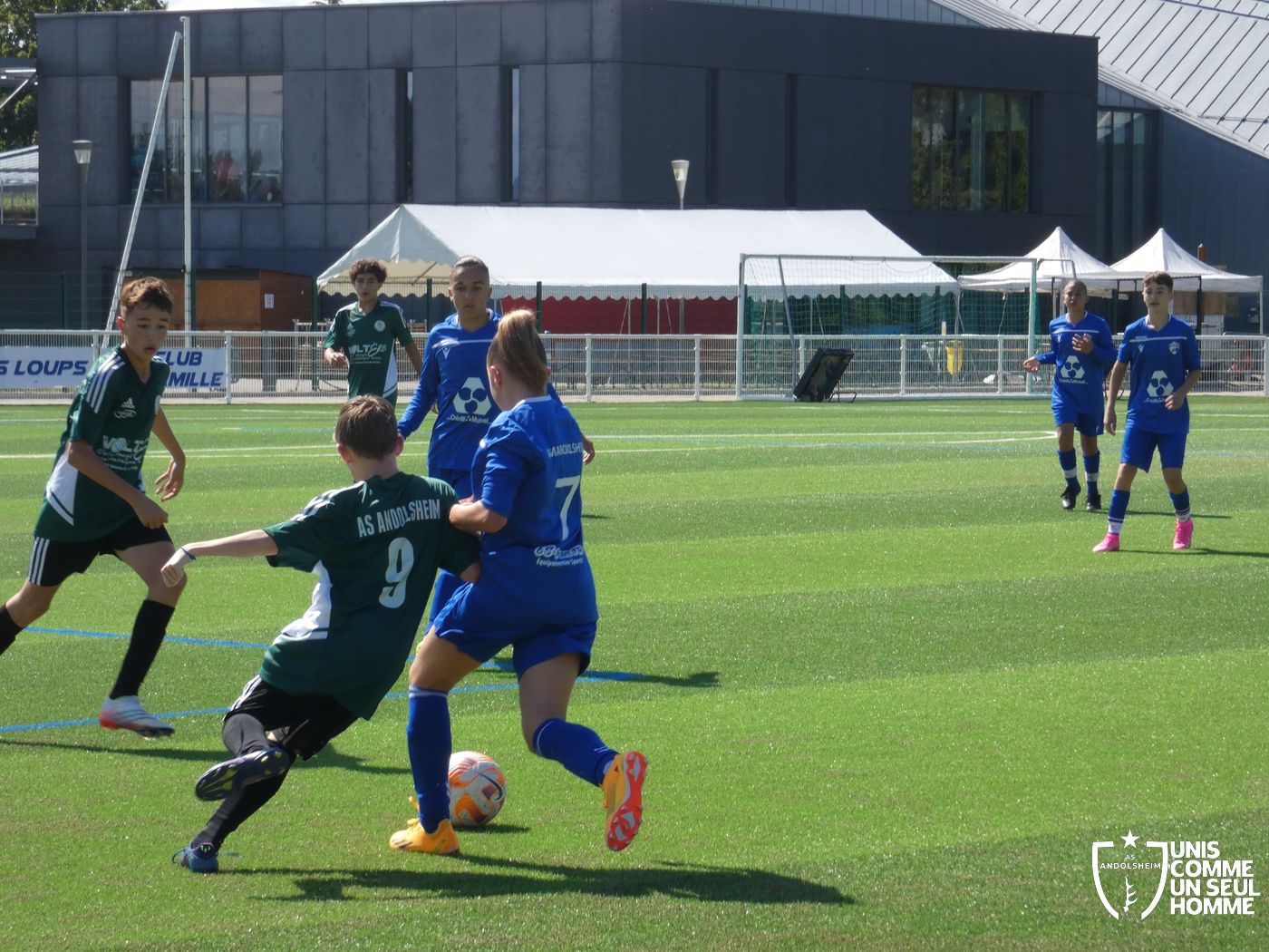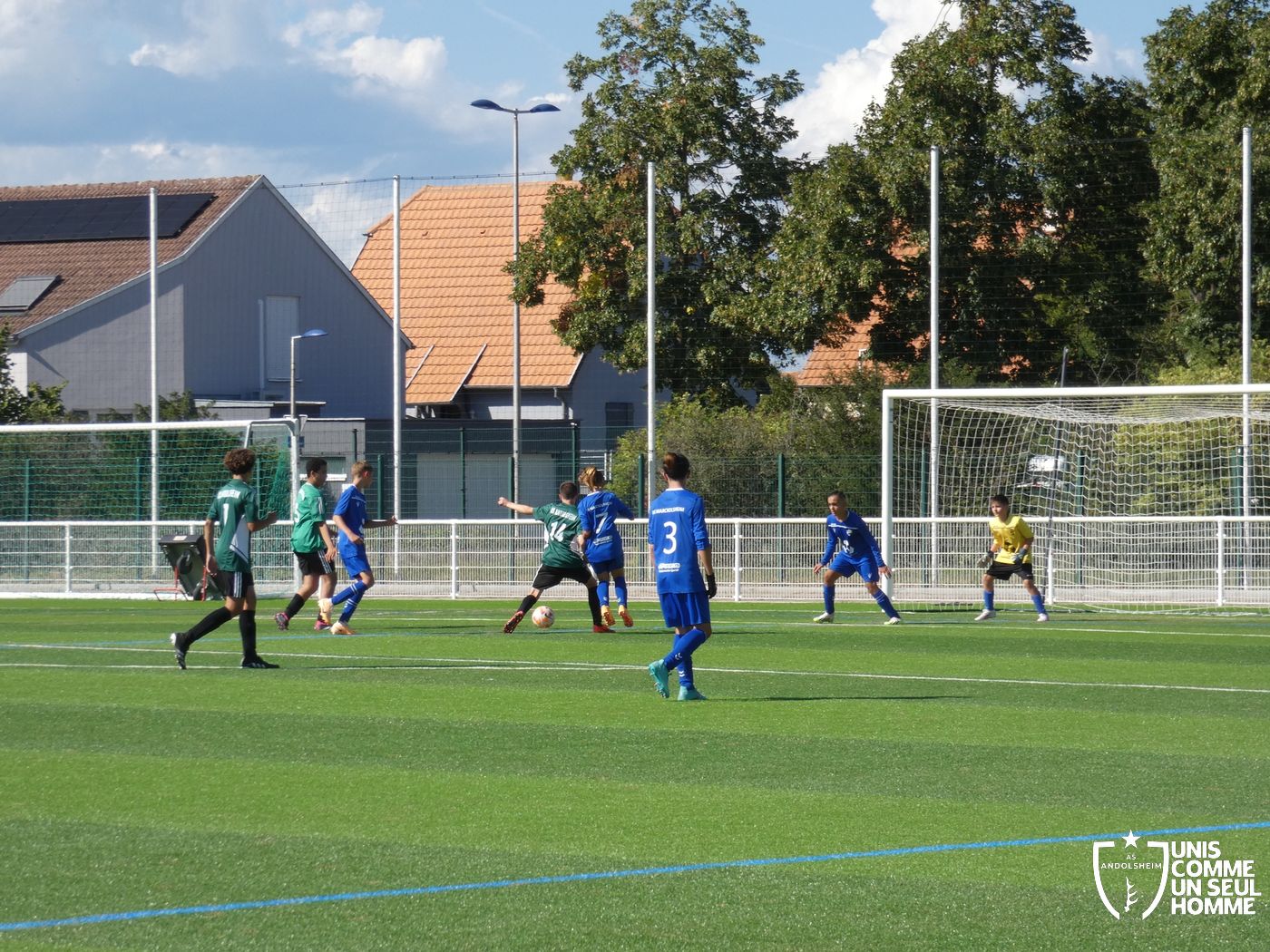 L’heure de la reprise sonne, nos Verts sont toujours présents sur les duels et continuent dans l’effort. Cela paie rapidement ! Alexis ajuste cette fois-ci une magnifique frappe des dix-huit mètres sous la barre. Nos jeunes pousses prennent enfin l’avantage. 1-2. Nous mettons toujours la pression sur la défense bleue et l’arbitre siffle un coup franc. Alexis réalise une belle frappe mais manque la lucarne de peu. Le jeu s’améliore chez nos jeunes et ils commencent à comprendre qu’il faut utiliser les couloirs pour provoquer des décalages dû fait de la transmission en triangle. Jules nous gratifie d’une belle transversale sur le côté droit de Gabin L, qui part dans la profondeur pour centrer sur Marwan. Celui-ci s’offre son doublé. Une belle phase de jeu à renouveler et qui a été bien appréciée par les coachs ! 1-3 pour l’ASA et rapidement 1-4 car Marwan est à la fête et semble être libéré en cette fin de rencontre. Il marque sur une très belle frappe des 20 mètres en lucarne.