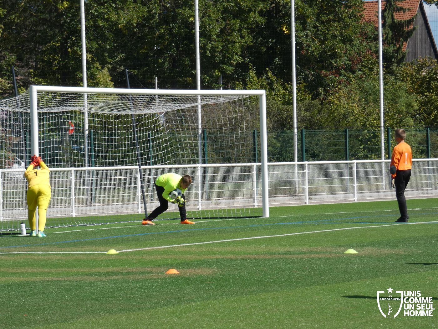 Marc fait tourner l’effectif et demande du jeu en triangle et des frappes au but quand la situation le permet, de varier le jeu en changeant de coté au besoin.