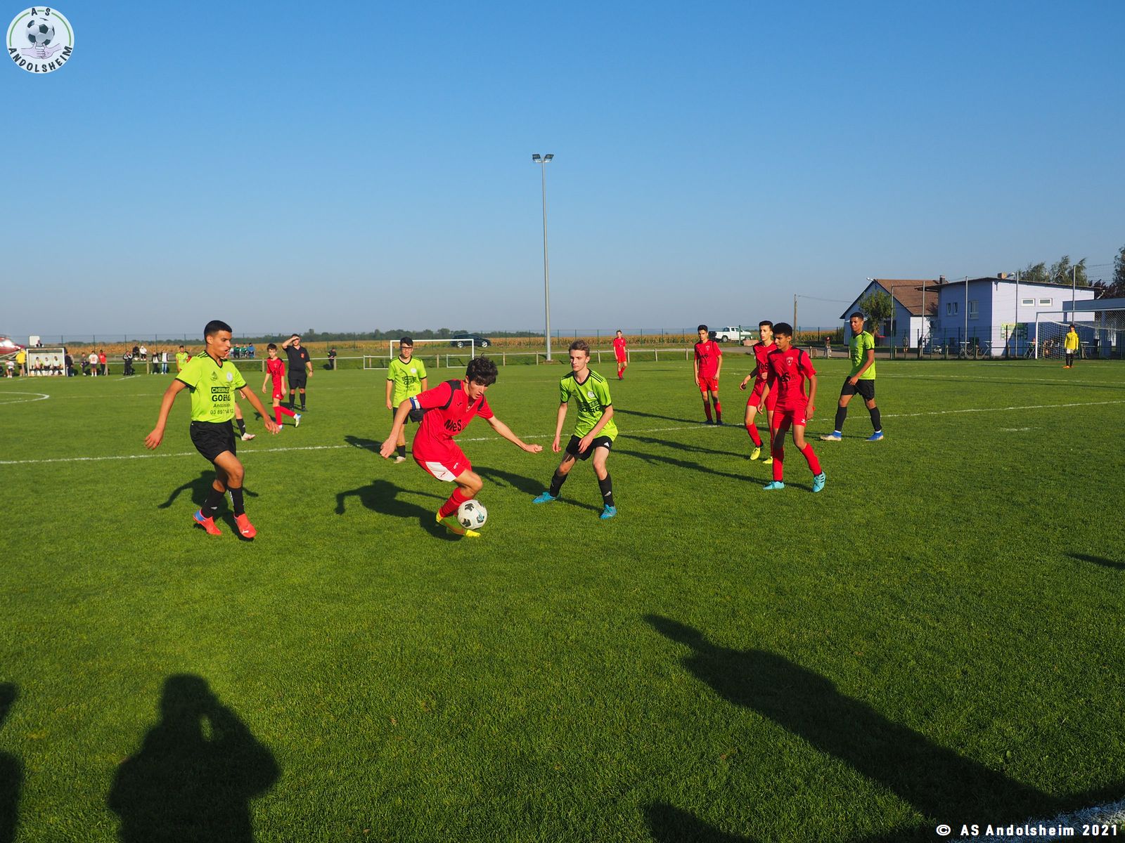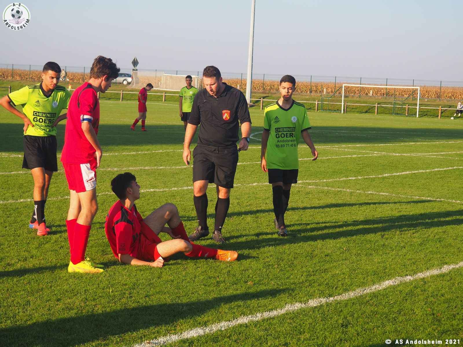 Par un soleil estival et une température automnale à cause d’un fort vent du nord, nos U18 accueillaient Wettolsheim en coupe du crédit mutuel. Devant un public chaleureux, composé notamment de notre président, et avec un arbitre officiel impérial. Hormis un but rouge marqué sur penalty, c’est une avalanche de buts verts qui a rythmé cette rencontre. Trois dans chaque période. Le plus jeune des pitchuounes sait déjà faire ce calcul simple : l’ASA l’emporte donc 6 à 1. Buteurs : Sacha, Emmanuel, Samad, Adam et Luca. Seul bémol dans cette fête du football, un carton rouge pour Theo… et ce carton est , de surcroît amplement mérité . Nous invitons le joueur fautif à méditer son geste et à en tirer des conséquences pédagogiques. En conférence de presse, Laouari regrette évidemment ce geste mais souligne le plus important : cette formation 2021 – 2022 est « soudée, disciplinée, impliquée, avec ces fondamentaux on peut espérer une très belle saison » déclare-t-il enthousiaste. Thomas lui emboîte le pas « ayons le triomphe modeste face à un adversaire tout aussi modeste, il faut maintenant continuer à travailler, travailler, travailler » conclut-il. Ne boudons pas notre plaisir, la qualification est acquise, c’est l’essentiel. Rendez-vous le weekend prochain.