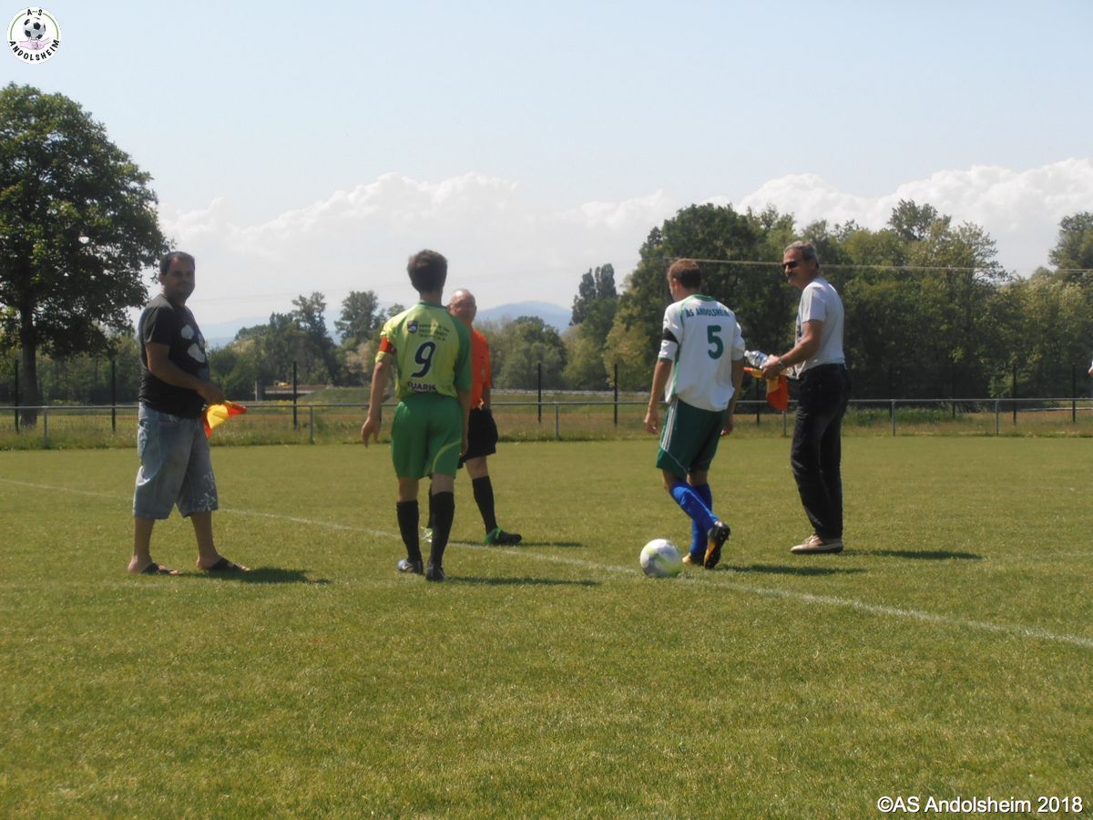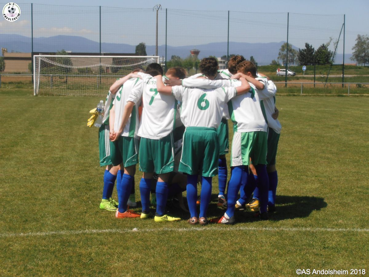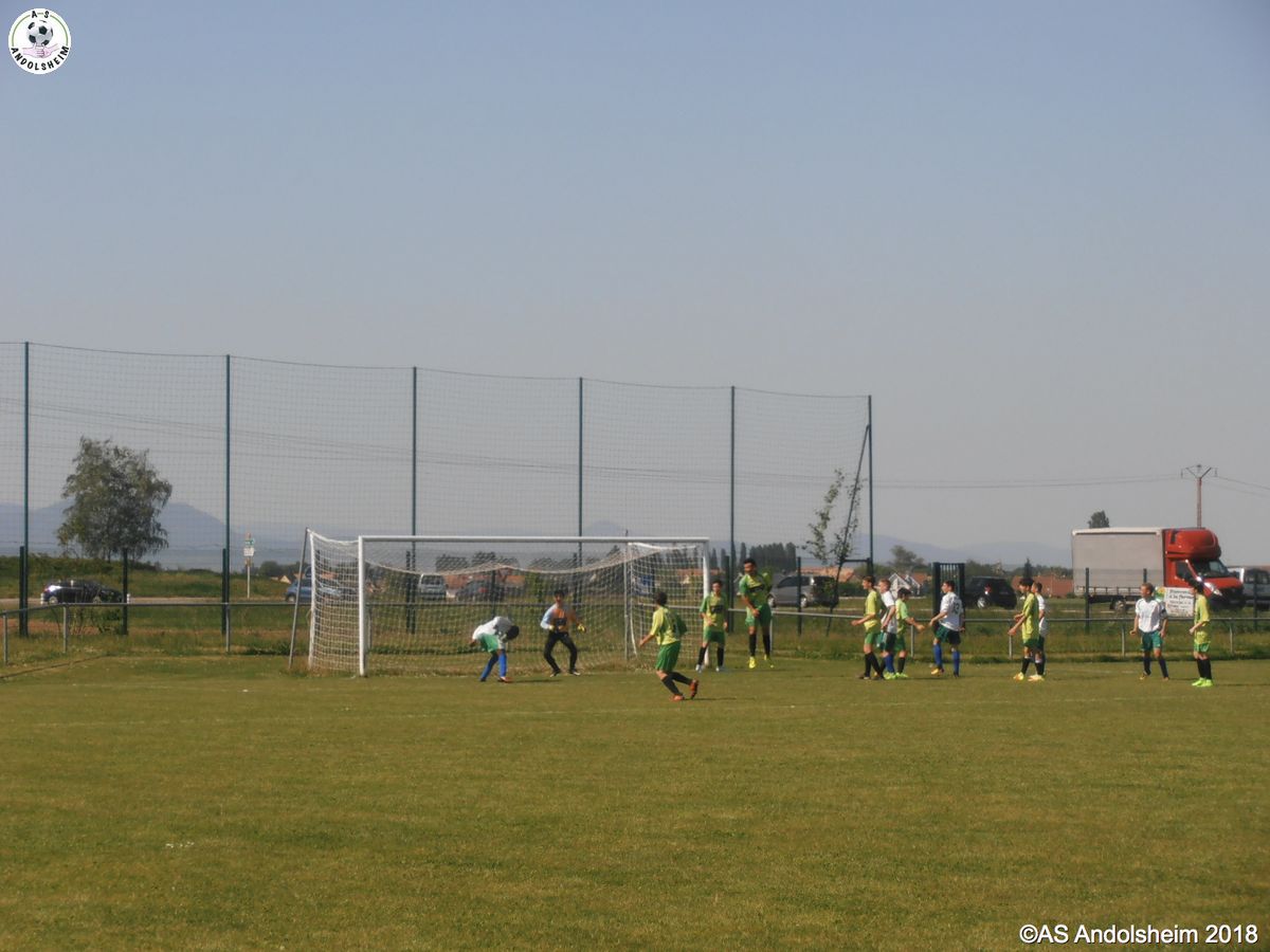 En ce jour mythique du 8 Mai, nos U18 recevaient Orbey Canton Vert. Dès la troisième minute, Jean, qui avait déjà effectué un débordement très dangereux une minute plus tôt, perce de nouveau la défense et marque dans un angle impossible. Une demi-heure plus tard, c'est Nathan qui fait une passe décisive à loic et ce dernier fusille le filet adverse dans un angle fermé, avec le soleil dans les yeux, avec un public passionné derrière lui, et c'est le deux à zéro ! Enfin à la 85 ème, c'est au tour de Kevin de marquer un but libérateur. Score final 3 à rien donc, malgré une belle lucarne de ORBEY, sur coup franc, mais malheureusement invalidée par la goal line technology, dommage pour les visiteurs, et victoire de l’ASA en ce jour de commémoration nationale ! Victoire un 8 mai ? oui mais avec humilité, car nous sommes encore loin du titre qui serait synonyme de montée en division supérieure... Pour le moment souhaitons un bon rétablissement à Tom, qui a gardé sa cage inviolée avant de se blesser, félicitons Ben qui a pu le remplacer au pied levé et enfin remercions notre très cher Jean-Claude qui, pour sa part, a assuré, également au pied levé, l'arbitrage officiel que le règlement impose dans cette catégorie. Bon 8 mai à tous !
