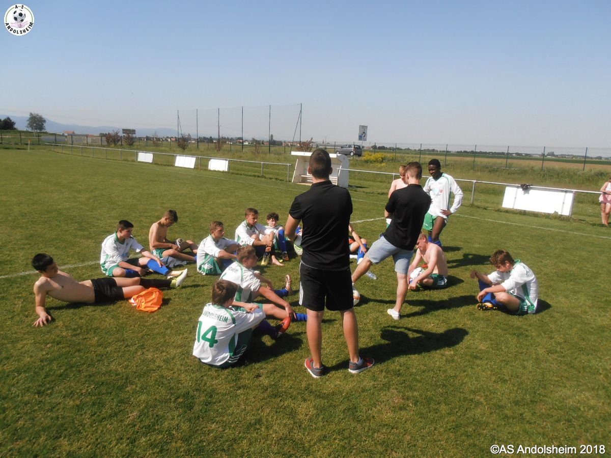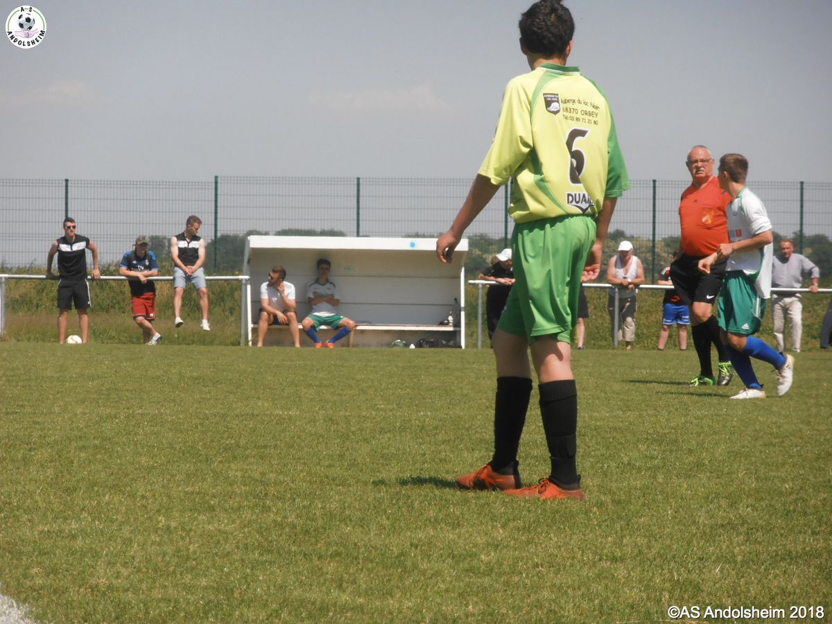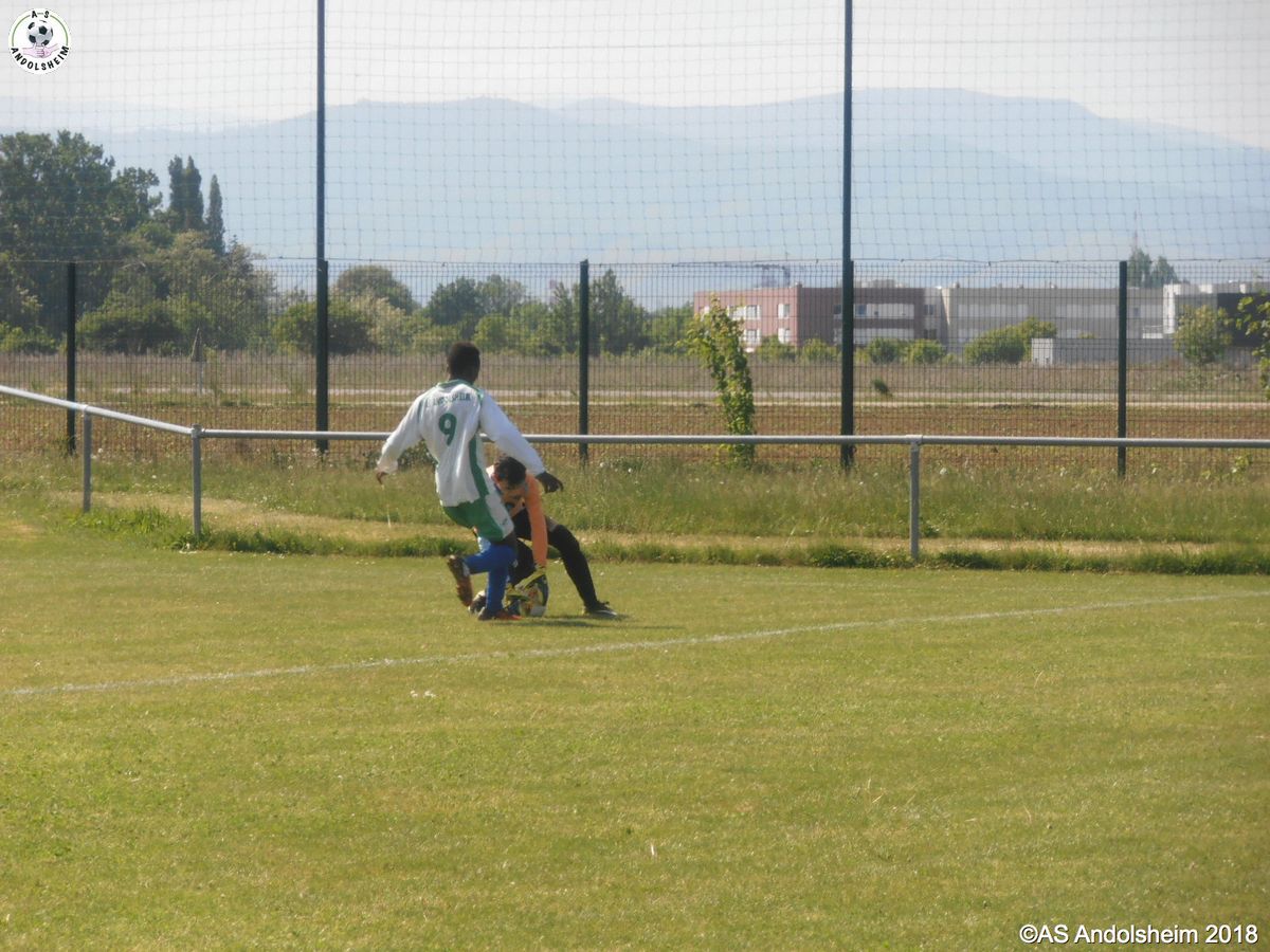 En ce jour mythique du 8 Mai, nos U18 recevaient Orbey Canton Vert. Dès la troisième minute, Jean, qui avait déjà effectué un débordement très dangereux une minute plus tôt, perce de nouveau la défense et marque dans un angle impossible. Une demi-heure plus tard, c'est Nathan qui fait une passe décisive à loic et ce dernier fusille le filet adverse dans un angle fermé, avec le soleil dans les yeux, avec un public passionné derrière lui, et c'est le deux à zéro ! Enfin à la 85 ème, c'est au tour de Kevin de marquer un but libérateur. Score final 3 à rien donc, malgré une belle lucarne de ORBEY, sur coup franc, mais malheureusement invalidée par la goal line technology, dommage pour les visiteurs, et victoire de l’ASA en ce jour de commémoration nationale ! Victoire un 8 mai ? oui mais avec humilité, car nous sommes encore loin du titre qui serait synonyme de montée en division supérieure... Pour le moment souhaitons un bon rétablissement à Tom, qui a gardé sa cage inviolée avant de se blesser, félicitons Ben qui a pu le remplacer au pied levé et enfin remercions notre très cher Jean-Claude qui, pour sa part, a assuré, également au pied levé, l'arbitrage officiel que le règlement impose dans cette catégorie. Bon 8 mai à tous !