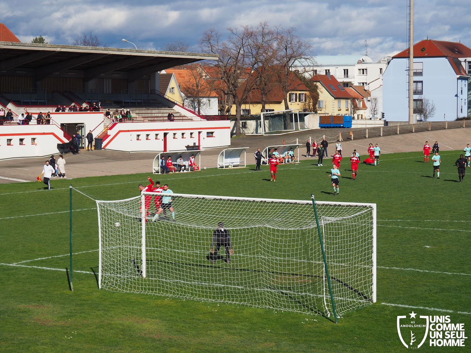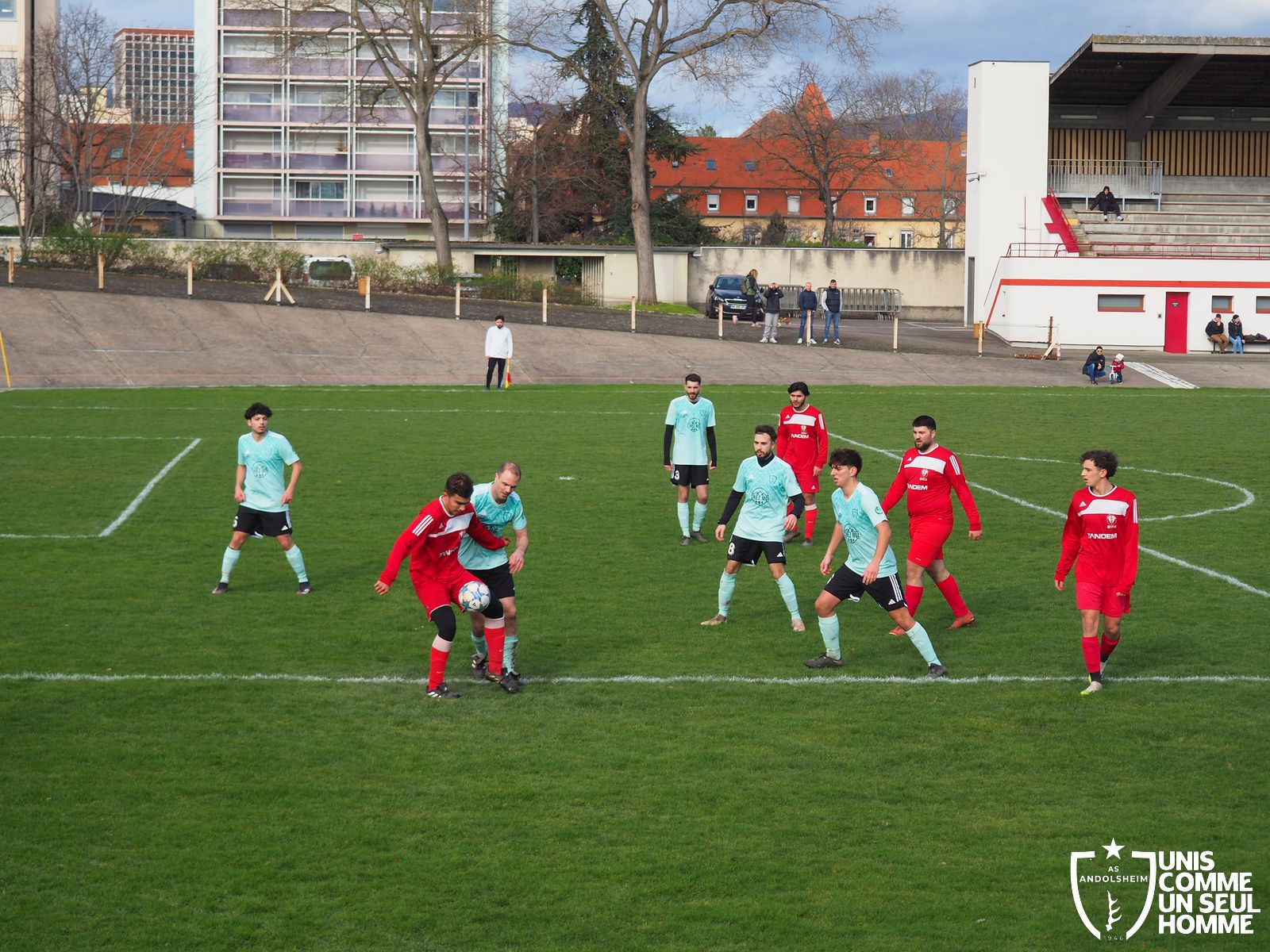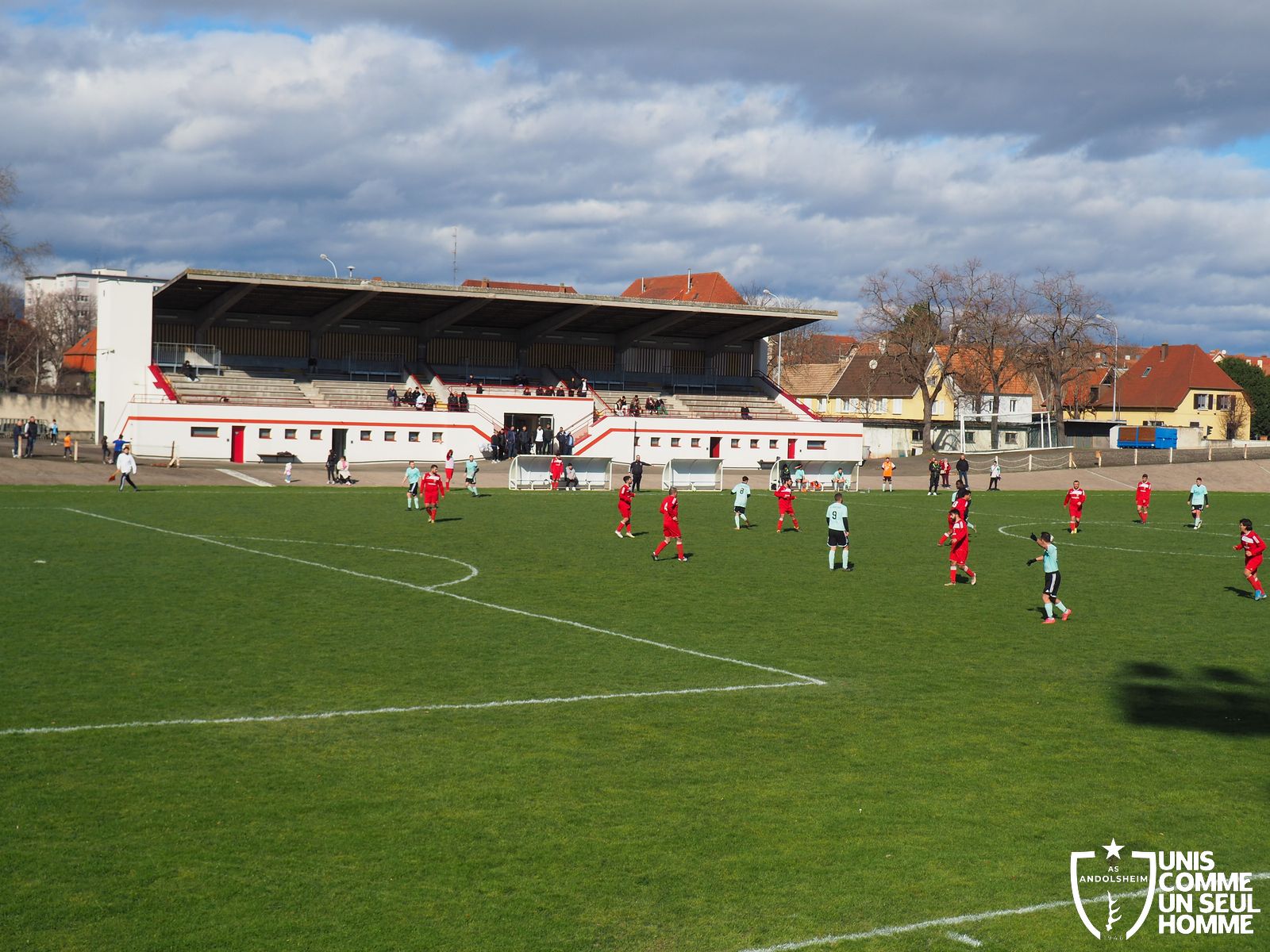 En ce dimanche matin frais et ensoleillé, au stade vélodrome mythique du Ladhof, notre équipe seniors 2 visite COLMAR US dans le cadre du « Challenge des réserves ». En clair, la coupe des équipes 2. Public motivé chez les verts, grosse présence également du comité et du Président. Les locaux sont très motivés aussi par cette compétition et alignent des renforts venus de leur équipe première. Les rouges évoluent en D6, comme nous. ANDOLSHEIM entame bien le match et multiplie les actions.