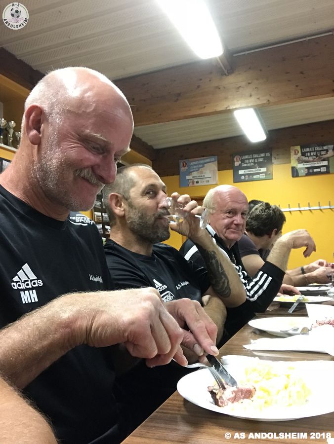 pour les vétérans de l’ASA qui ont laissé filer une victoire qui leur tendait les bras. Pourtant, on n’aurait pas parié un kopeck sur les verts dans les premières minutes face au FC Wintzfelden qui monopolisant le ballon avait déjà gâché un nombre incalculable d’occasions mais voila les verts ont joué comme des bleus a la Deschamps, repliés sur eux-même pour mieux porter l’estocade sur contre-attaque par 3 fois pour mener 3 à 1 à 1/4 d’heure de la fin ... mais voilà, les vétérans avaient déjà la tête à table et allaient craquer pour finalement concéder le match nul et se précipiter sur la salade de pomme de terre de Pierrot à qui l’on donnera la note de 10/10 !