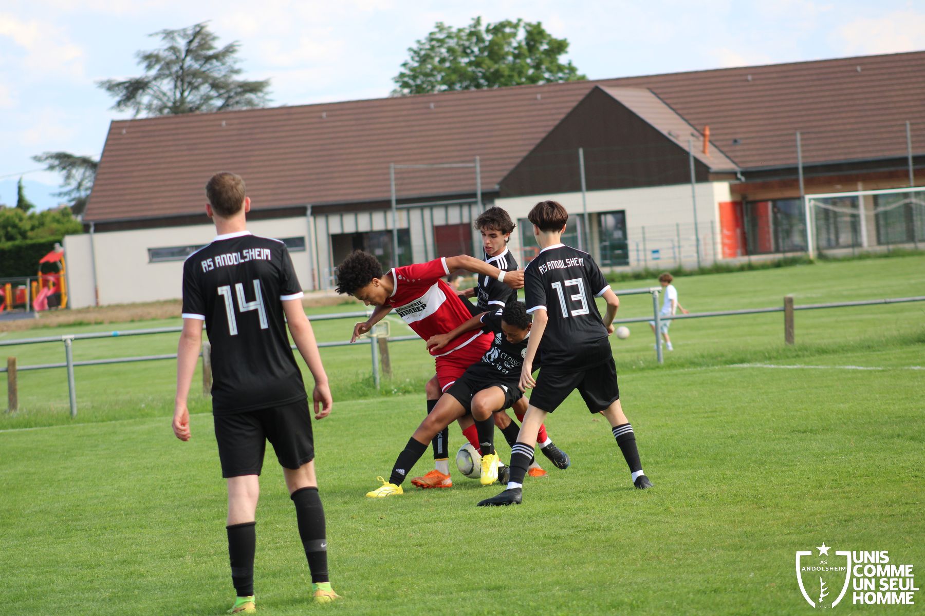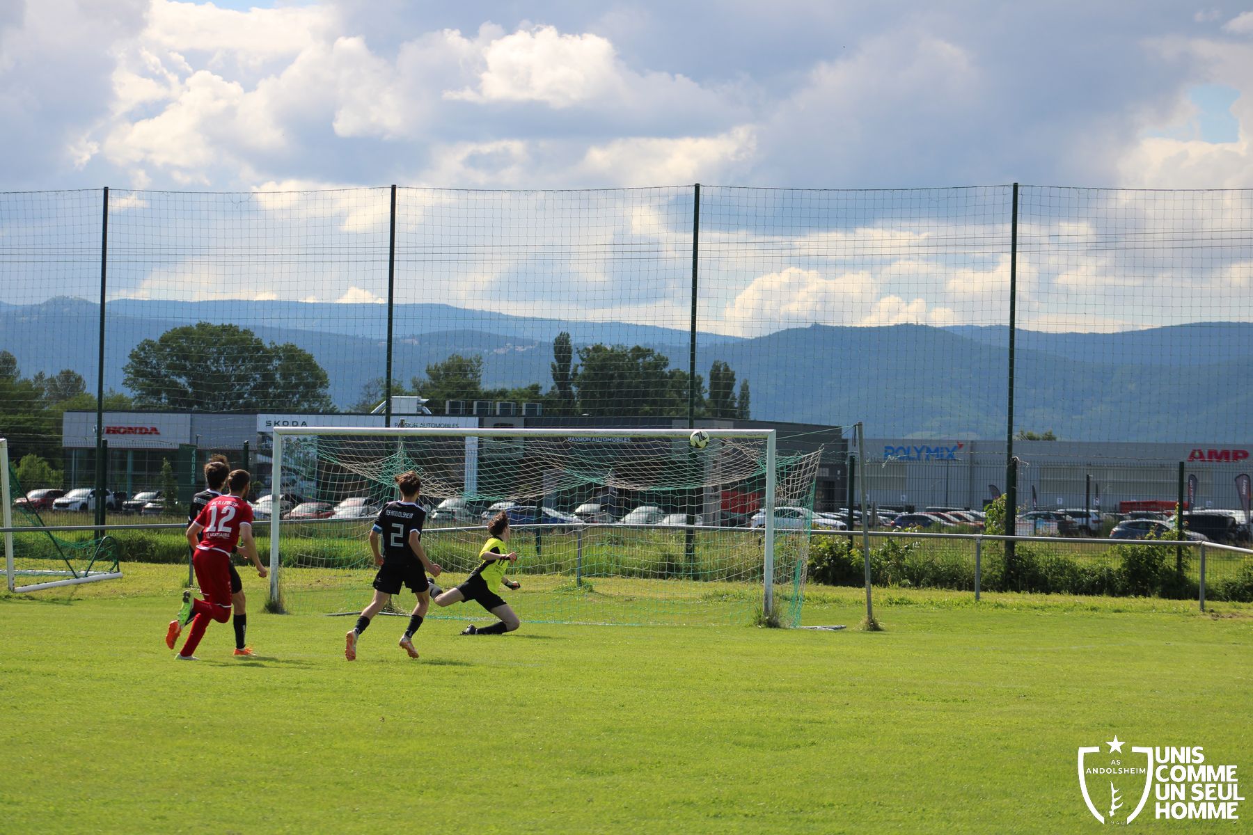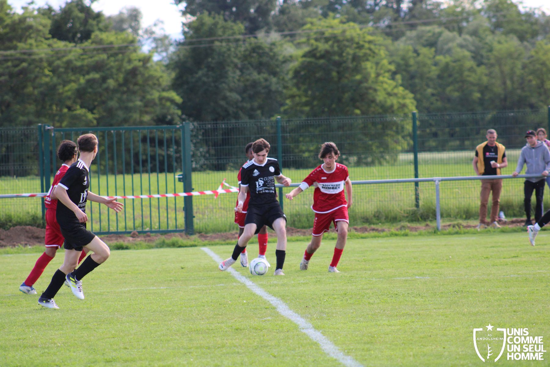 À partir de là, Andolsheim prend la main mise sur le match. Relance de derrière, ils passent par le milieu pour se procurer de belles occasions. Malheureusement, notre ailier gauche ne lève pas assez la tête et oublie à trois reprises ses coéquipiers seuls en retrait ou au point de penalty. Dommage, car au lieu de faire 1 à 0 pour nos verts à la mi-temps, il y aurait pu (dû) y avoir 3 ou 4 à 0.