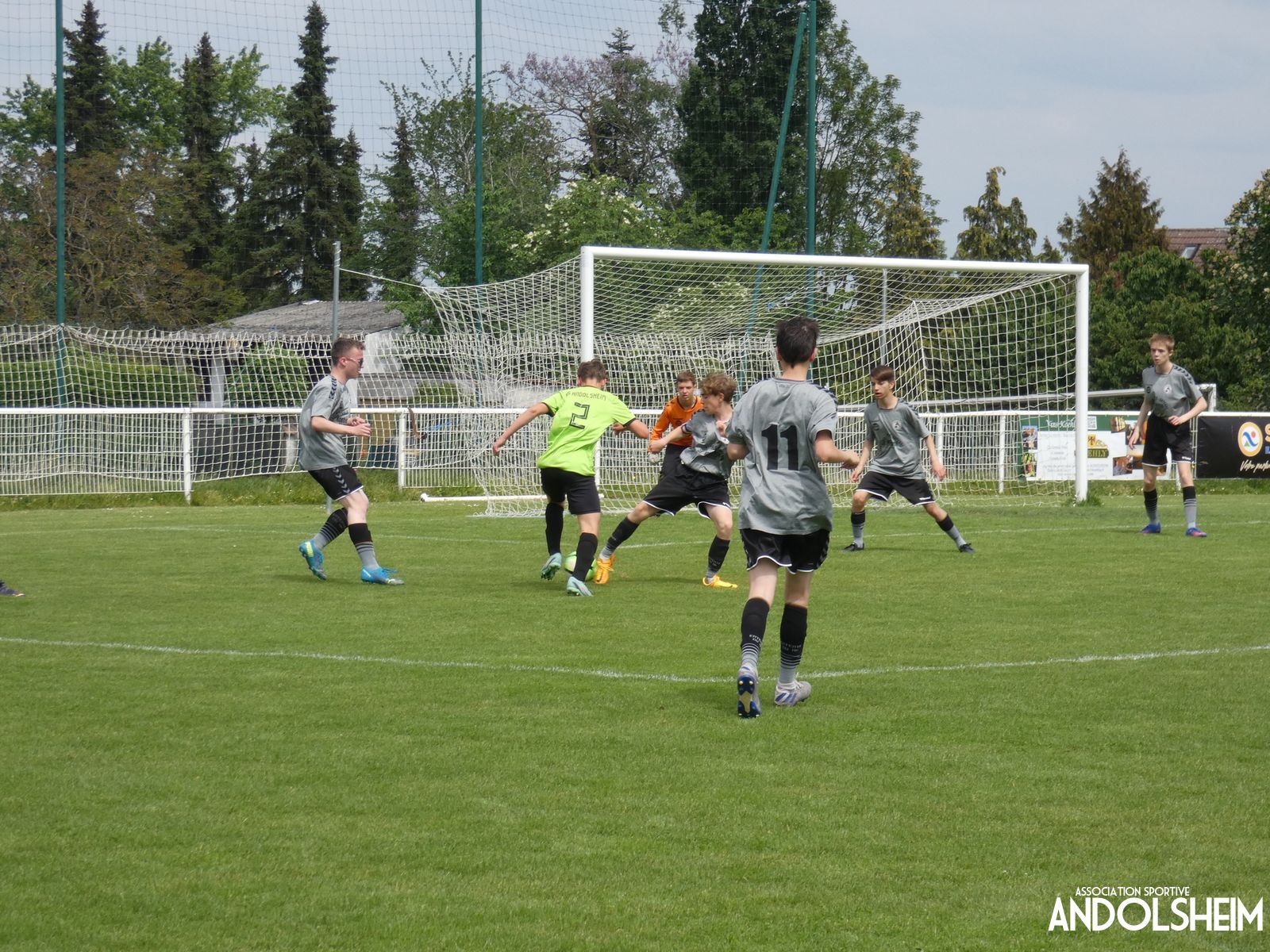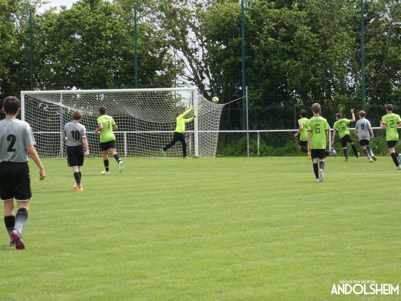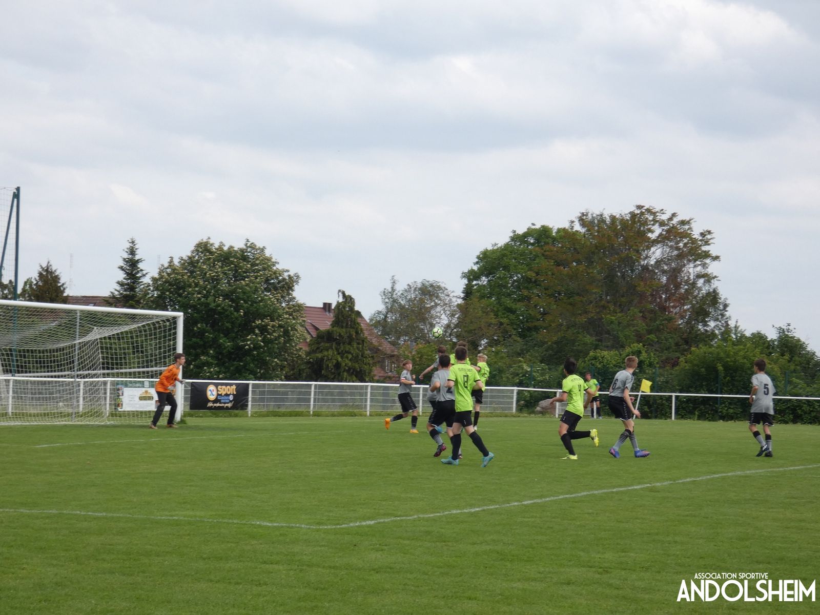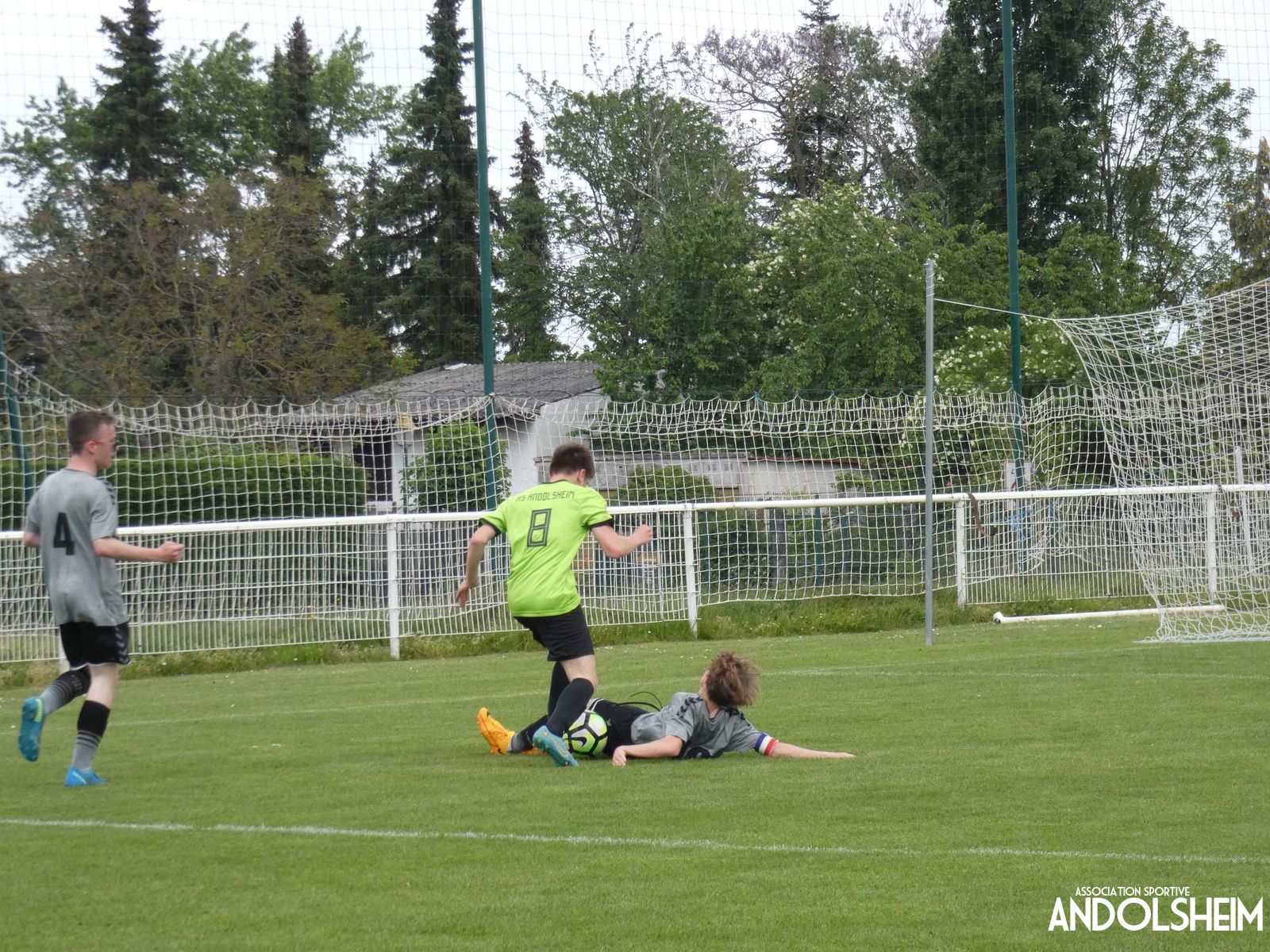 C’est la reprise et comme en début de première période, une nouvelle attaque du n°9 Gris survient mais notre portier accompagné d’Eliott avortent la tentative. L’engagement est là ! Nos « Verts » sentent le soutien et la force des supporters présents le long de la main courante. A la 55ième, Anwar ajuste une belle frappe que le gardien repousse. Anthony, toujours à l’affut finit le travail et s’offre son doublé. 2 à 2, c’est peut-être le retour sur le chemin de la victoire… Dès lors, nos jeunes arrivent à conserver le ballon et s’en suivent un nombre impressionnant d’occasions. Justin nous gratifiera d’une magnifique frappe qui viendra mourir sur la transversale. Adrien tentera également par deux fois de percer les filets sur des frappes des dix-mètres. Nos « Verts » monopolisent la balle en variant le jeu et en proposant des solutions au porteur. Ils osent les frappes au but ; Louis, Eliott et Luca G auront également leur tentative pour le 2-3. Finalement, il nous manquera encore de la justesse pour faire basculer le score. Nos jeunes se sont battus jusqu’au bout sans lâcher et la victoire semblait être méritée. A l’issue de cette rencontre, Thomas, heureux de retrouver de la cohésion dans l’effort, invitera ses joueurs à se regrouper pour scander le cri de la victoire malgré l’égalité du score. Une belle prestation ! Félicitations à Anthony pour son retour gagnant. Bravo les Verts ! Merci au staff de l’US Scherwiller et aux personnels du complexe sportif de Kintzheim présents pour l’accueil. Merci aux fidèles parents supporters pour leurs encouragements à chaque rencontre. Merci aux coachs bénévoles qui donnent de leur temps pour nos jeunes. A très bientôt autour du rectangle vert. Alexis votre reporter